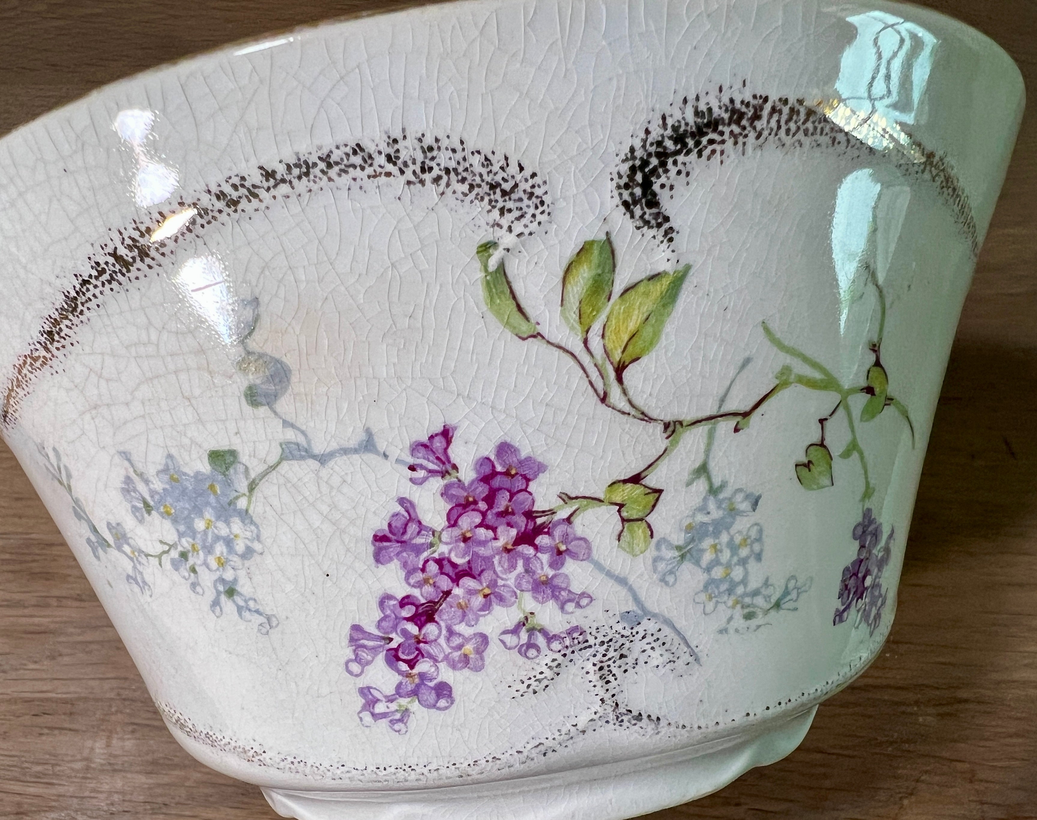 Spoelkom / Kom - Société Céramique Maestricht (blindmerk SC) - décor 629 met paarse seringen - model Esthétique uit Art Nouveau periode