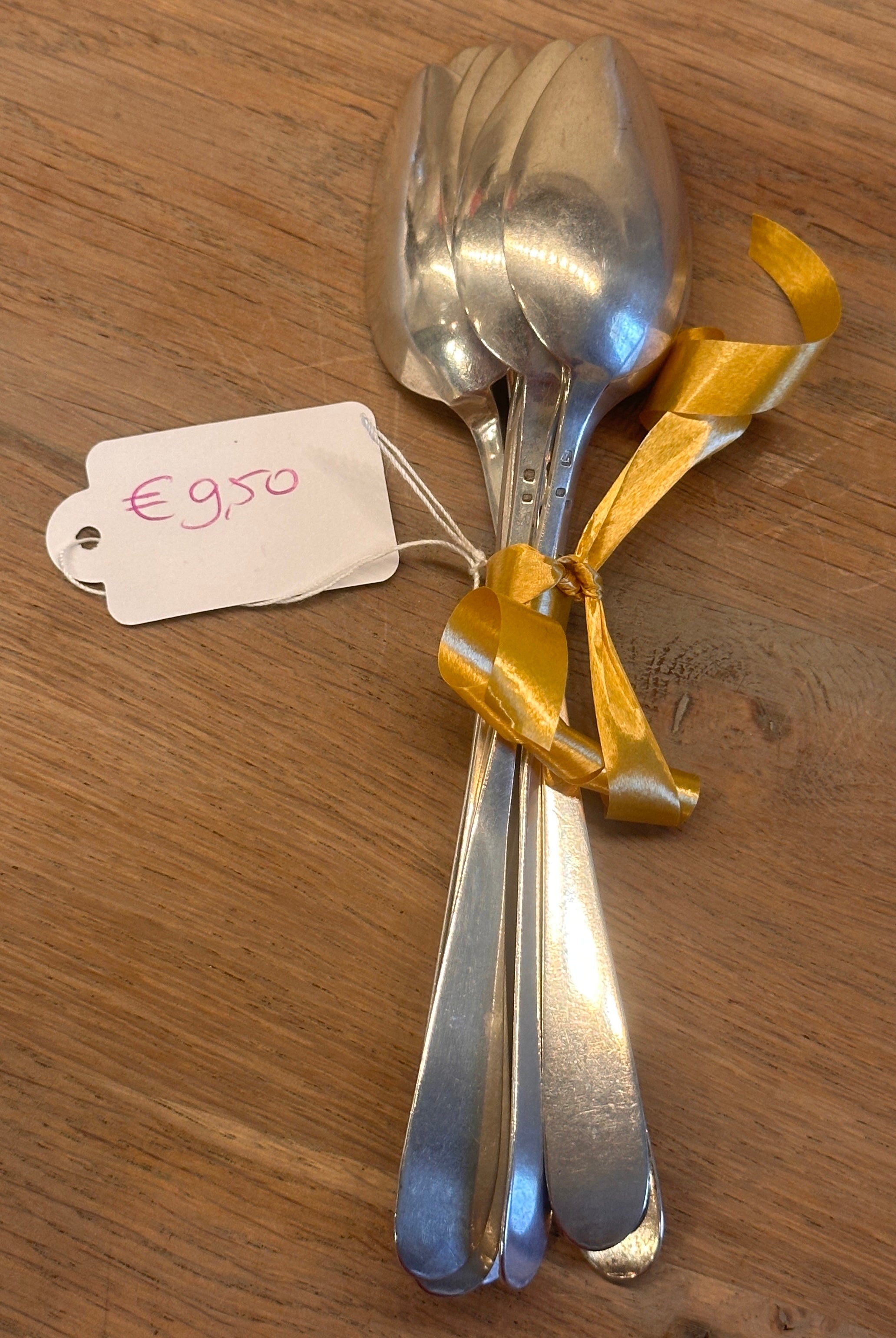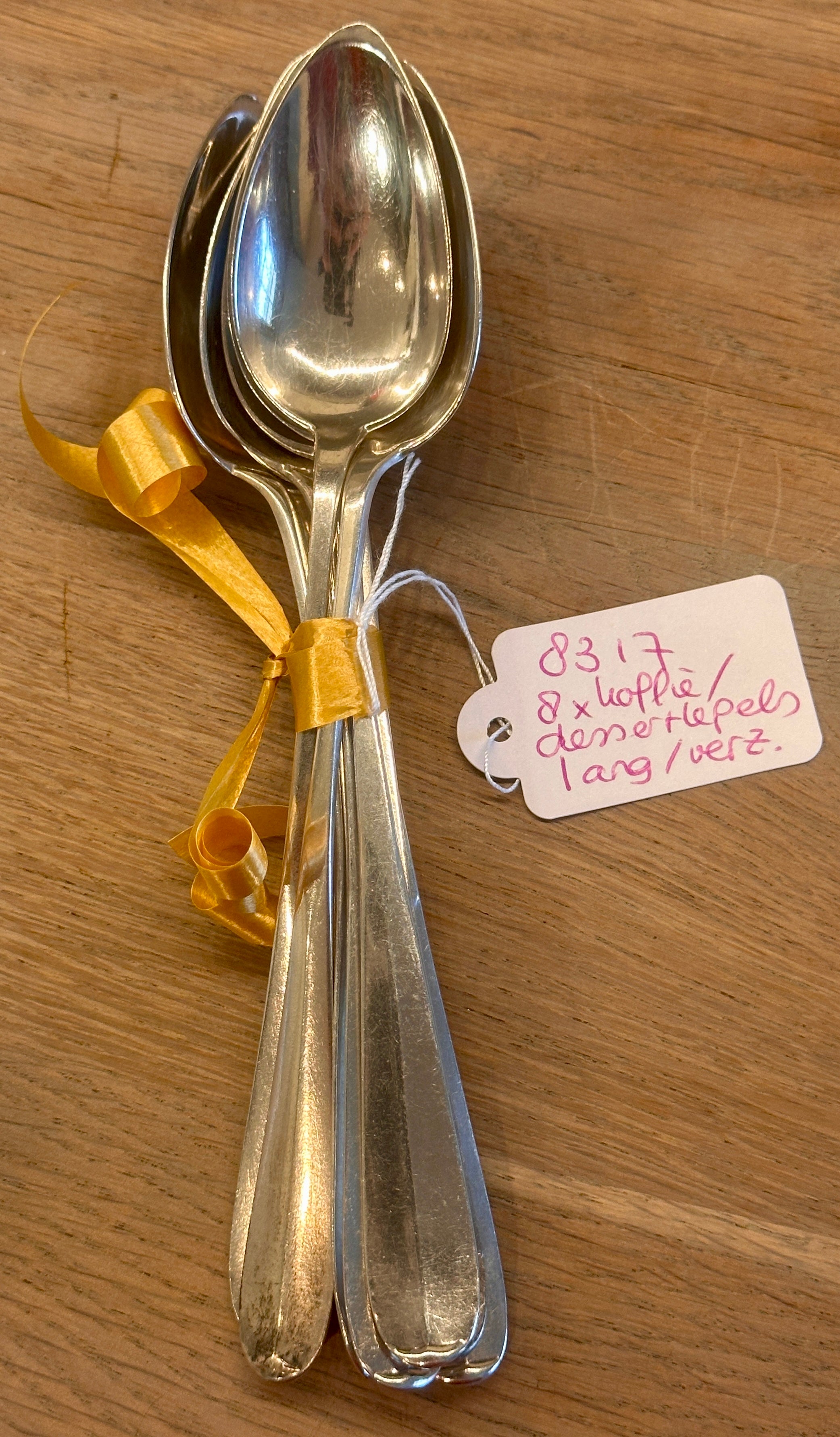 Set van 8 lange dessert- of koffielepels - gemerkt maar niet goed leesbaar - glad uitgevoerd - verzilverd
