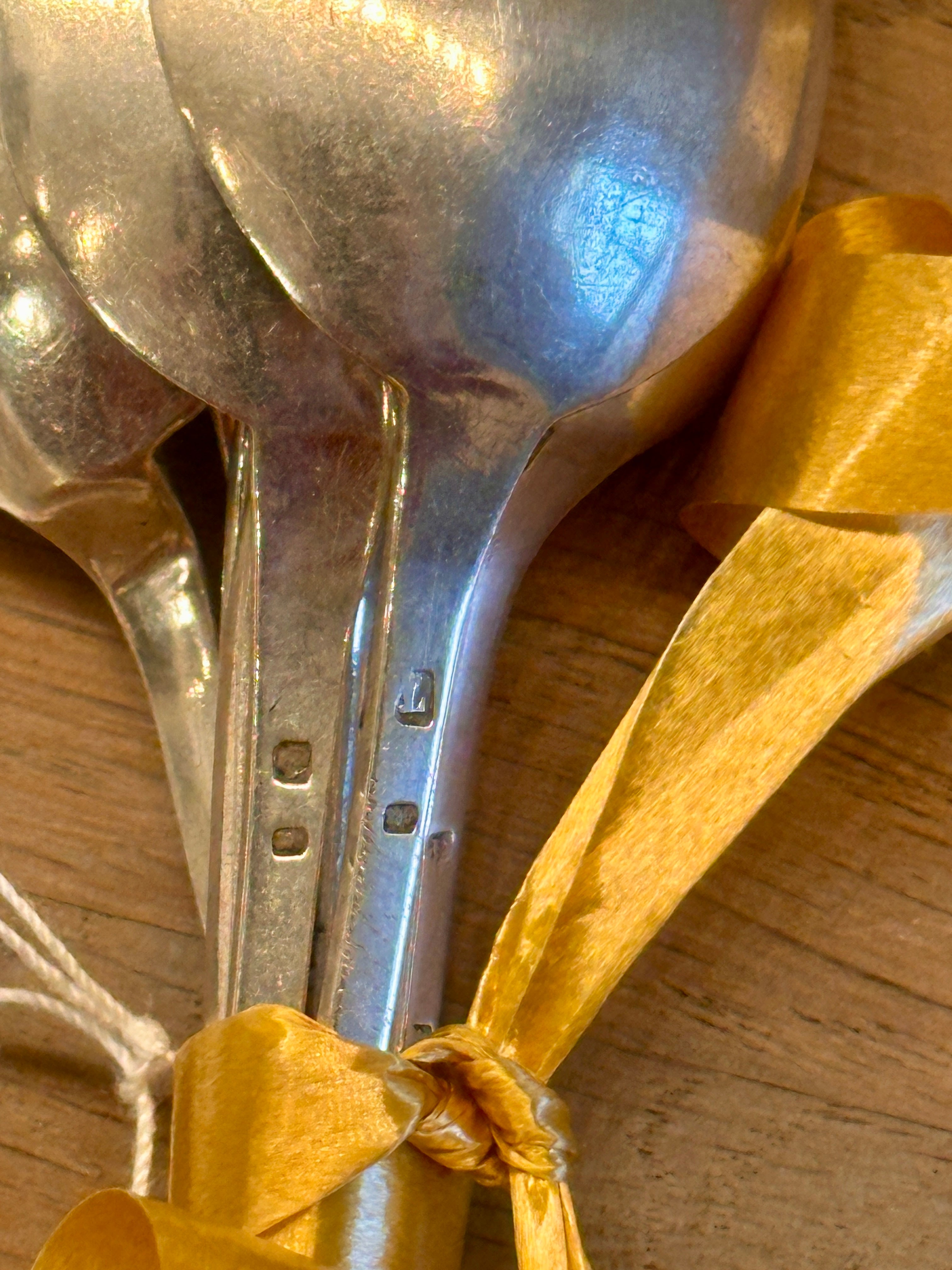 Set van 8 lange dessert- of koffielepels - gemerkt maar niet goed leesbaar - glad uitgevoerd