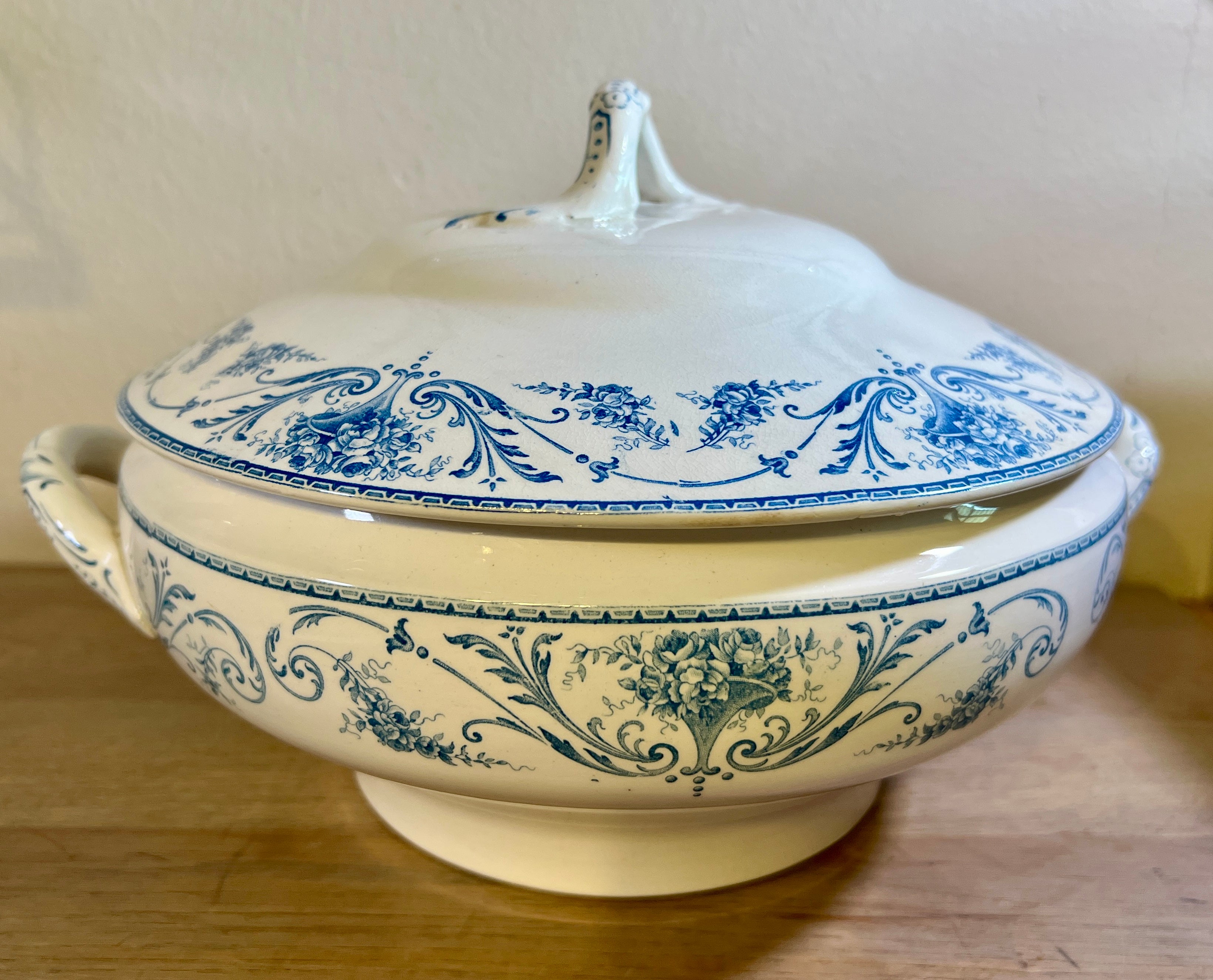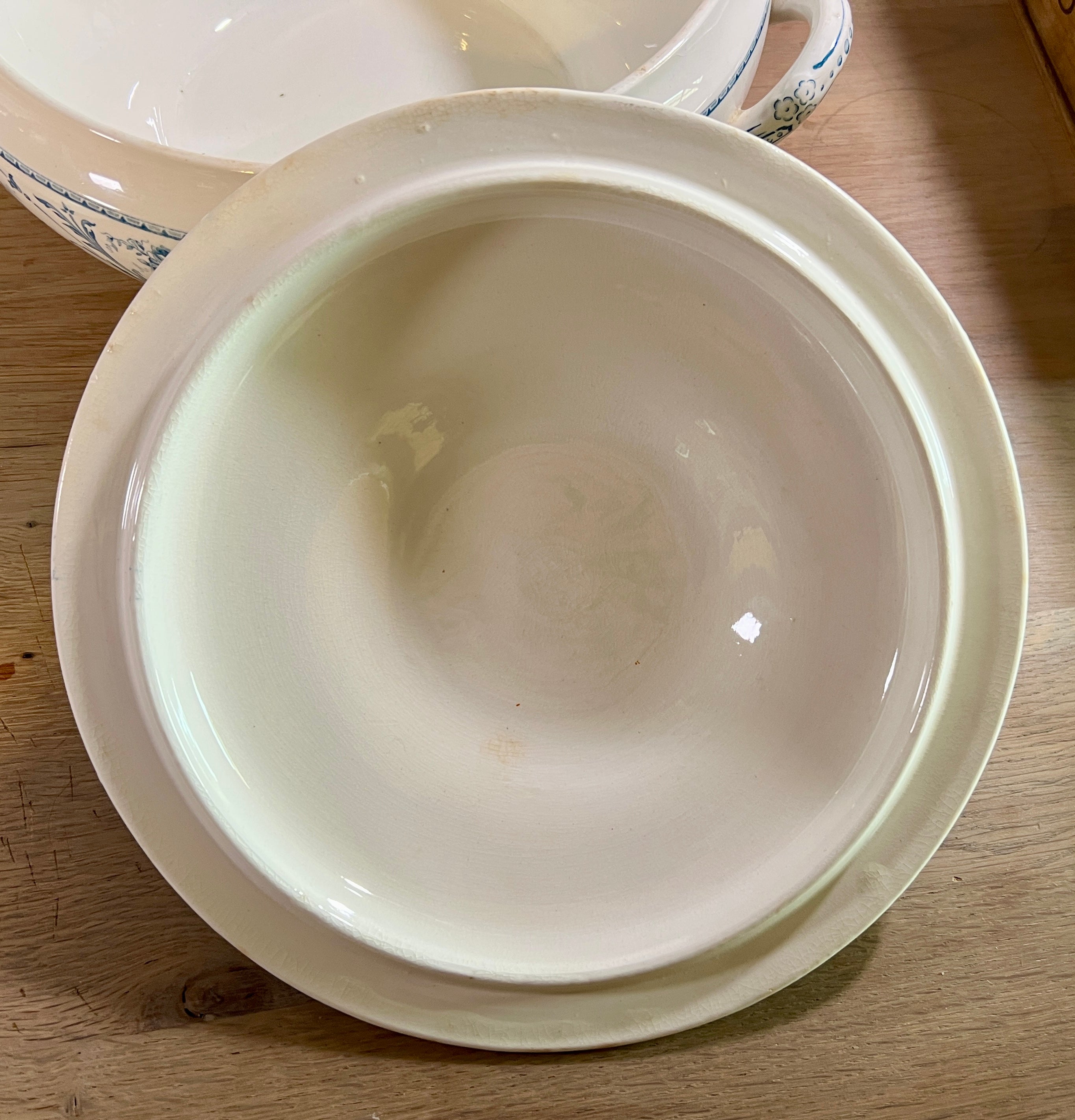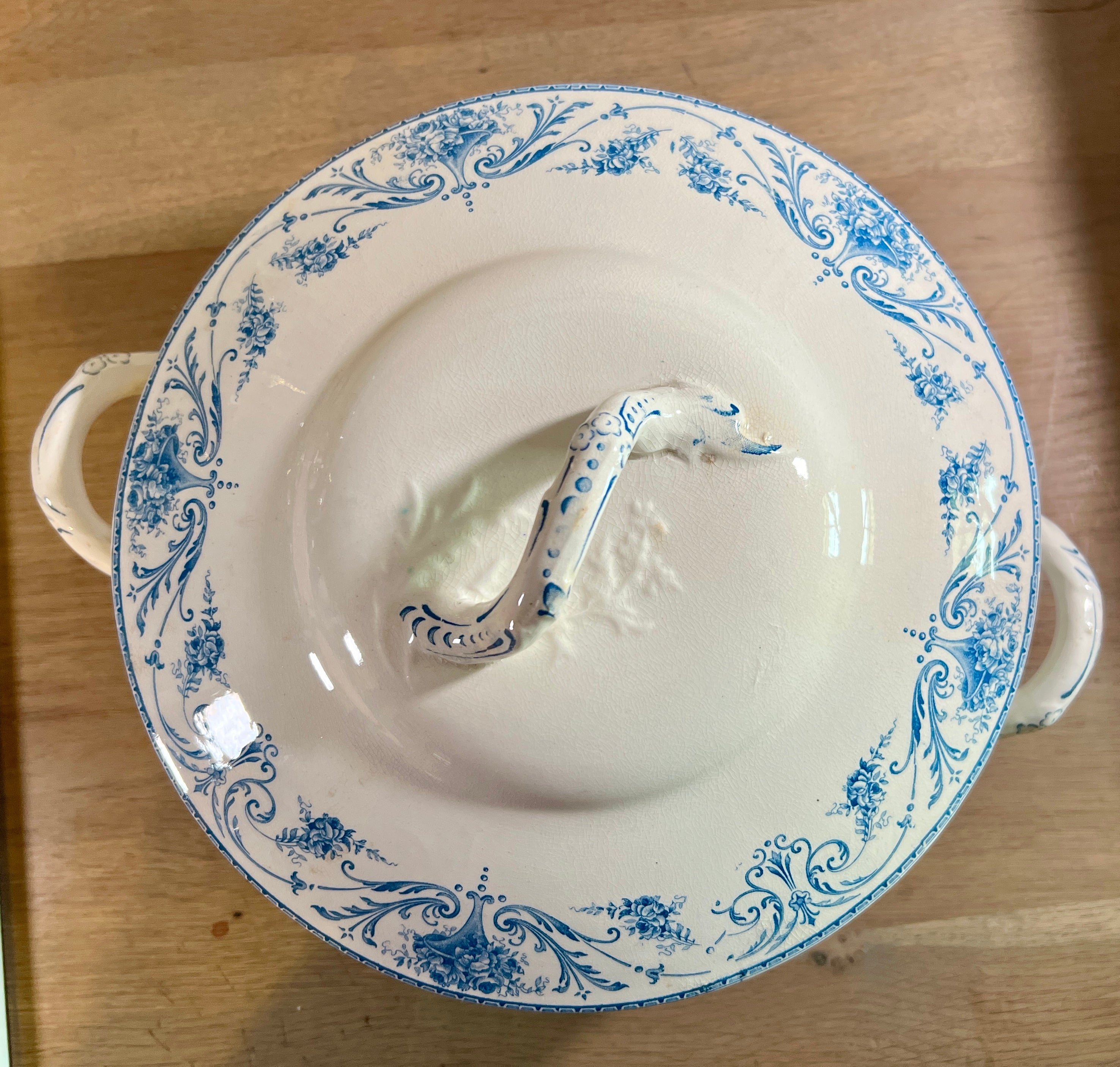 Terrine / Dekschaal - vrij groot model - Boch / B.F.K - décor LOUIS XVI uitgevoerd in blauwe kleur - gemaakt tussen 1880 en 1910
