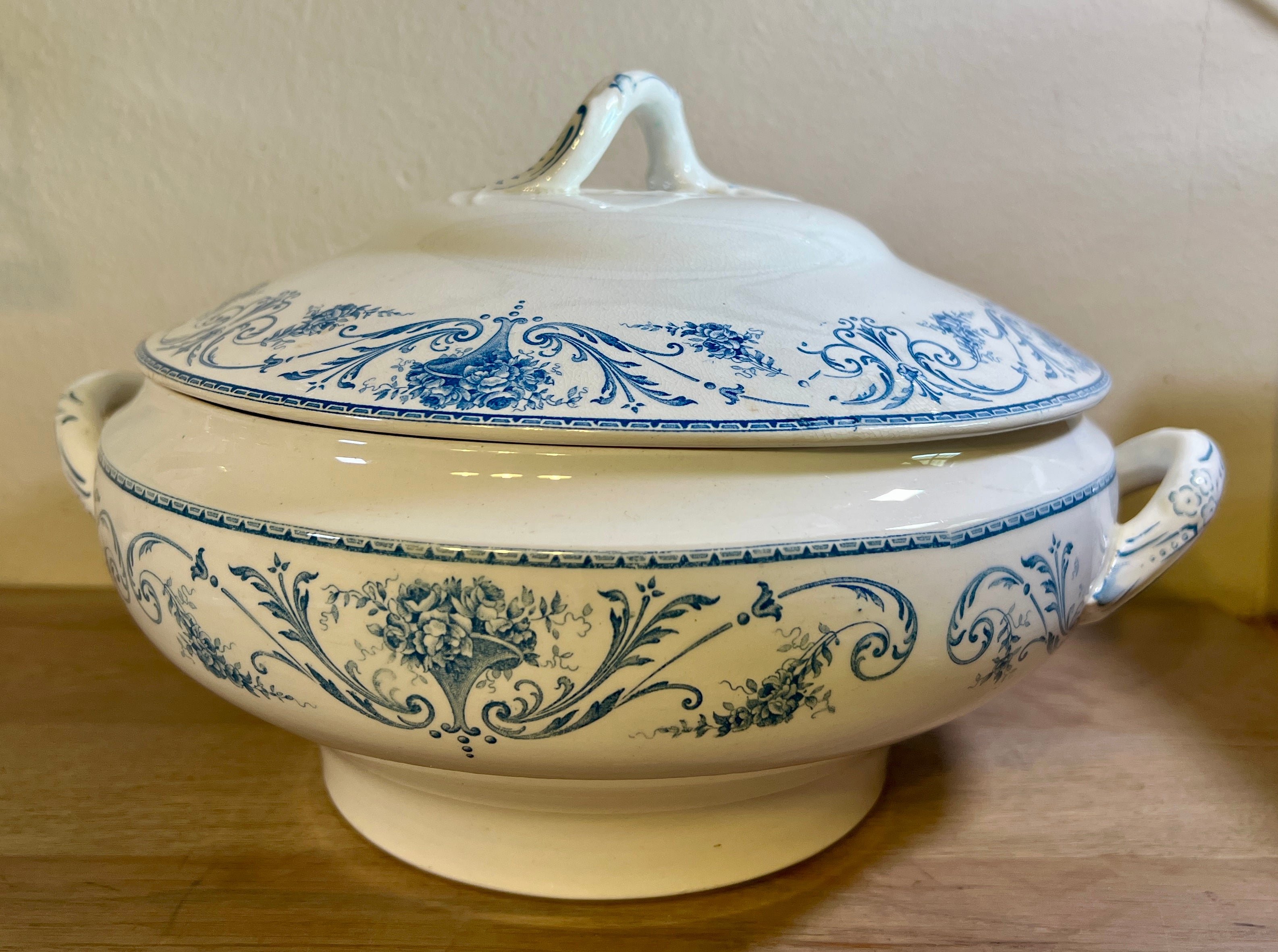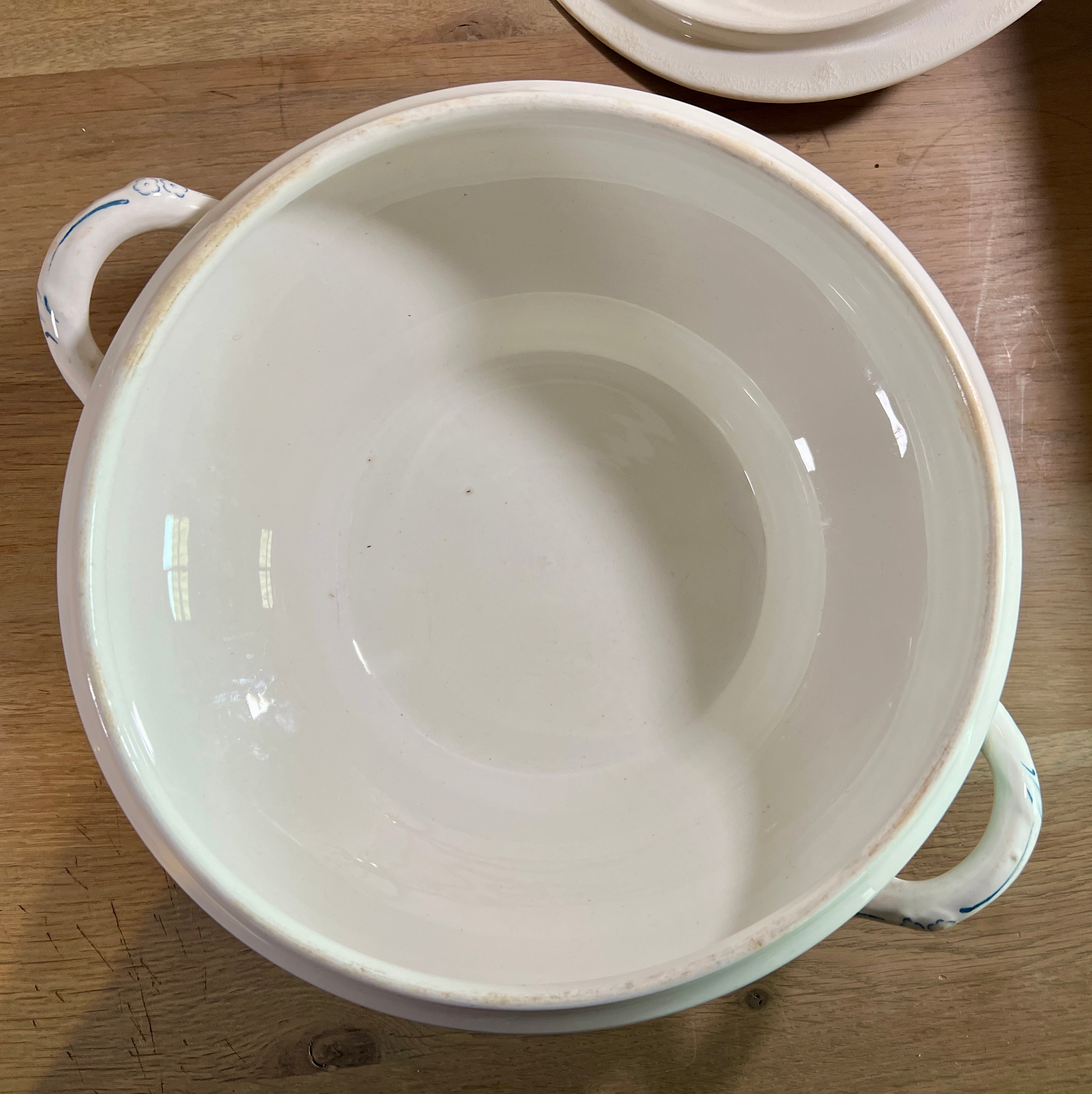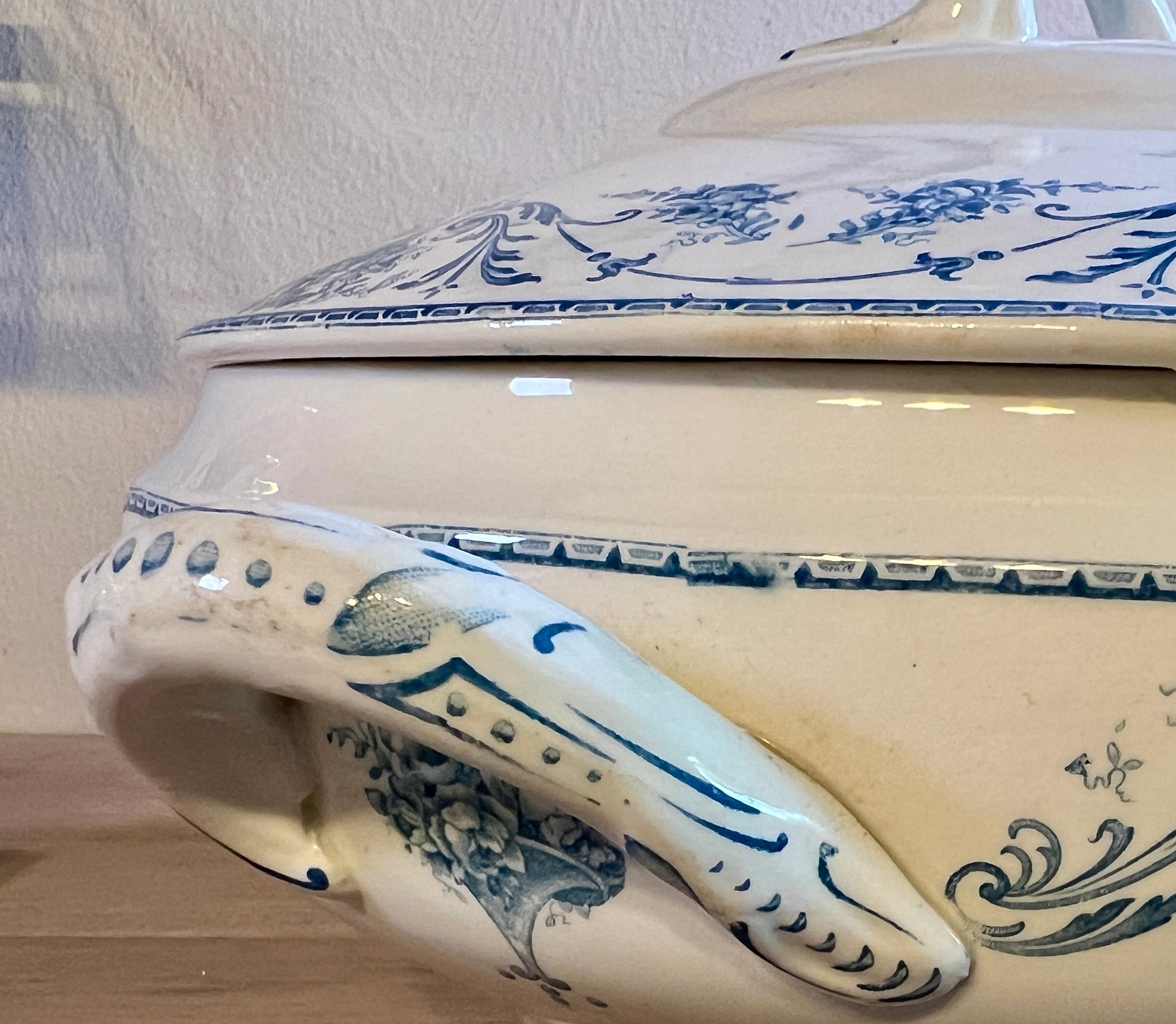 Terrine / Dekschaal - vrij groot model - Boch / B.F.K - décor LOUIS XVI uitgevoerd in blauwe kleur - gemaakt tussen 1880 en 1910