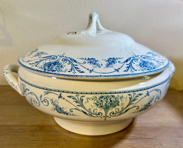 Terrine / Dekschaal - vrij groot model - Boch / B.F.K - décor LOUIS XVI uitgevoerd in blauwe kleur