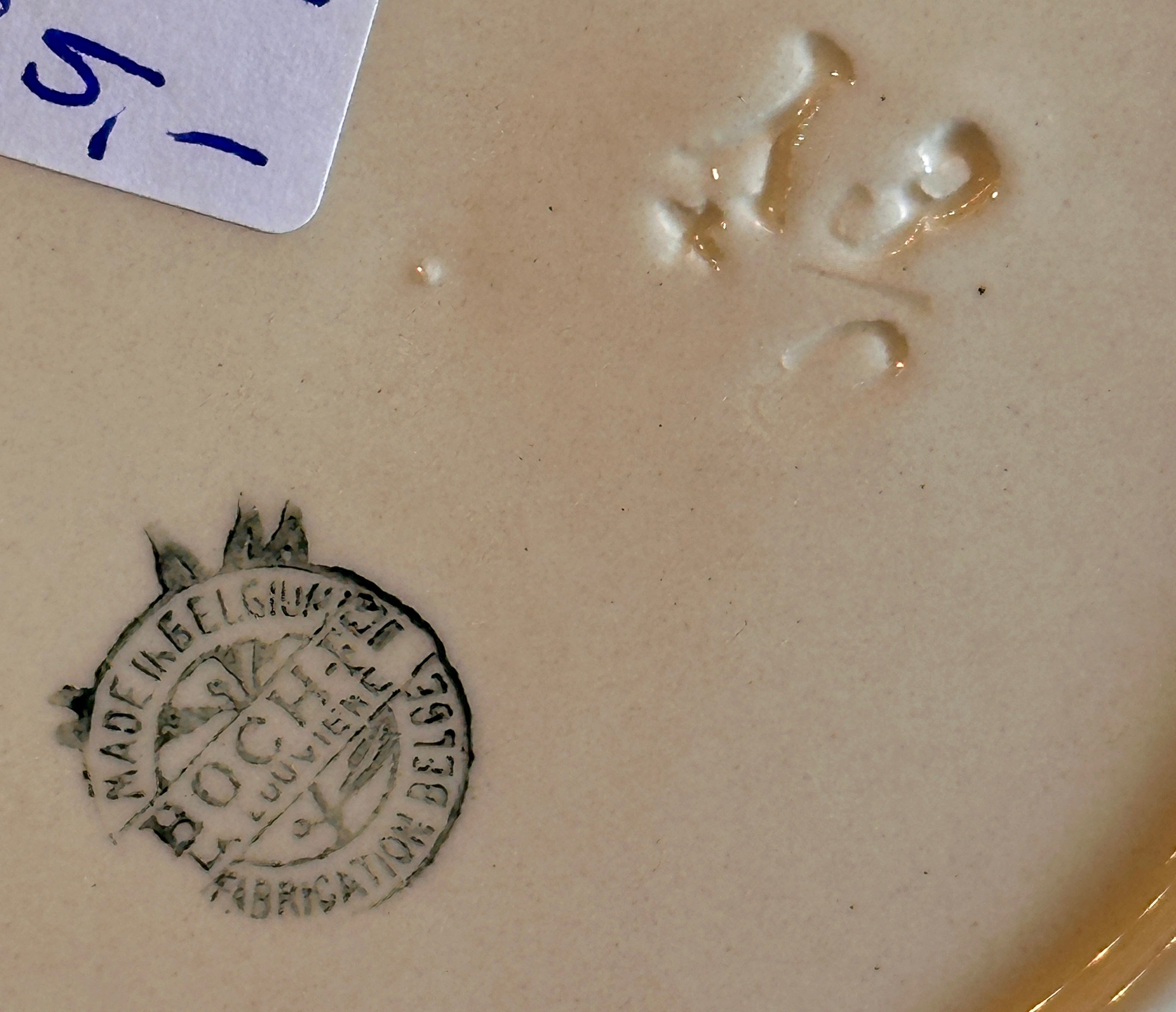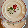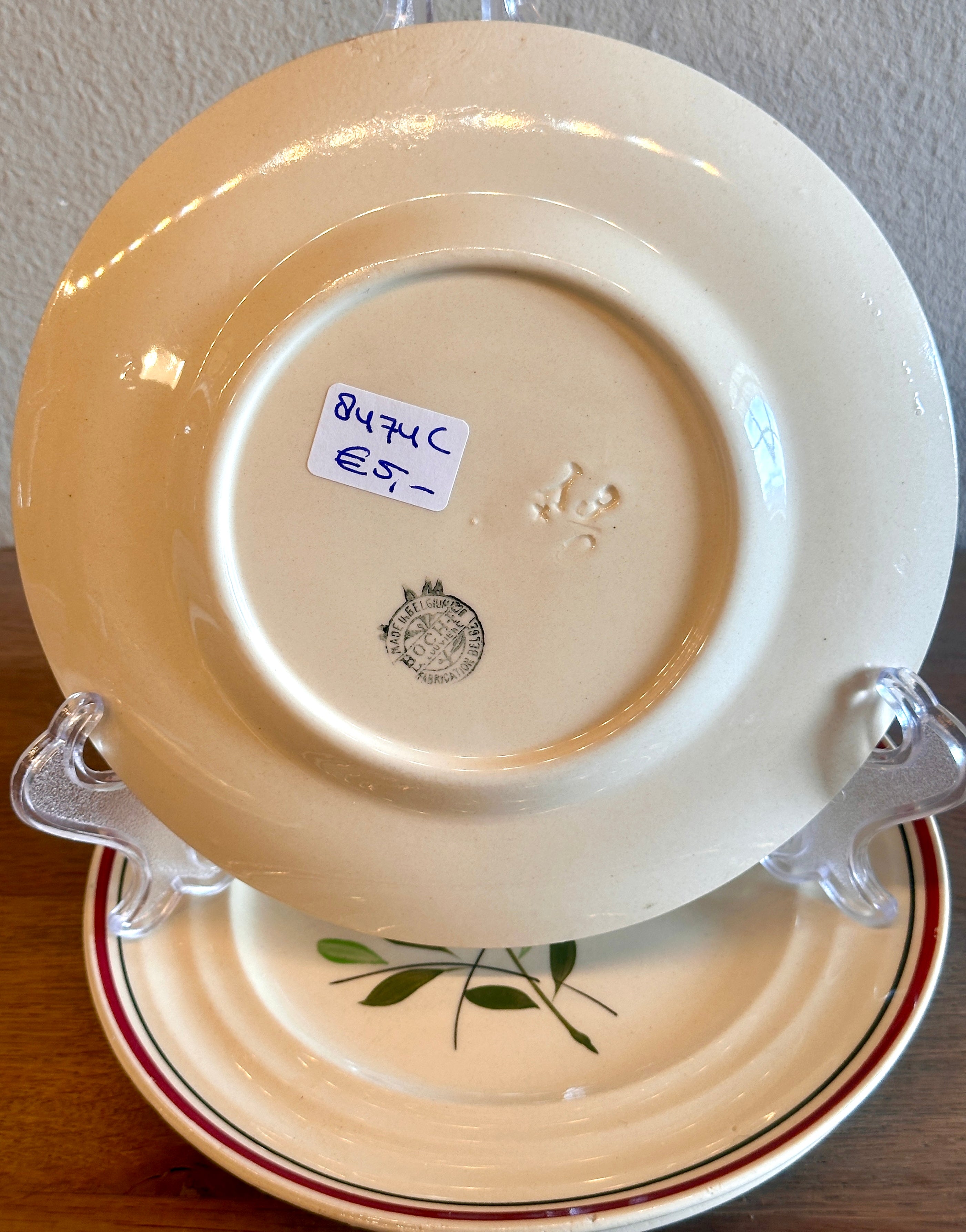 Dessertbord / Gebaksbord - Boch - decor van een handgeschilderde roos in donkerrood en kleinere rozenknop in lila/paars