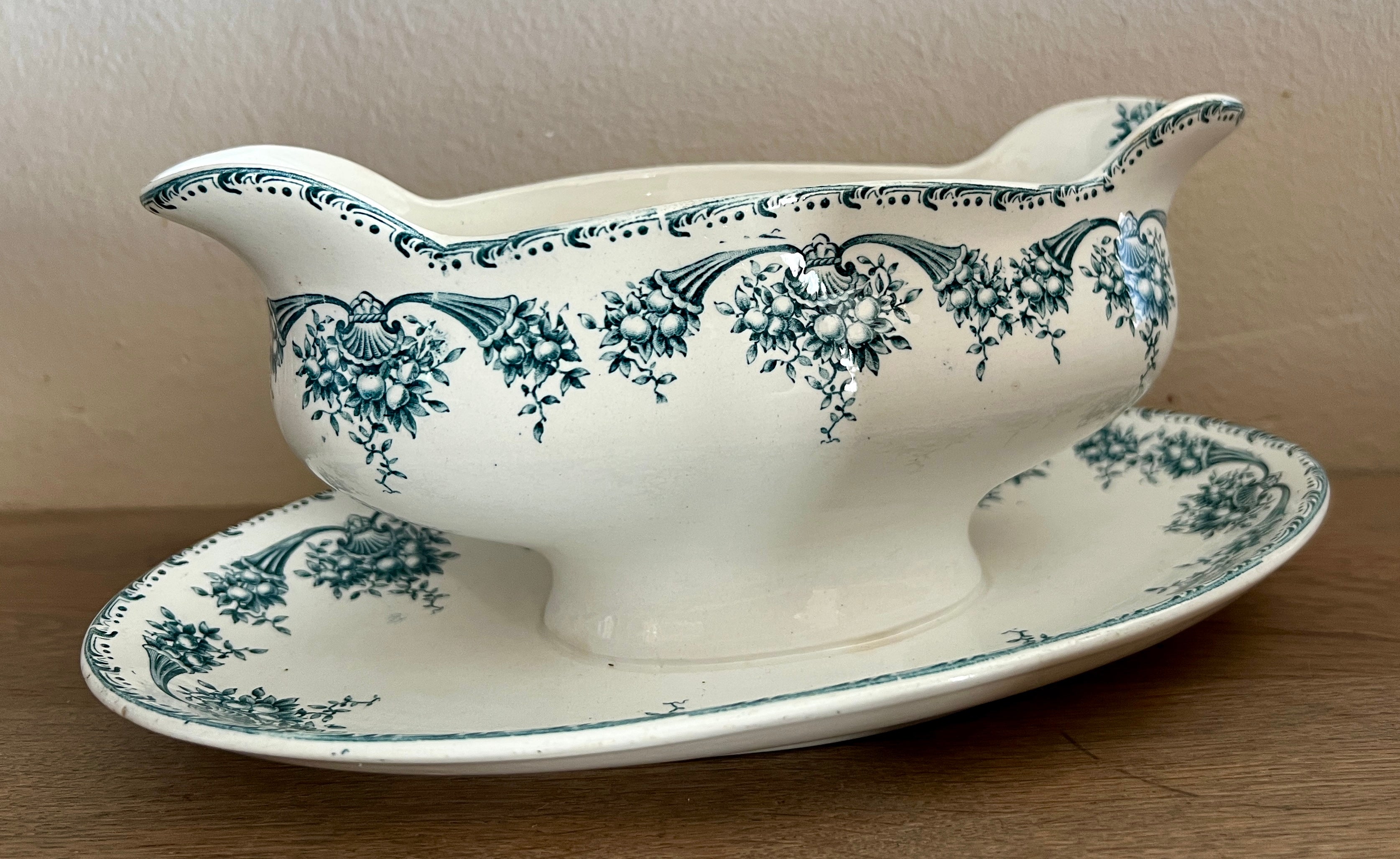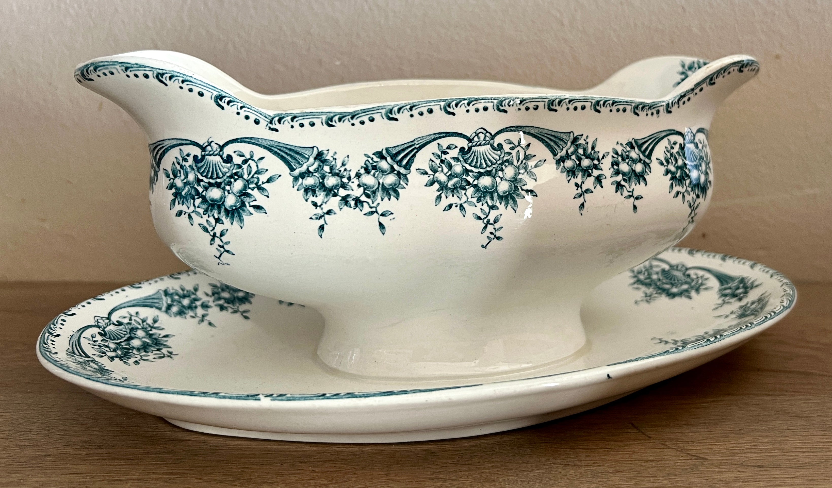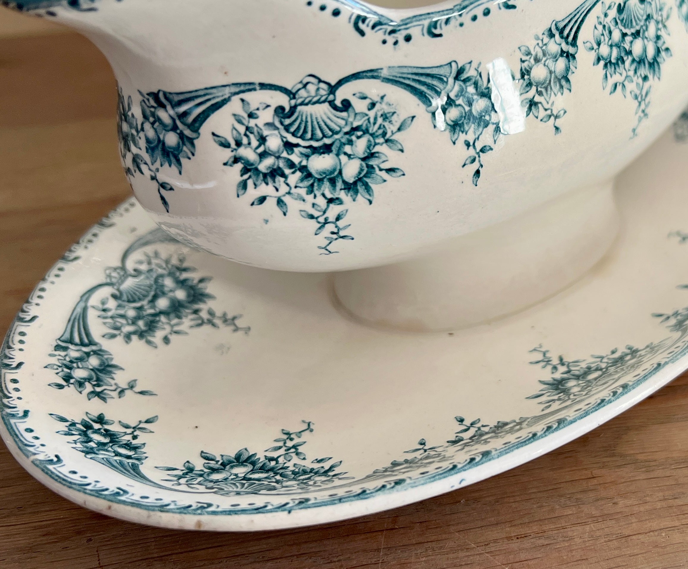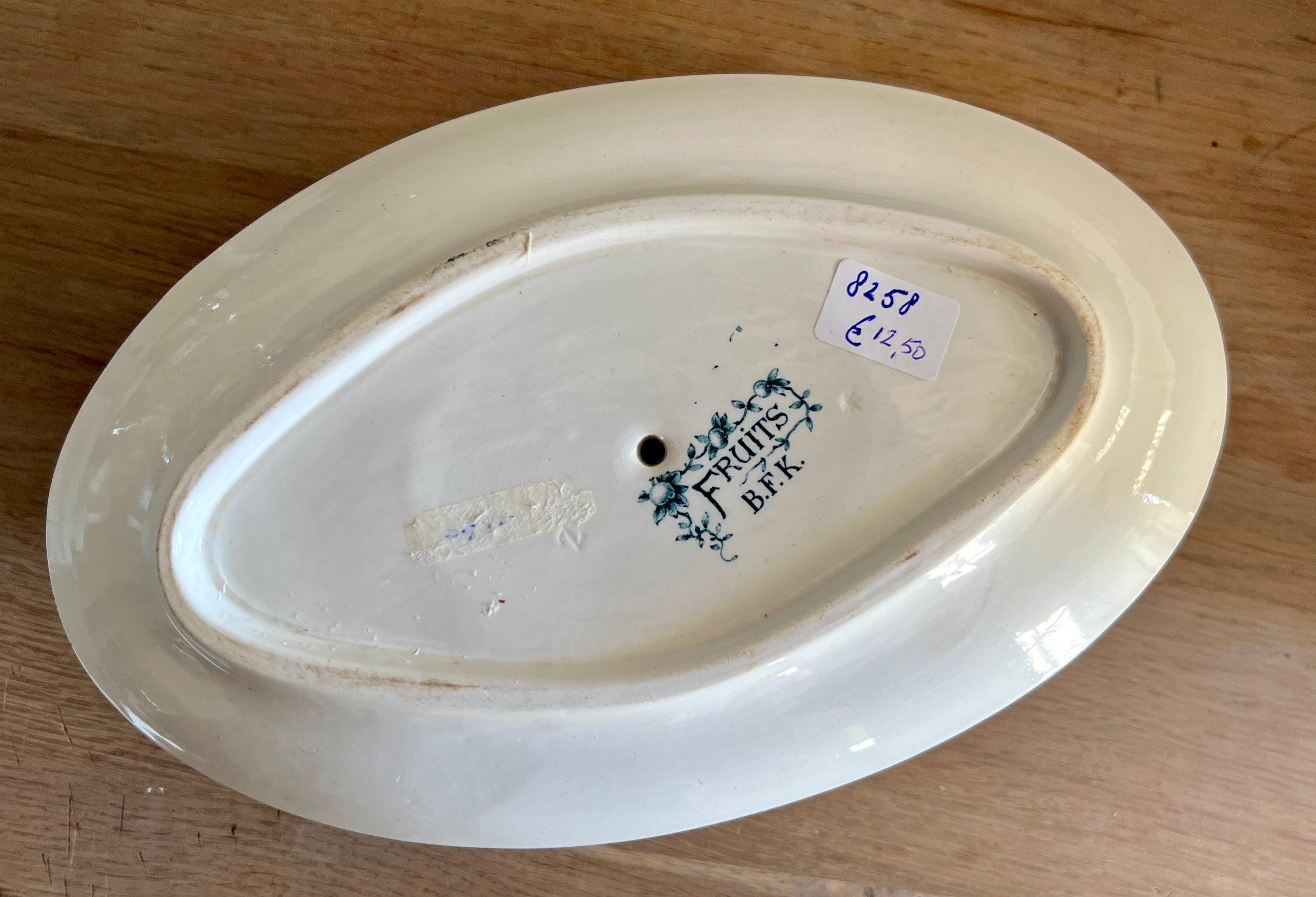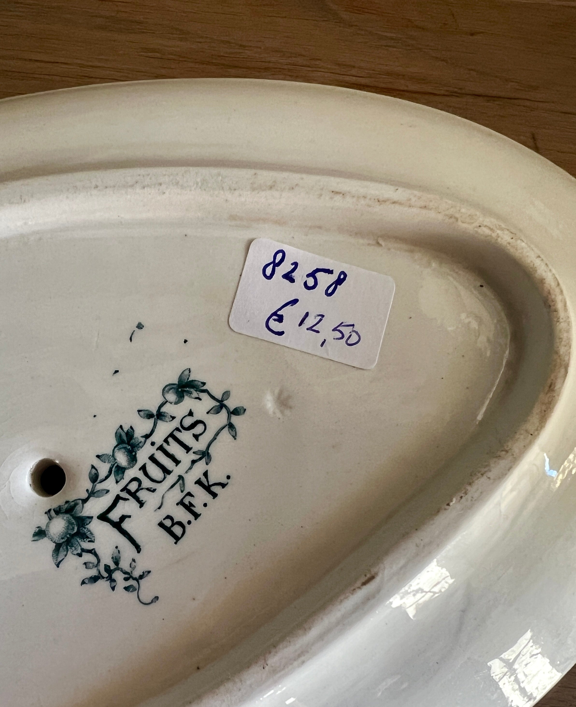 Juskom / Sauskom - Boch - décor FRUITS uitgevoerd in petrol - vorm ANGERS - gemaakt tussen 1880 en 1930