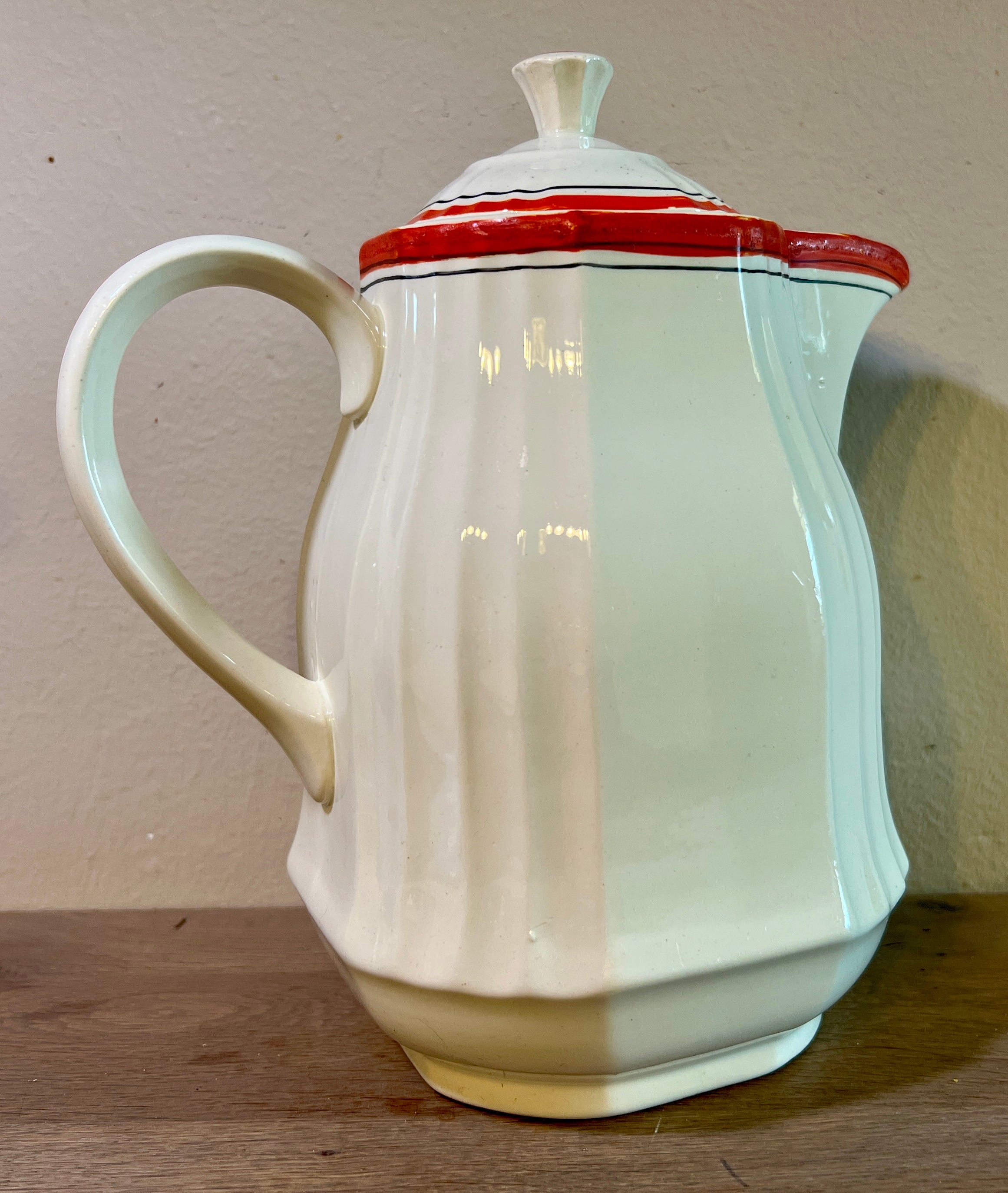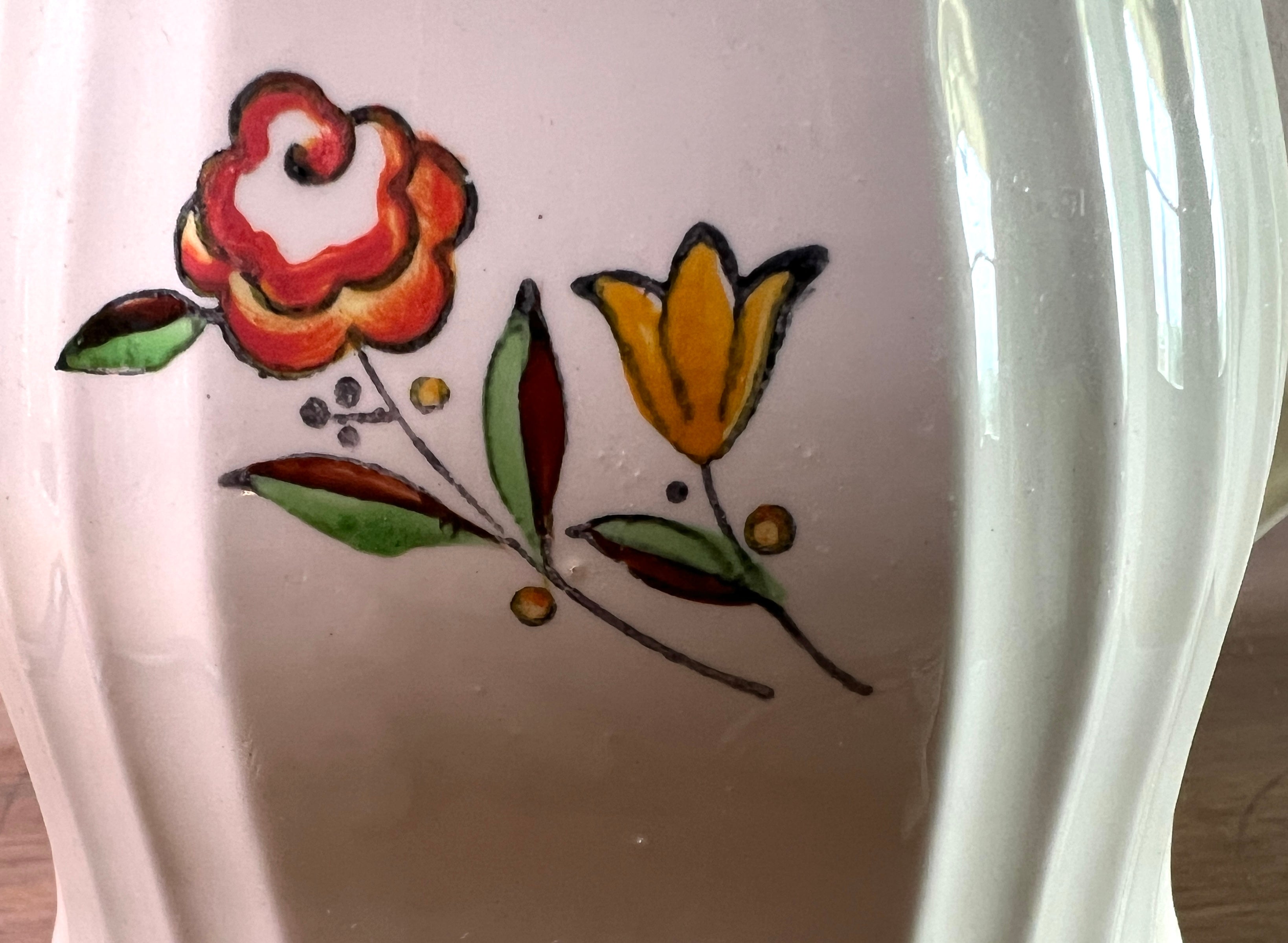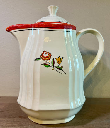 Koffiepot / Koffiekan - Boch Freres - uitgevoerd in decor met bloemetjes en oranjekleurige accenten