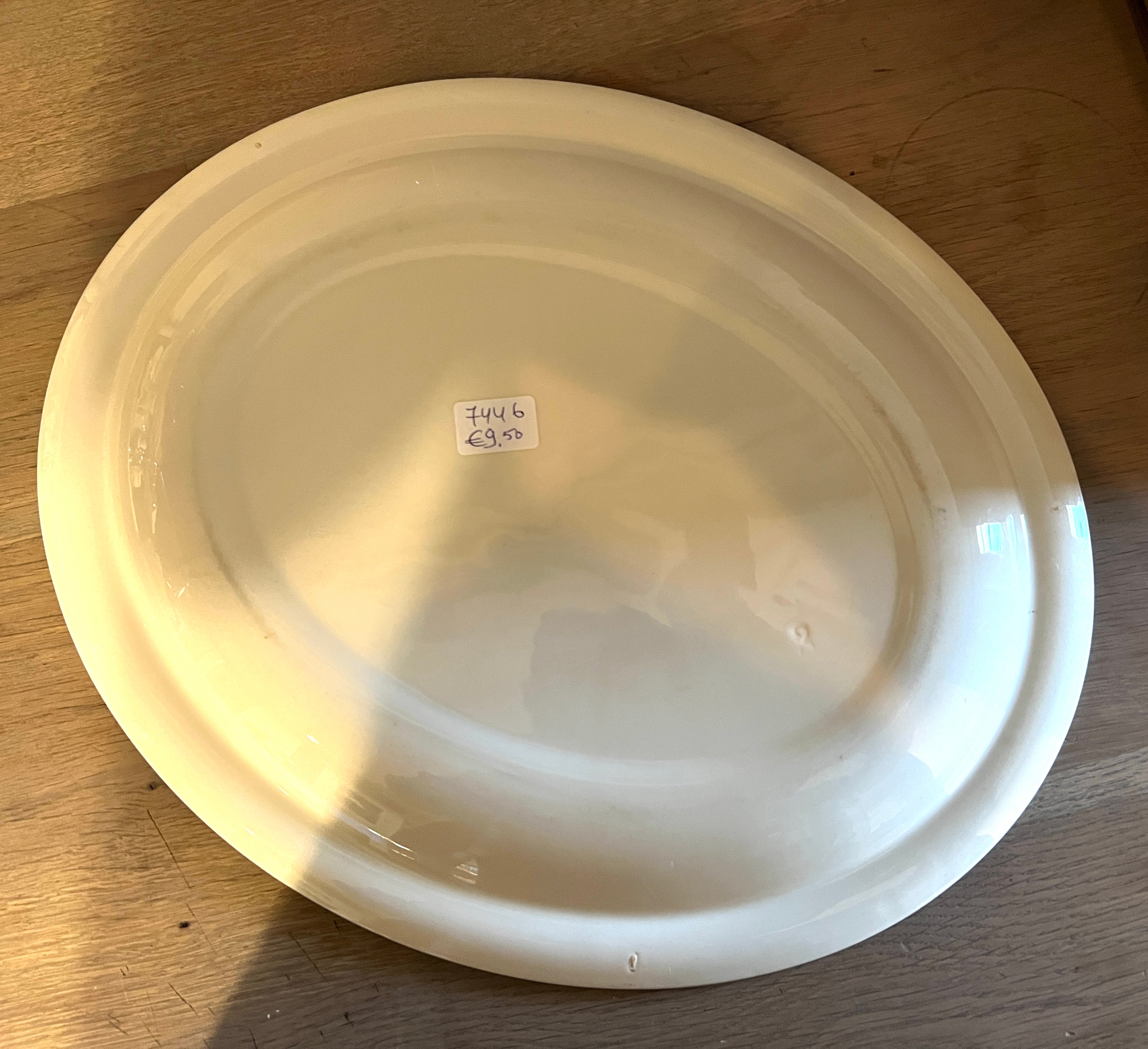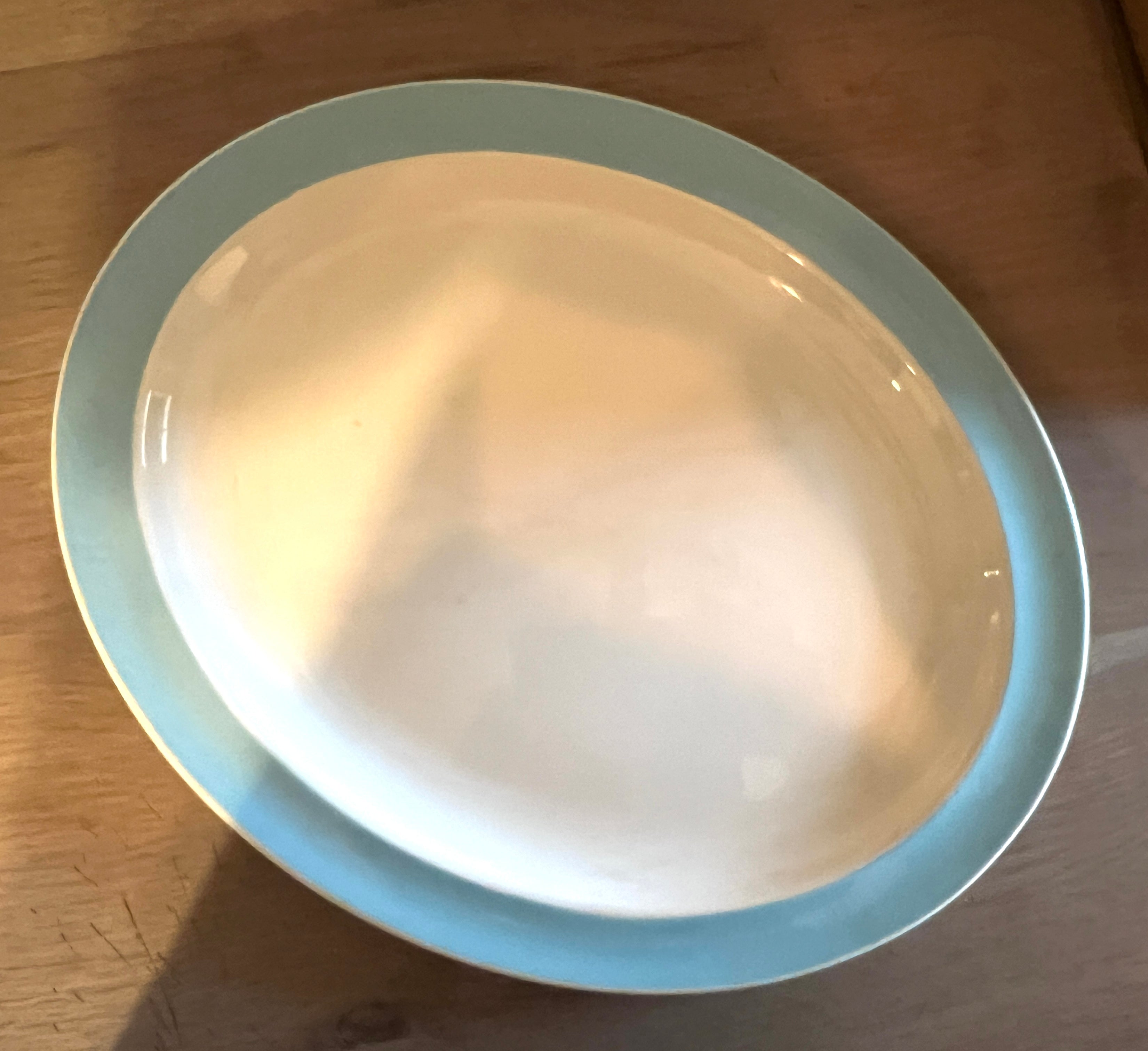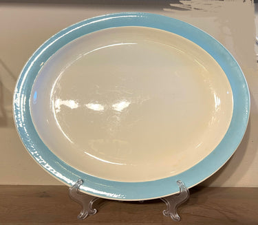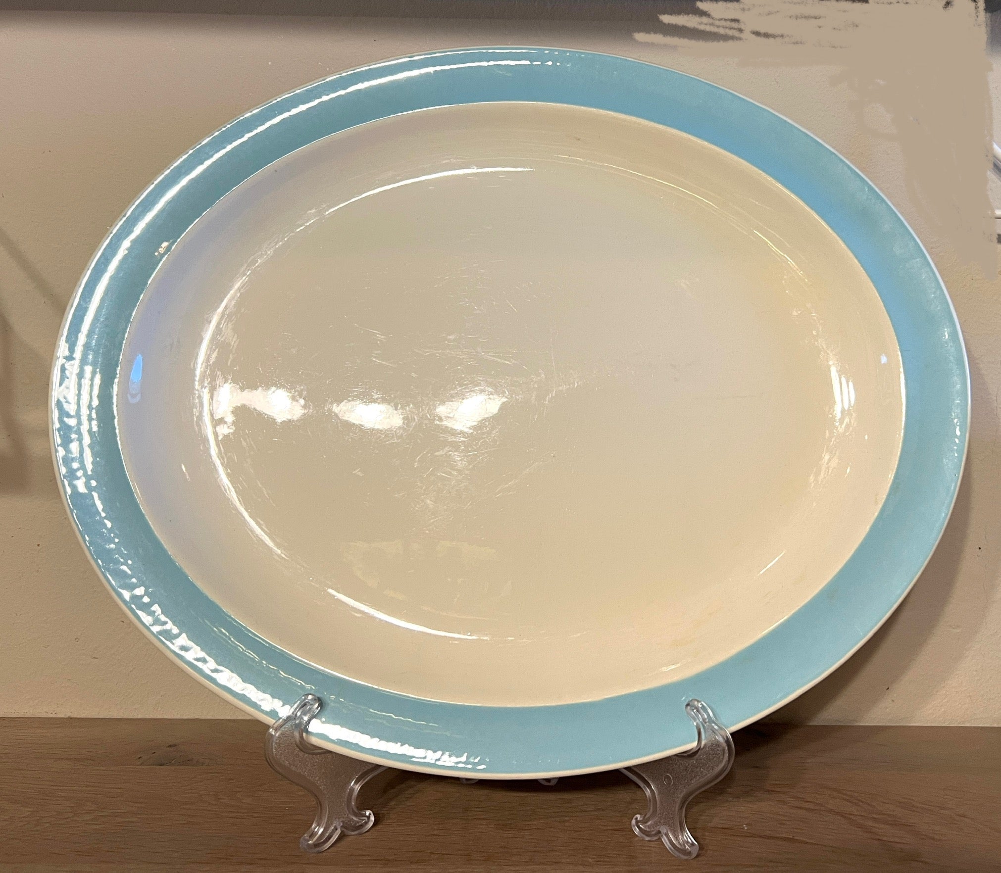 Schaal / Bord - groot ovaal model - ongemerkt maar Boch Keralux - décor met een blauw pastelkleurige rand - 1950s