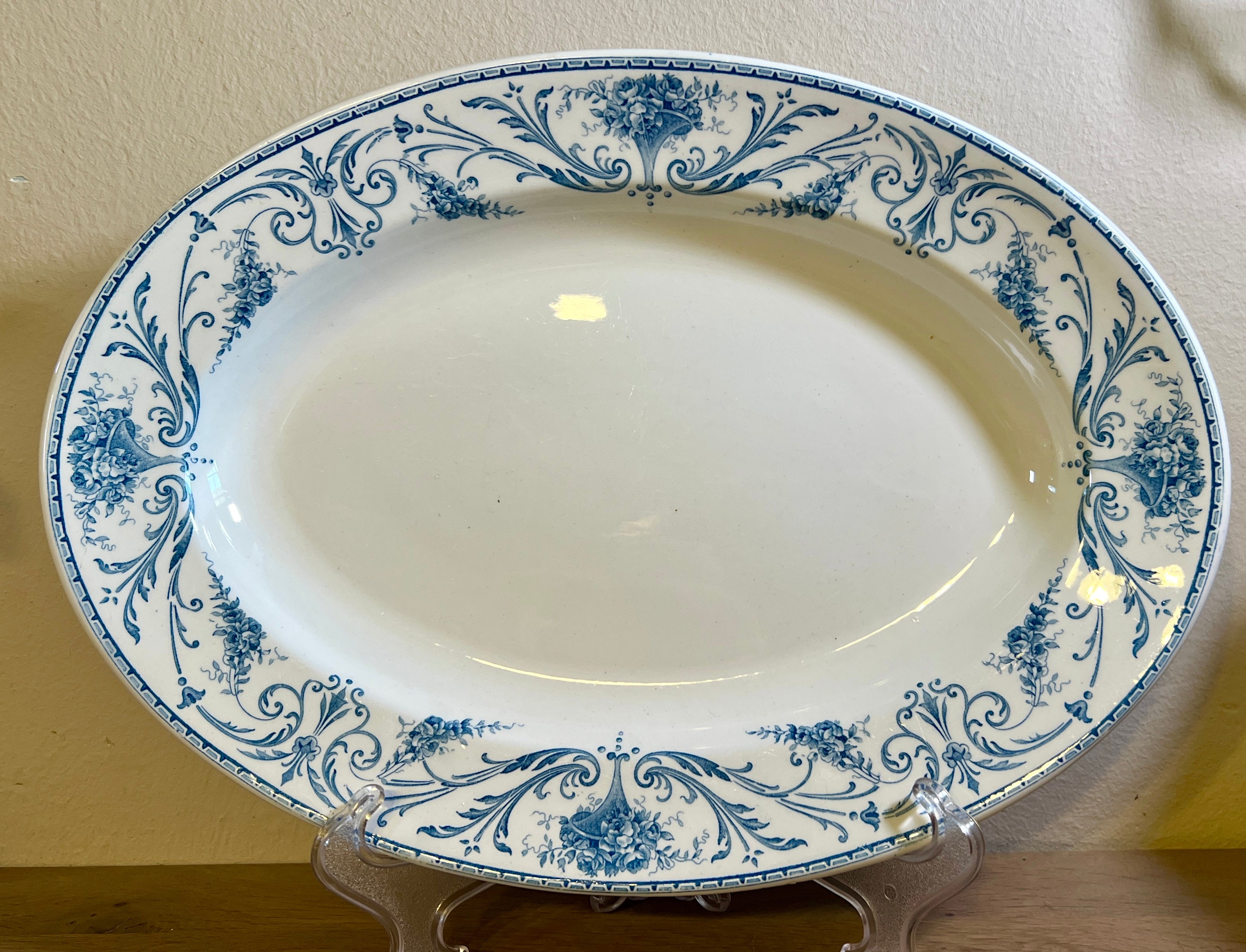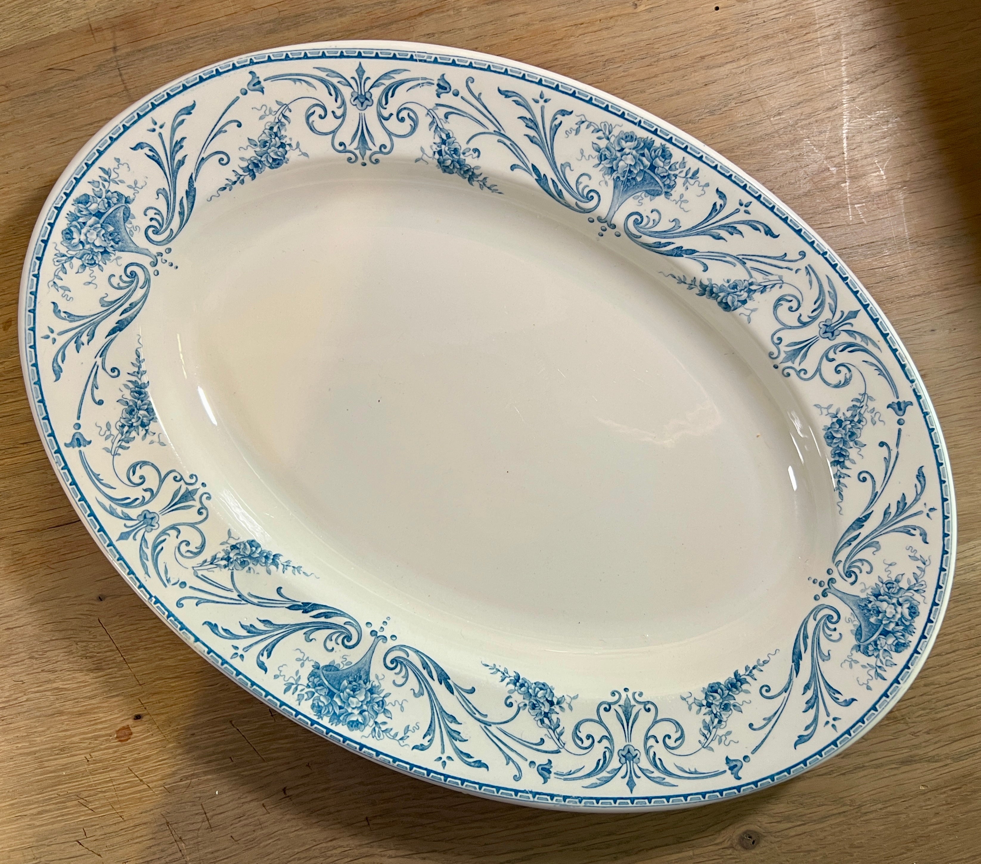 Schaal / Bord - groter, ovaal, model - Boch / B.F.K - décor LOUIS XVI uitgevoerd in blauw/grijze kleur - gemaakt tussen 1880 en 1910