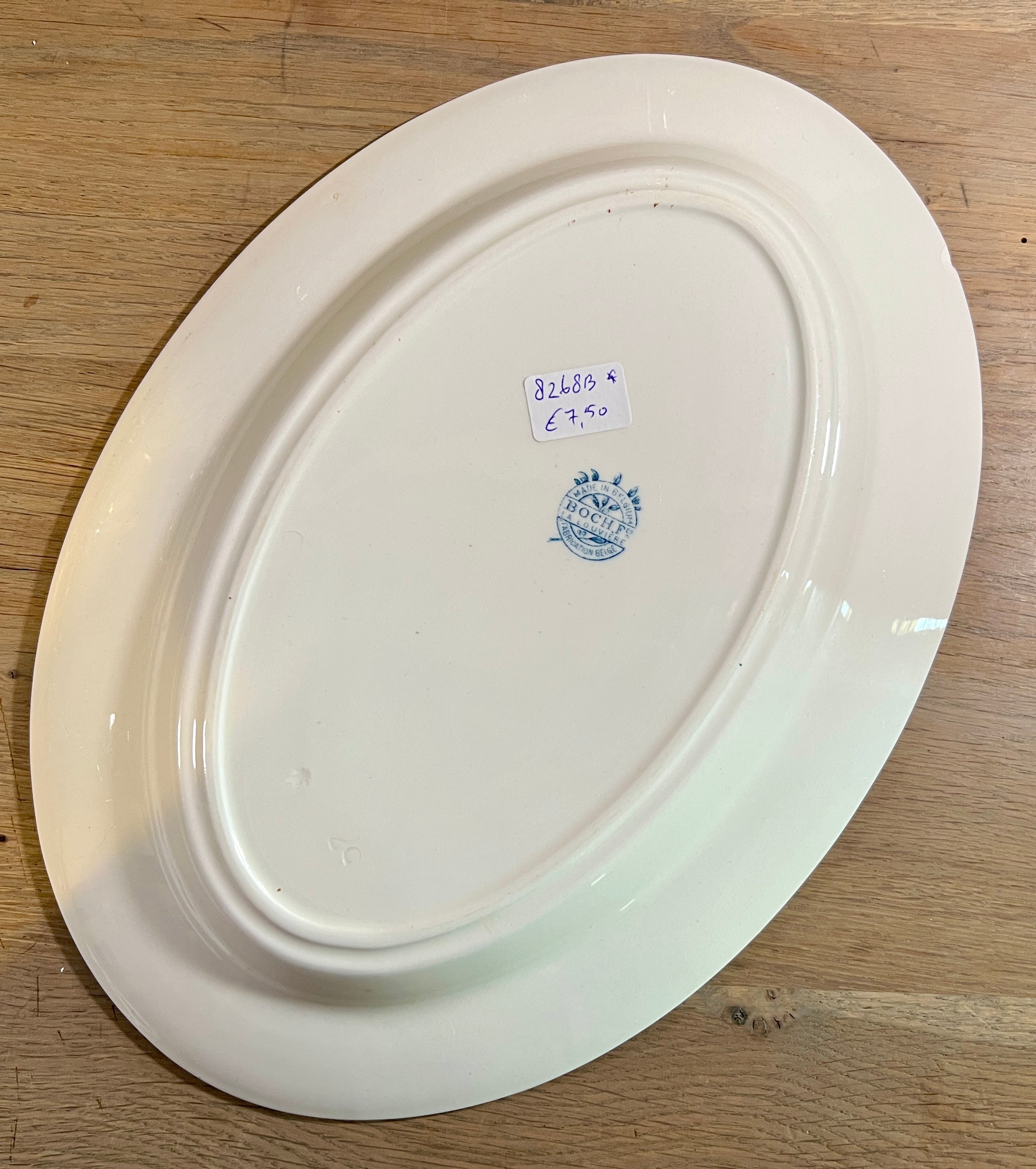 Schaal / Bord - groter, ovaal, model - Boch / B.F.K - décor LOUIS XVI uitgevoerd in blauw/grijze kleur