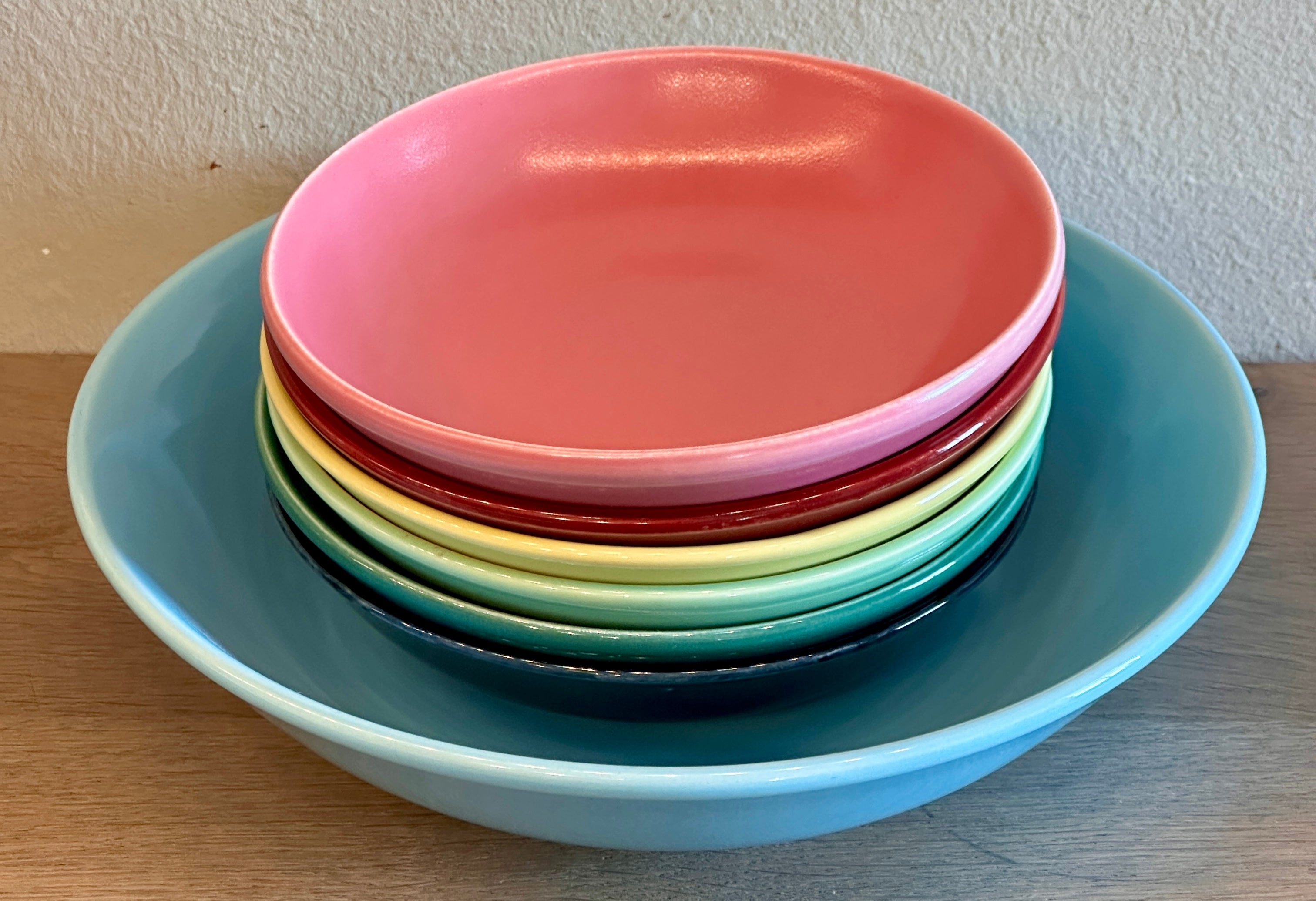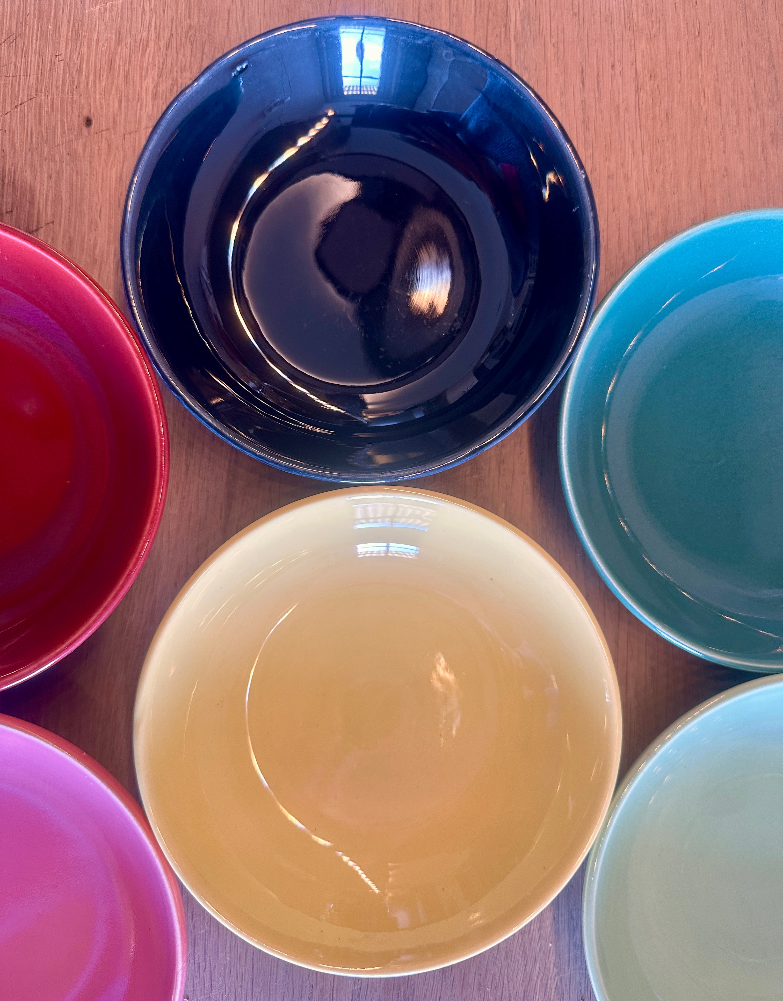Snackset / Fruitset / Dessertset - rond model - Boch - set bestaat uit 7 delen, 1 grote schaal en 6 kleinere schaaltjes - in verschillende kleuren