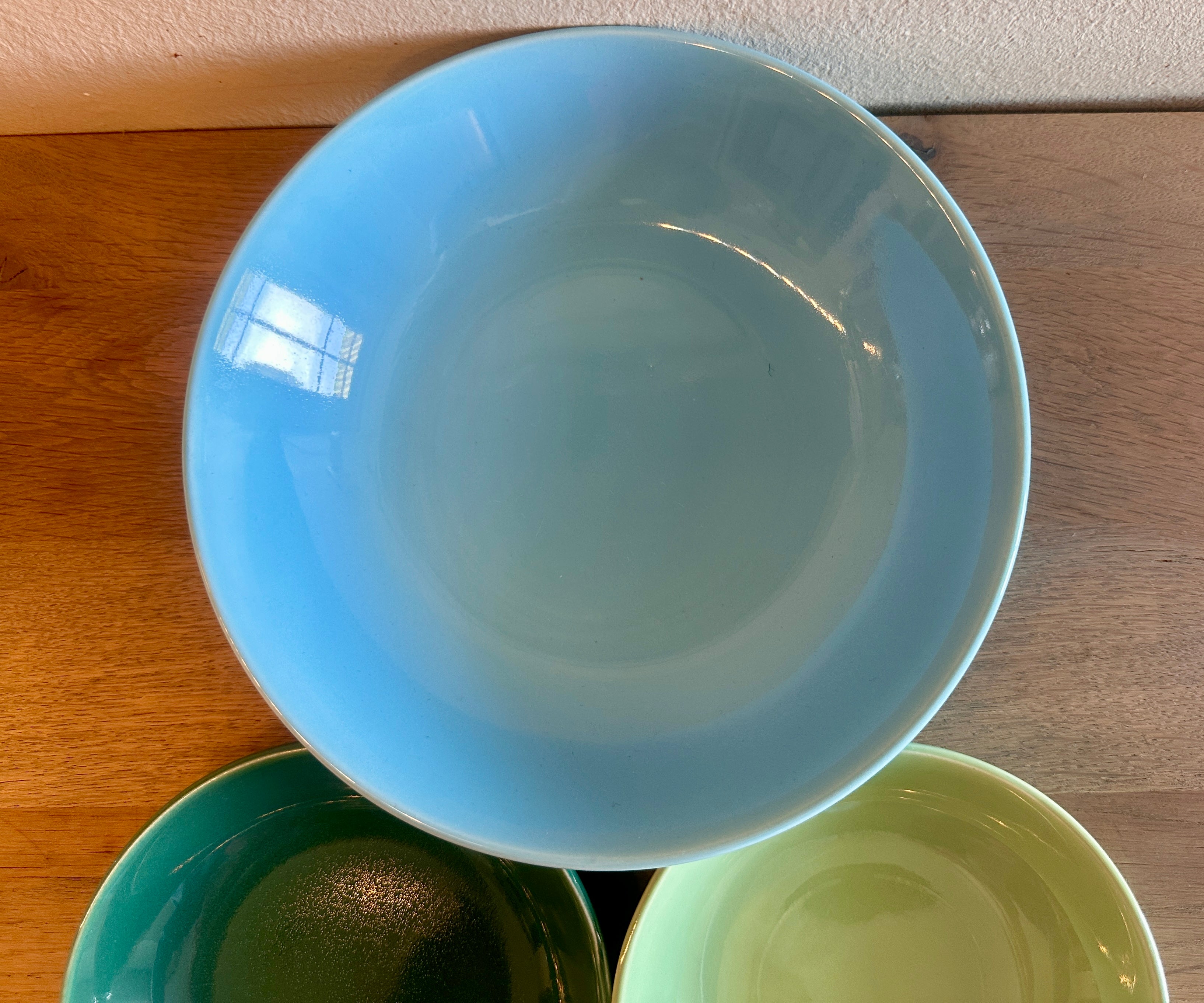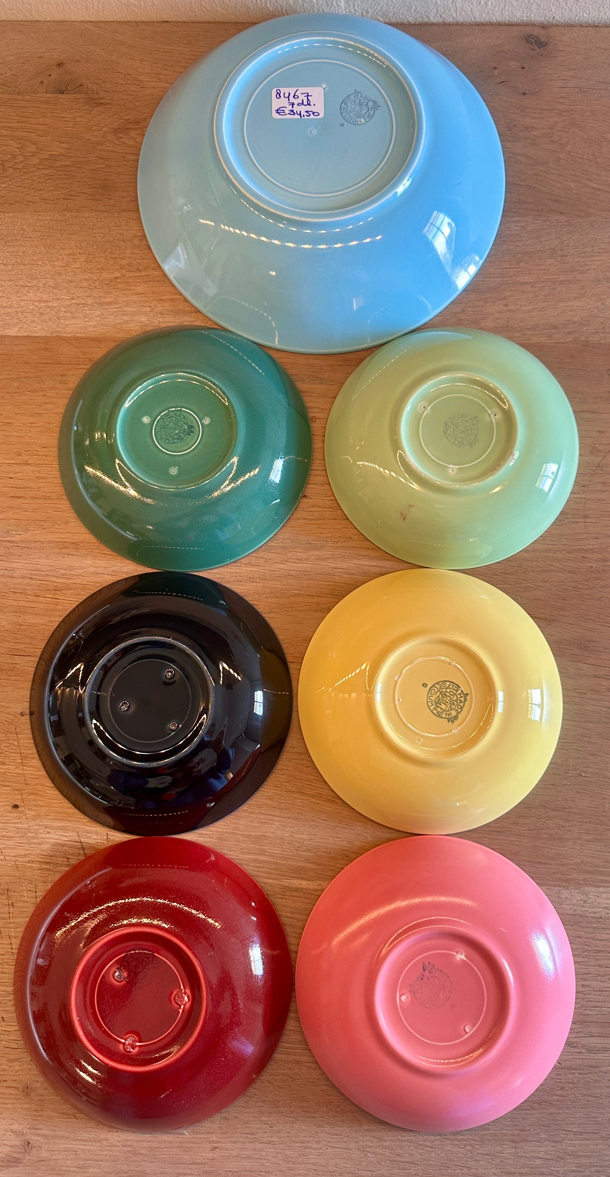 Grote schaal dia. 19,7 cm., hoogte 4,6 cm. - kleine schaaltjes dia. 13 cm., hoogte 2,8 cm.