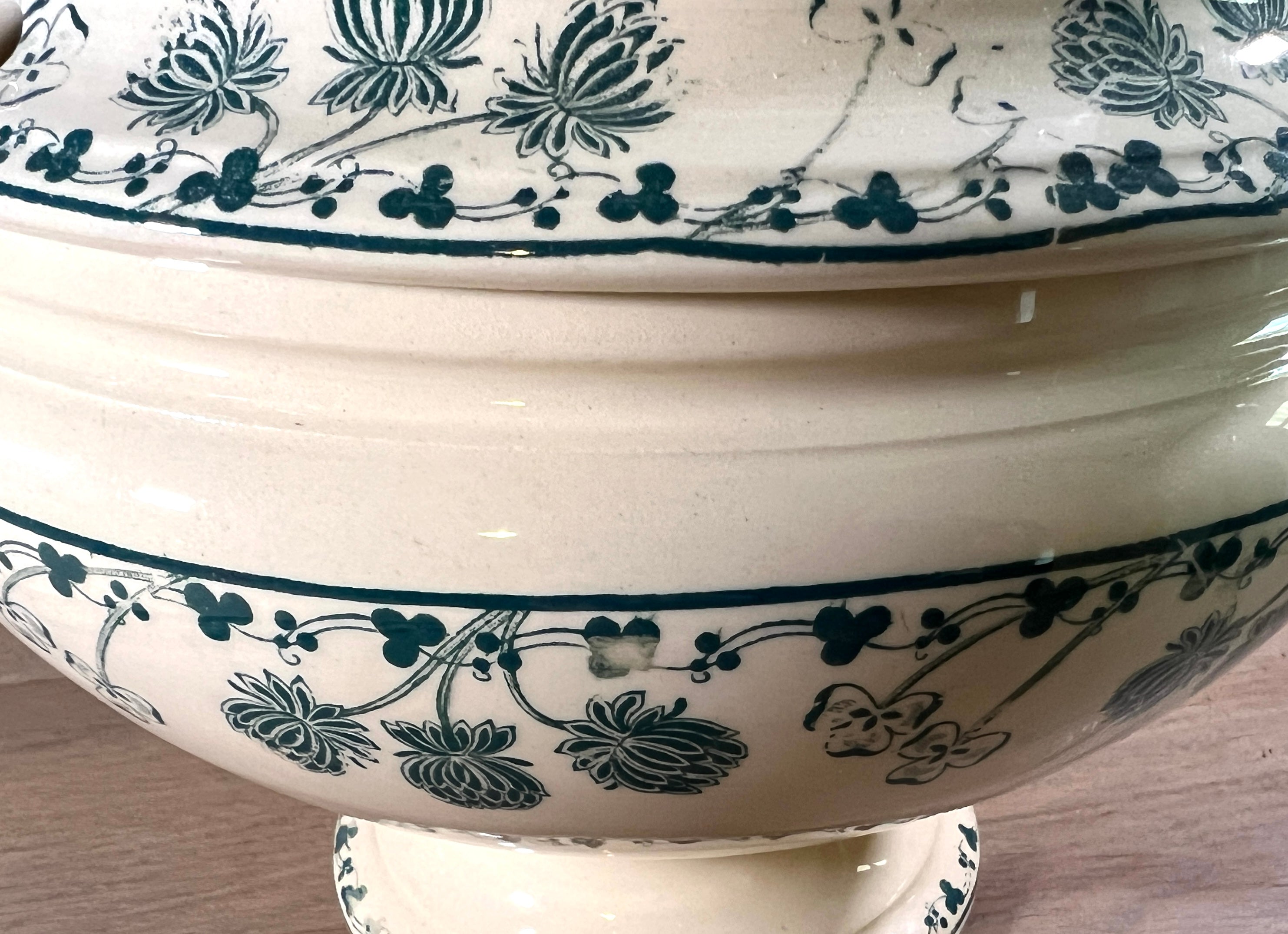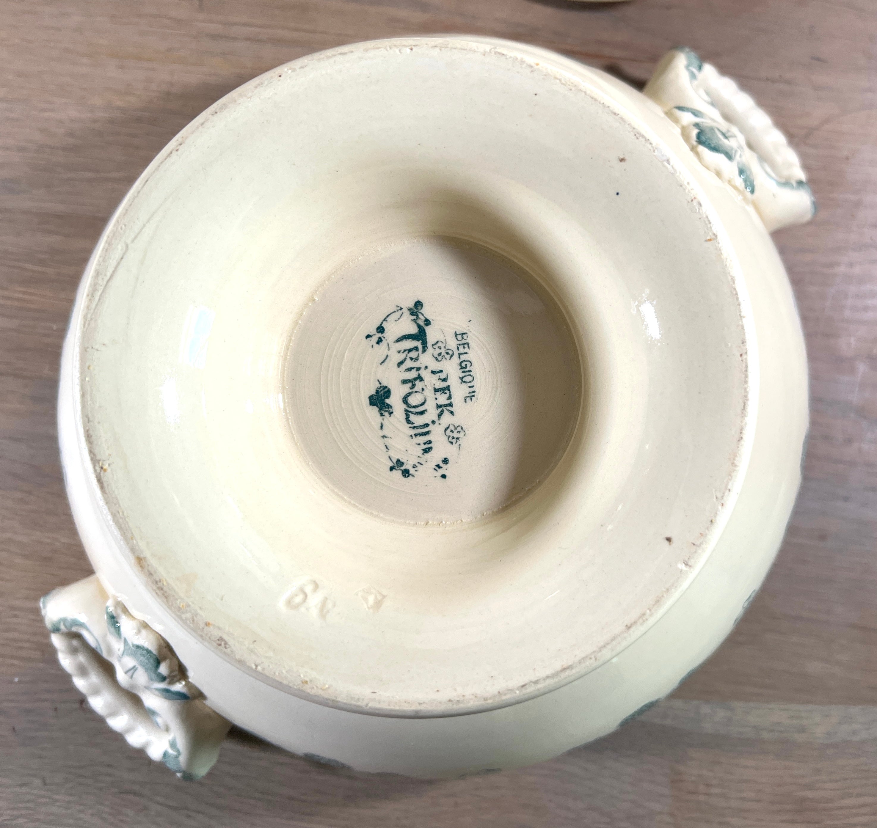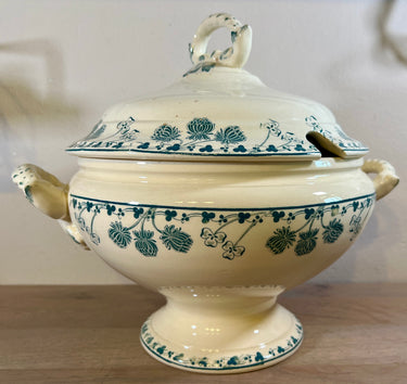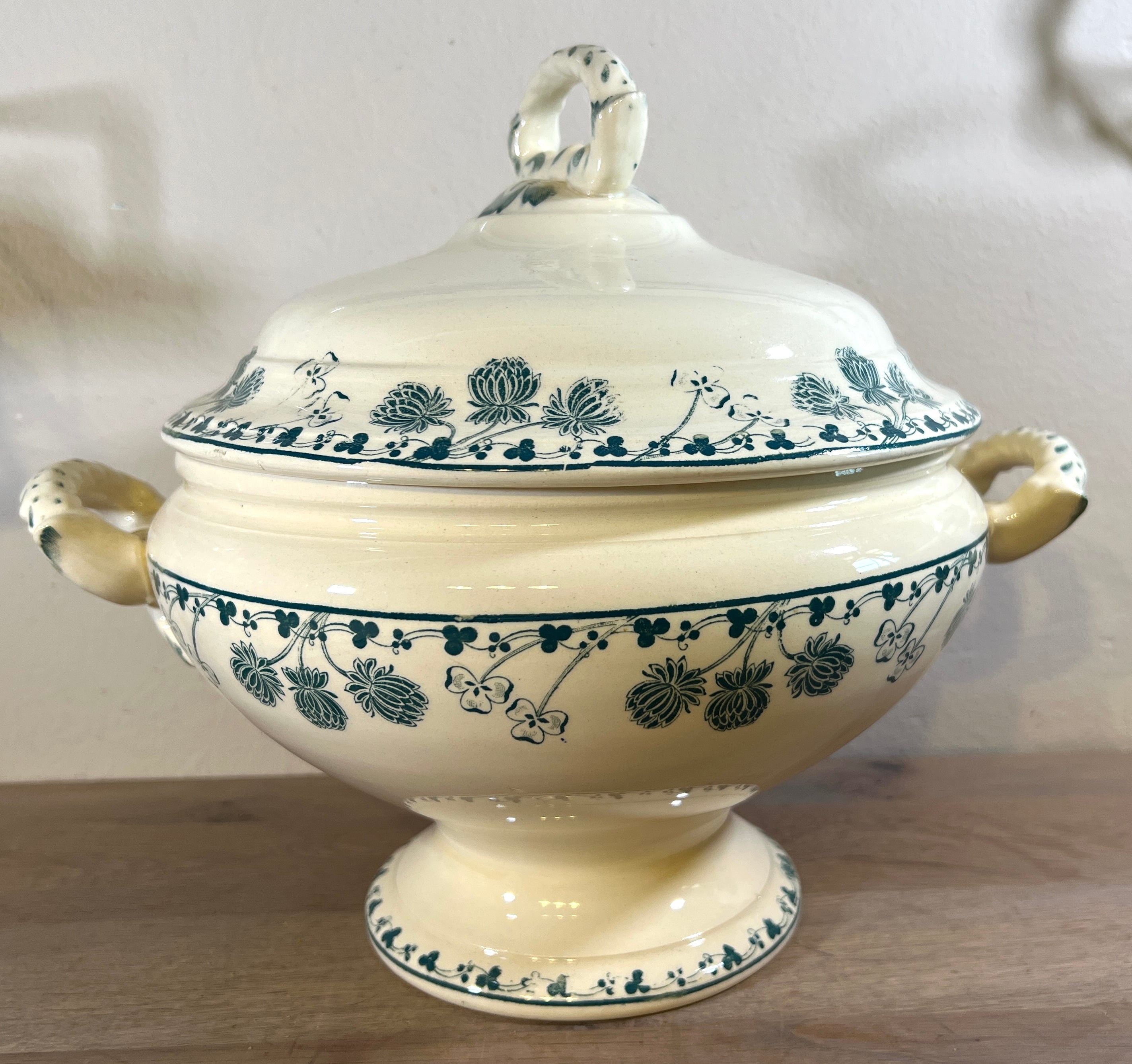 Soepterrine / Terrine - B.F.K. (Boch Frères Keramis) - décor TRIFOLIUM uitgevoerd in groene kleur