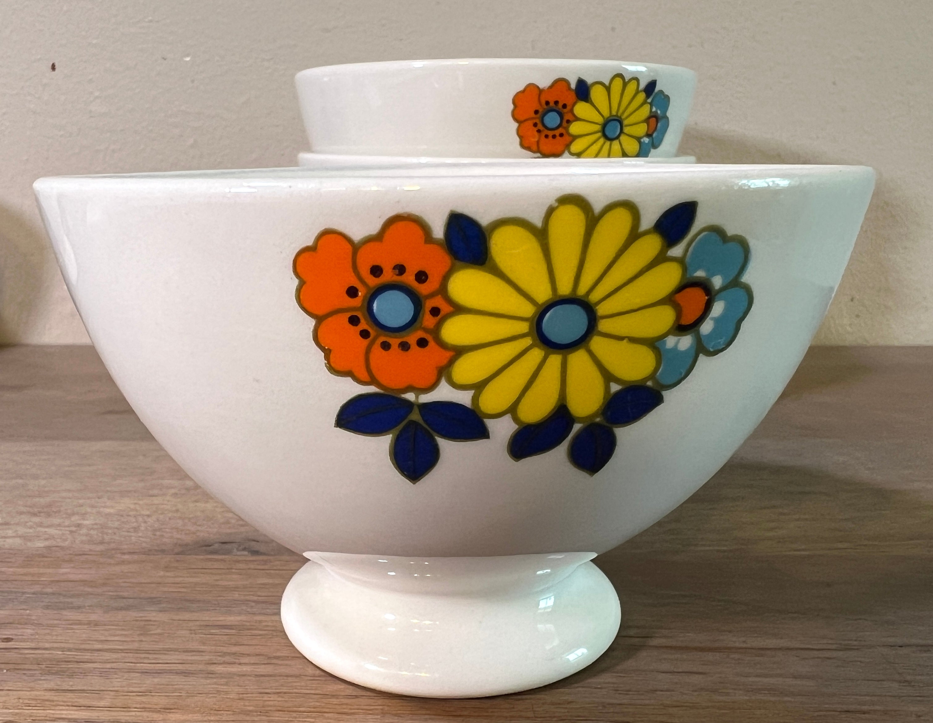 Spoelkom / Kom - ongemerkt maar Boch - gedecoreerd met oranje/gele/blauwe bloemen - 1970s - blindmerk Ø