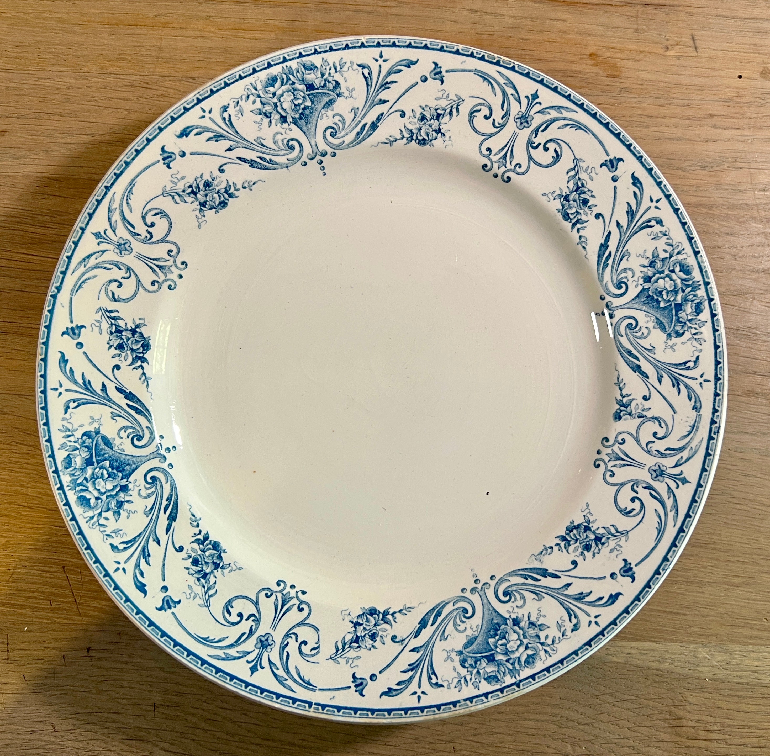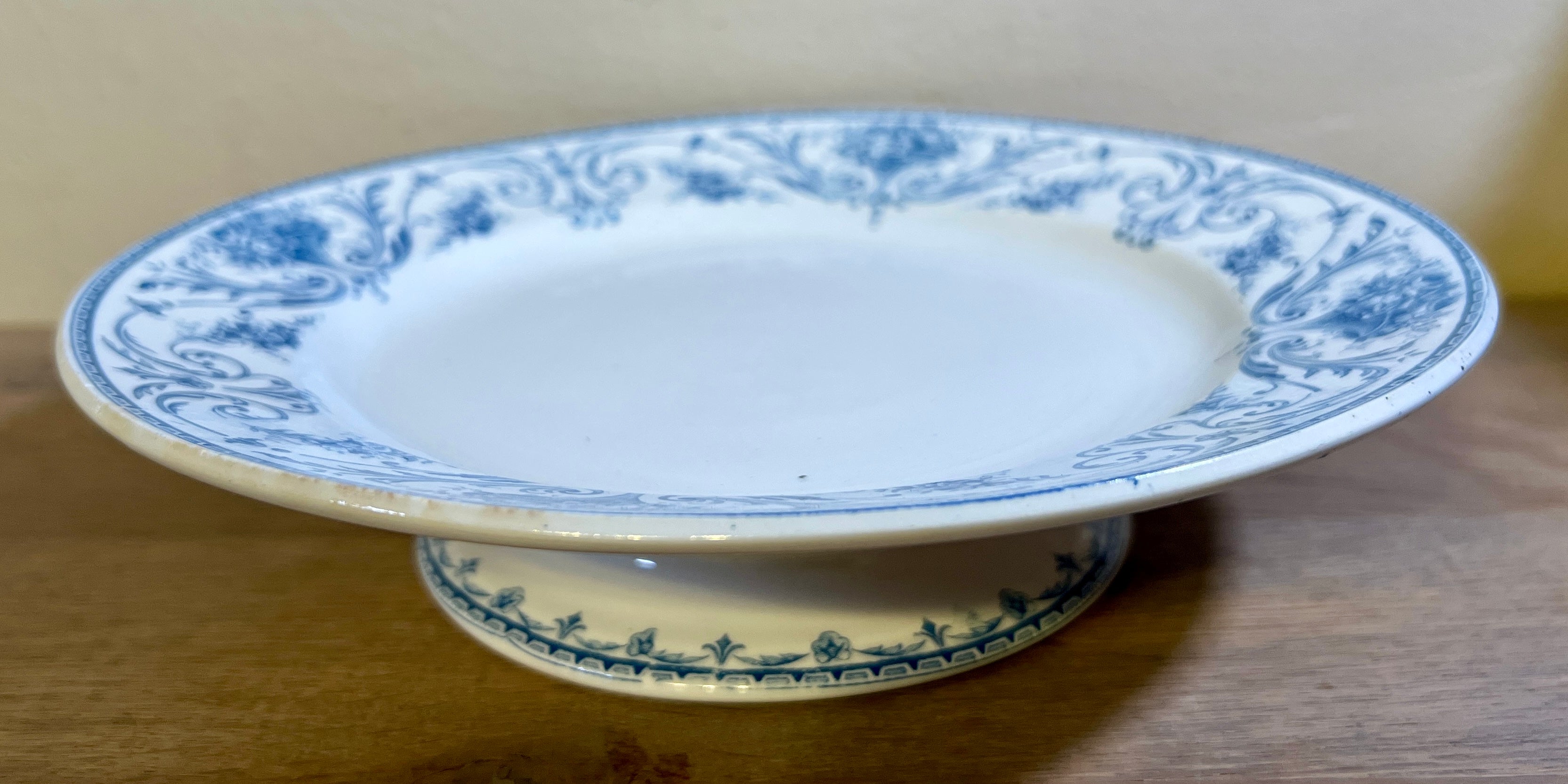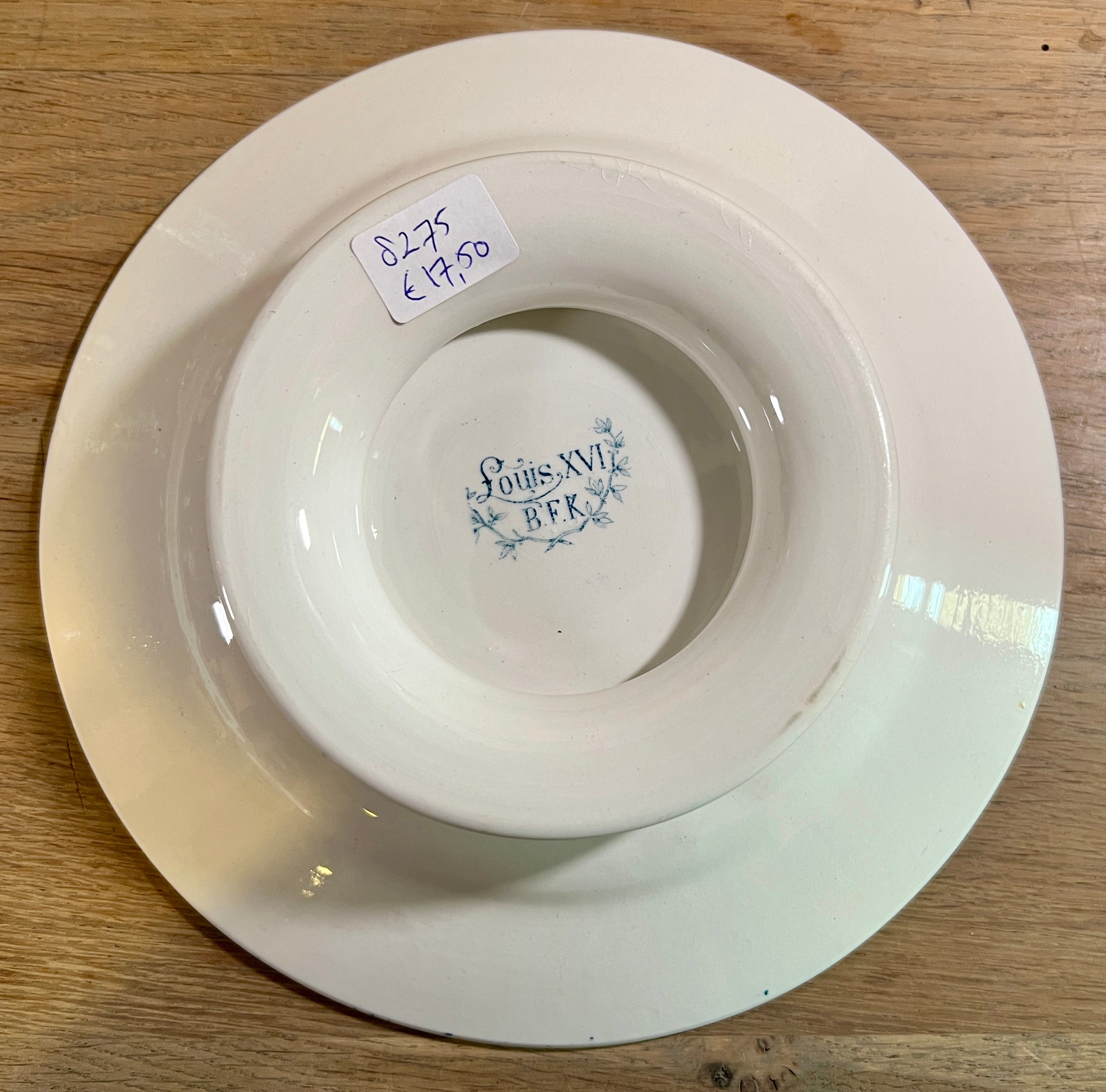Tazza / Presenteerschaal - op lage voet - Boch / B.F.K - décor LOUIS XVI uitgevoerd in blauw/grijze kleur - gemaakt tussen 1880 en 1910