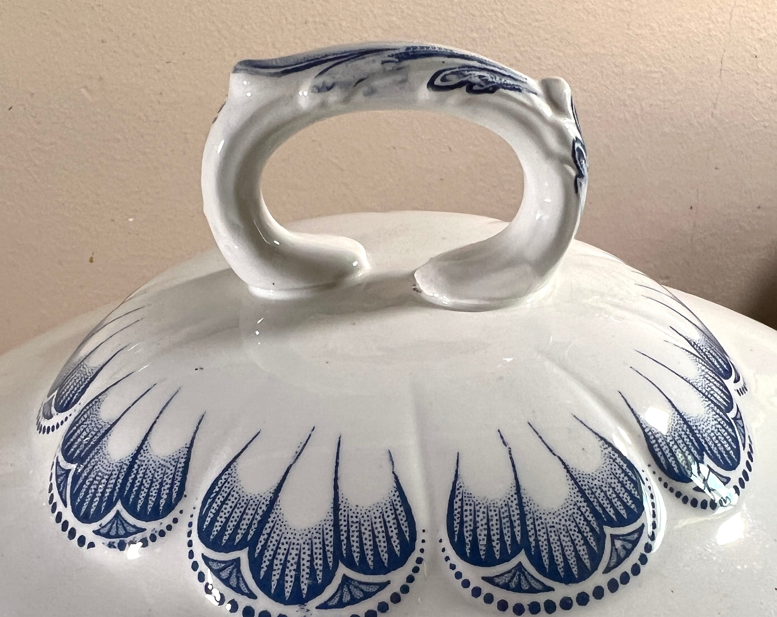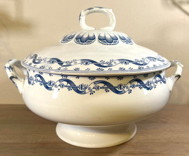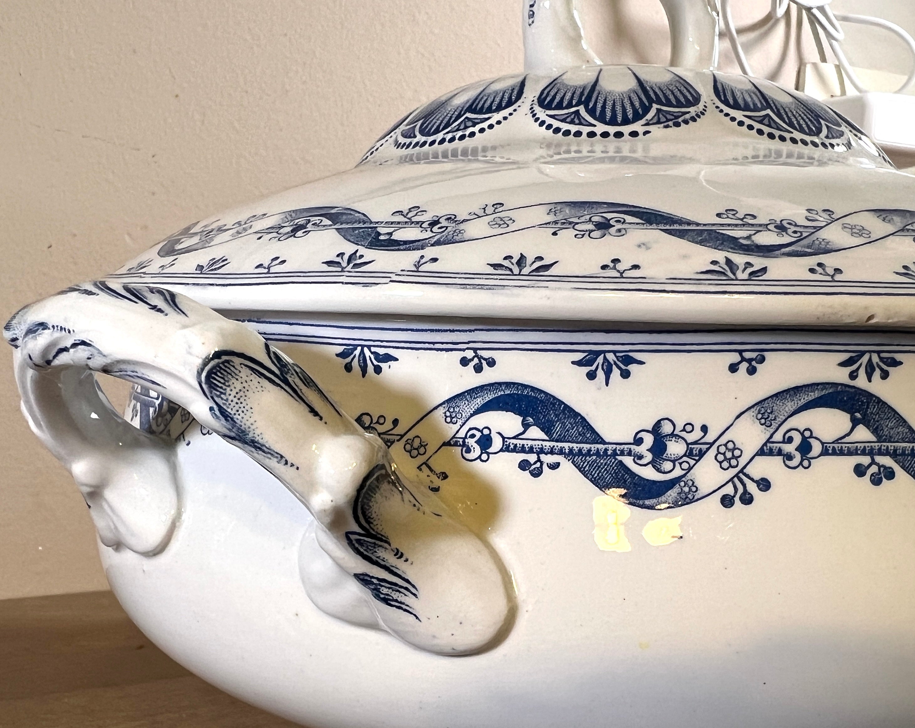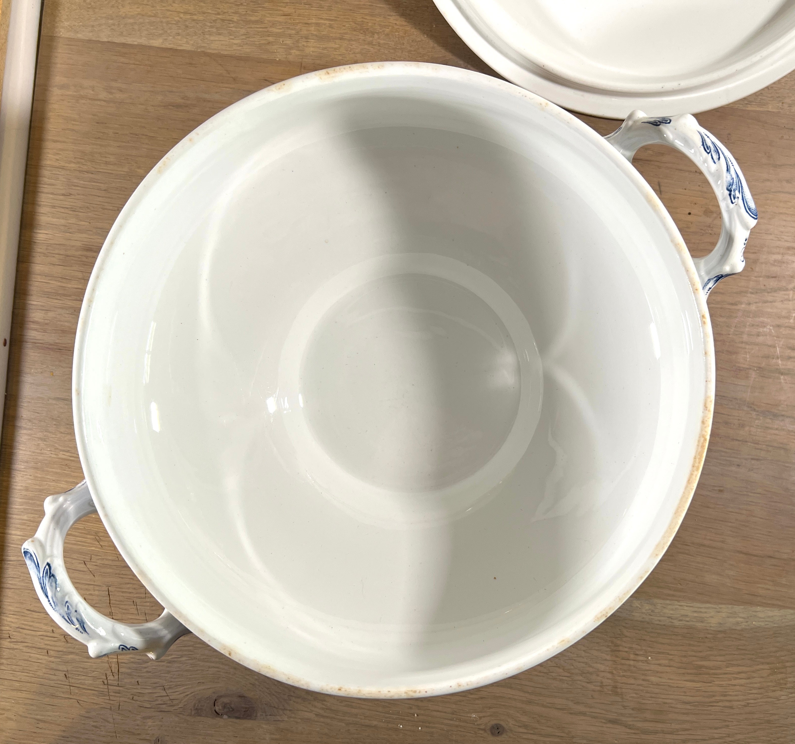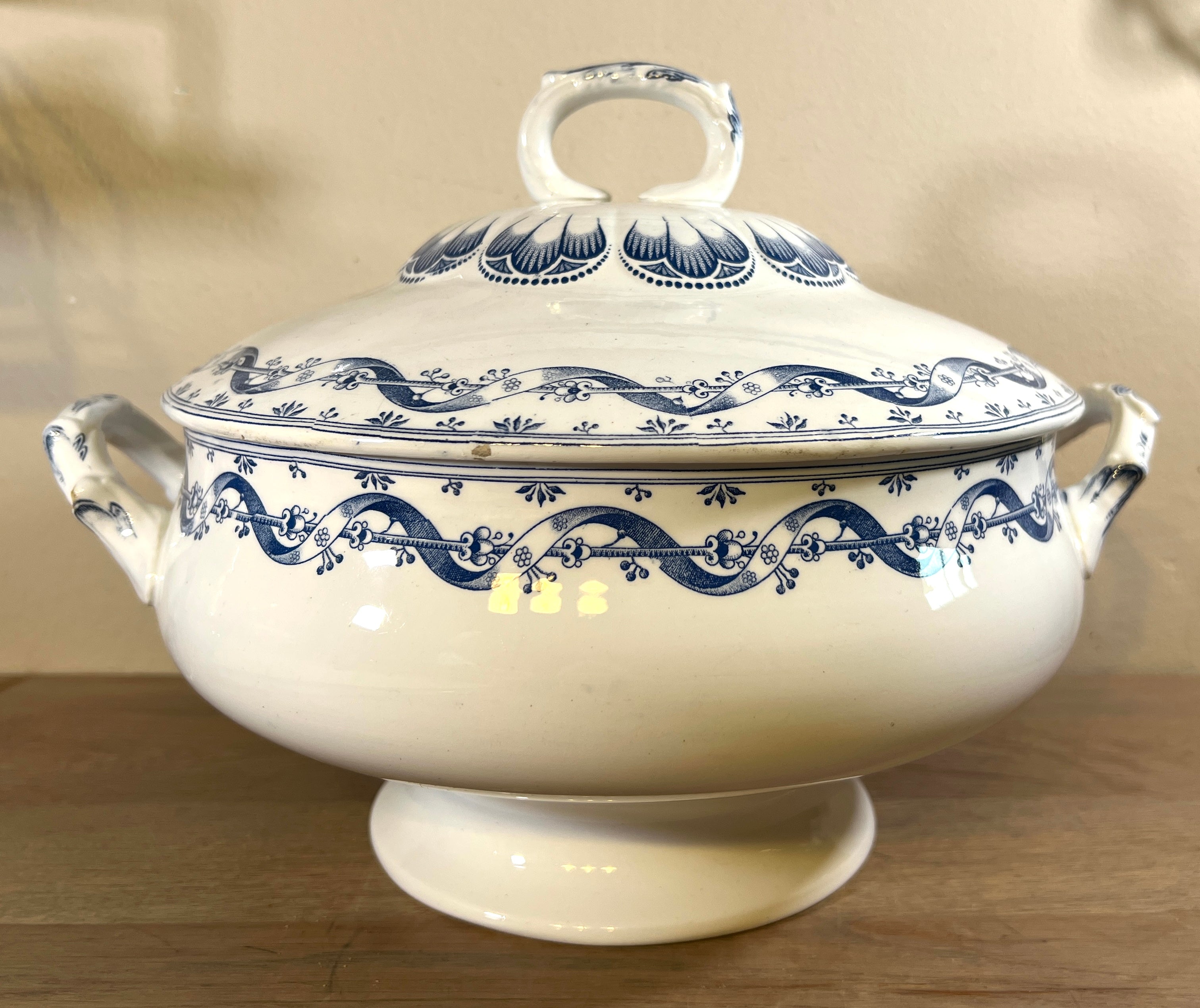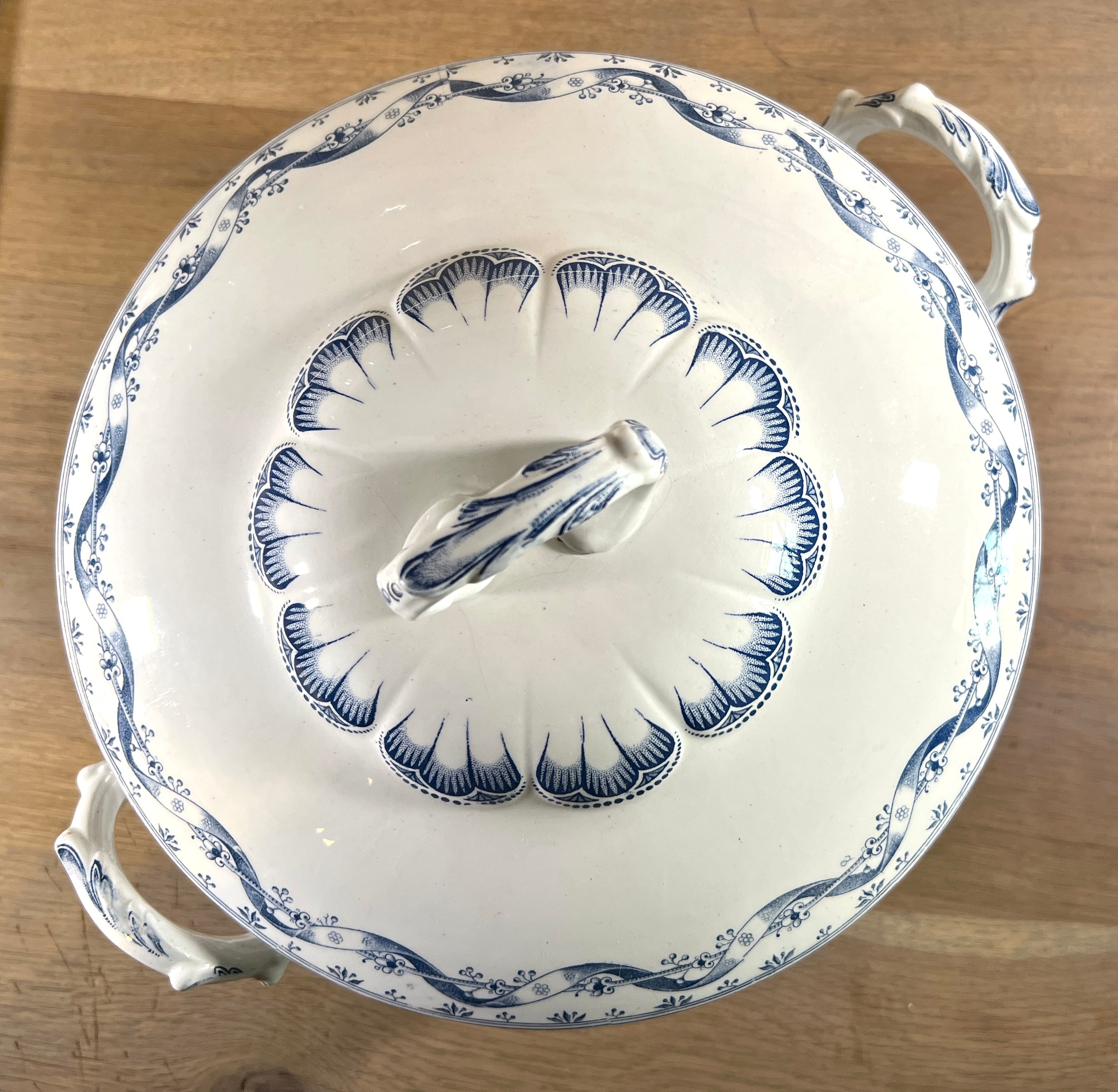 Terrine / Dekschaal - groot model - Boch - décor RUBAN uitgevoerd in blauw