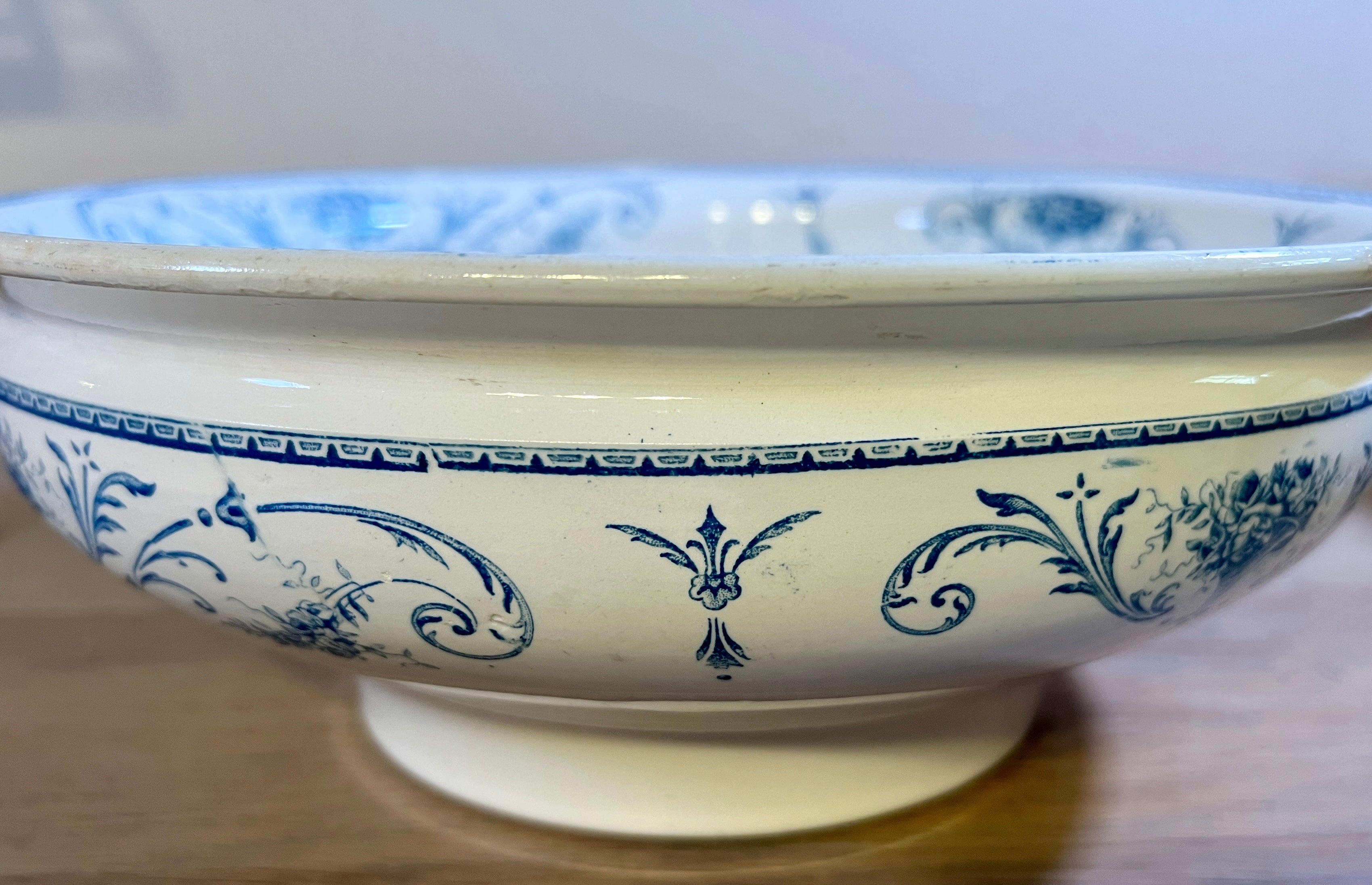 Saladeschaal / Aardappelschaal - Boch / B.F.K - décor LOUIS XVI uitgevoerd in blauw/grijze kleur - gemaakt tussen 1880 en 1910