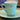 Kop en schotel - ongemerkt - groen met goudkleurige sterretjes en een goudkleurig lijntje in het kopje.