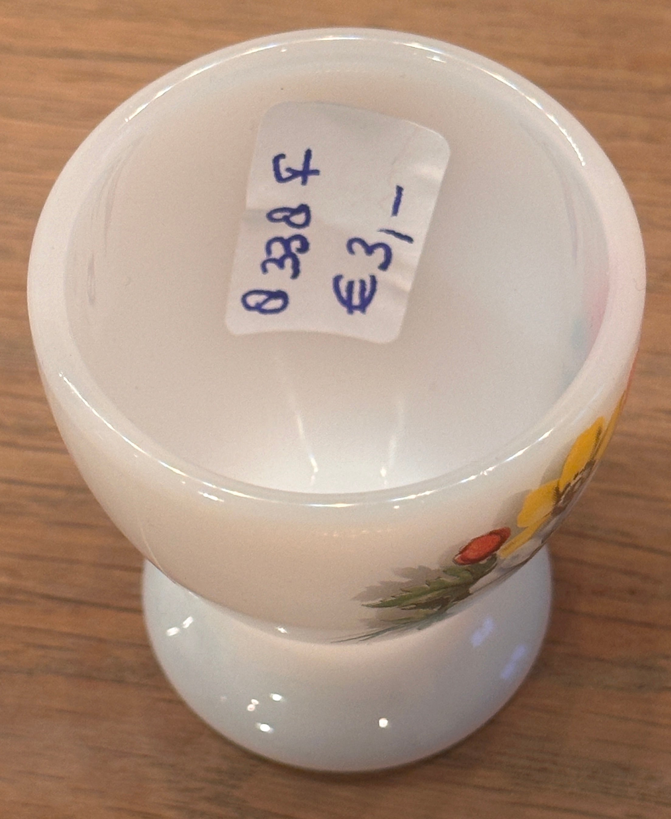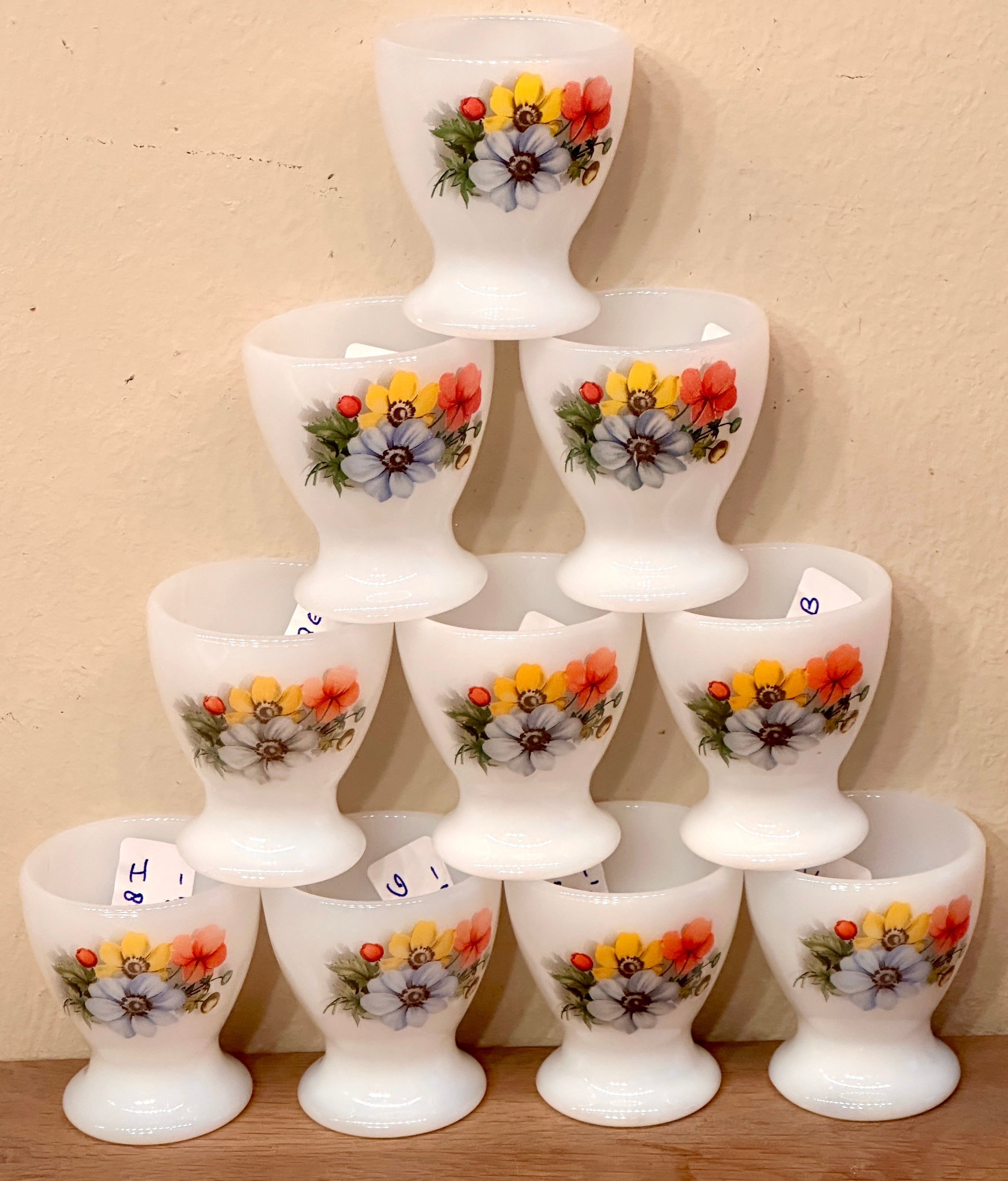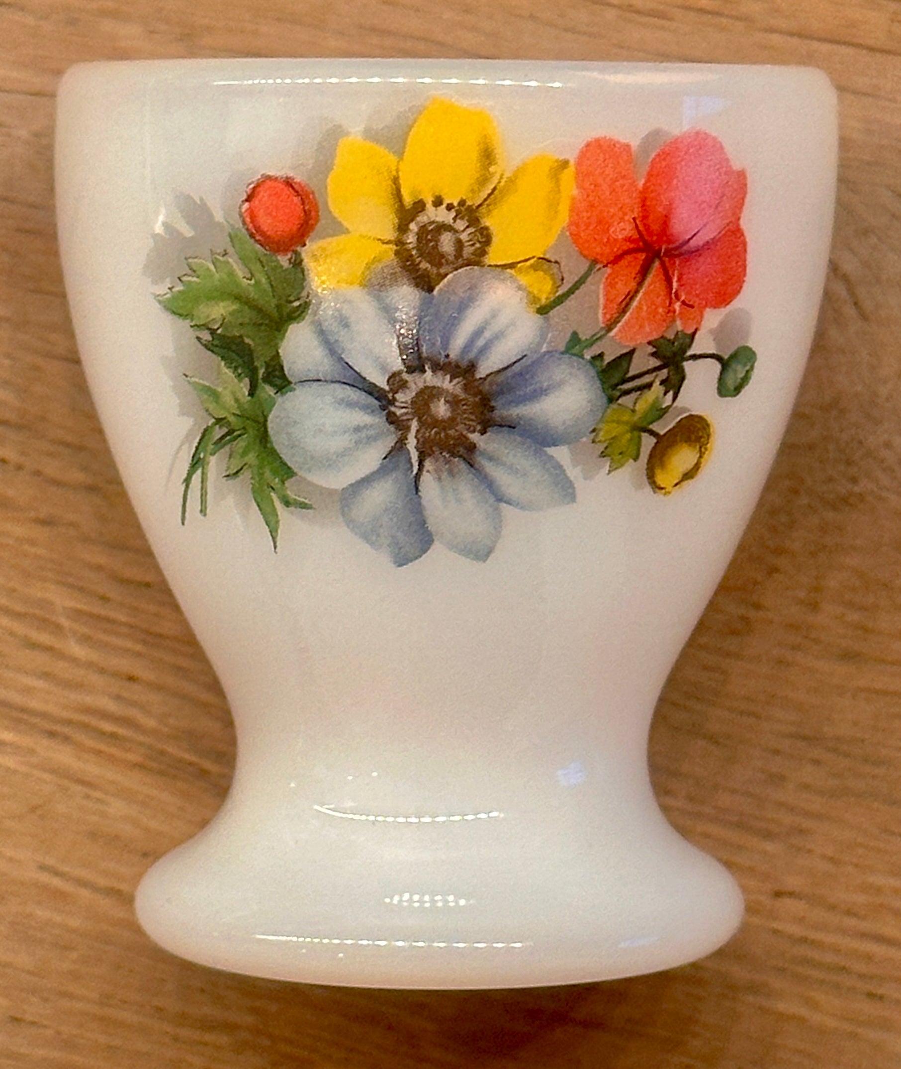 Eierdop - Arcopal - model ANÈMONES met décor van anemonen in geel, oranje en violet