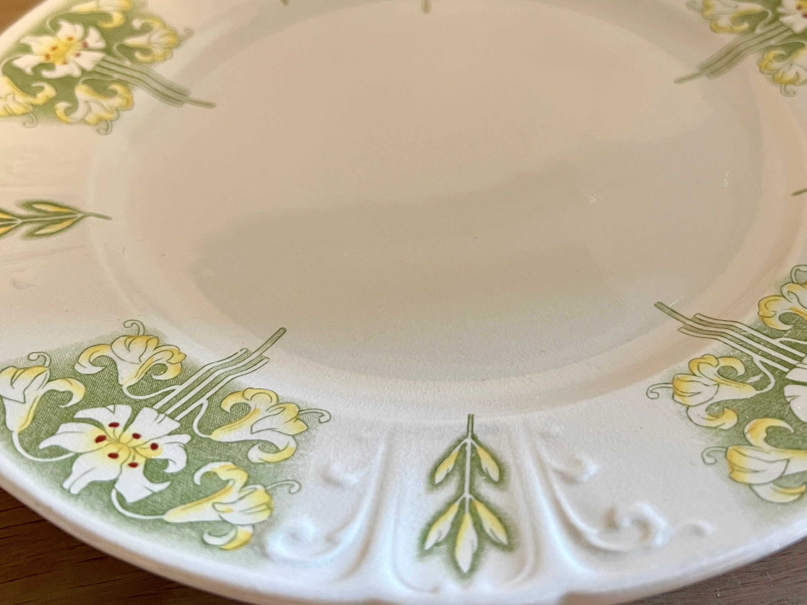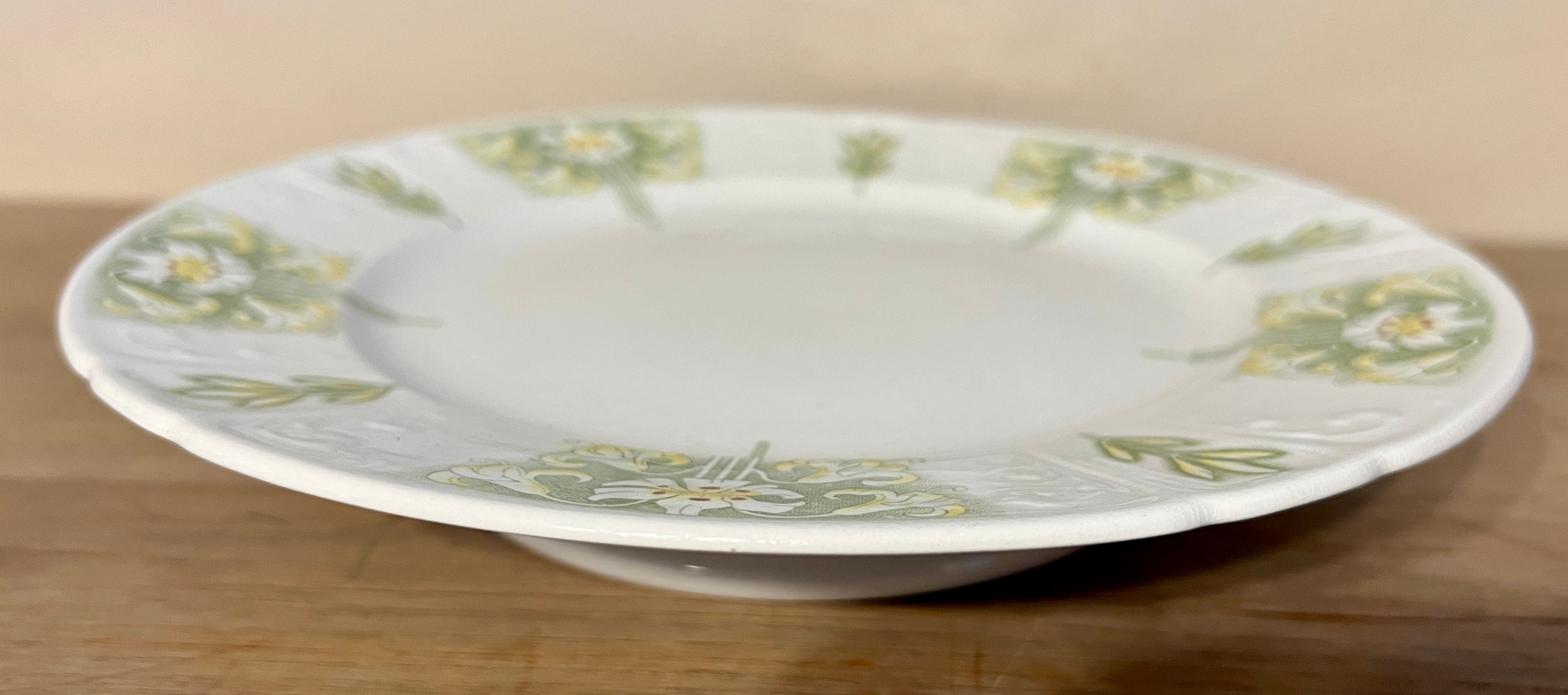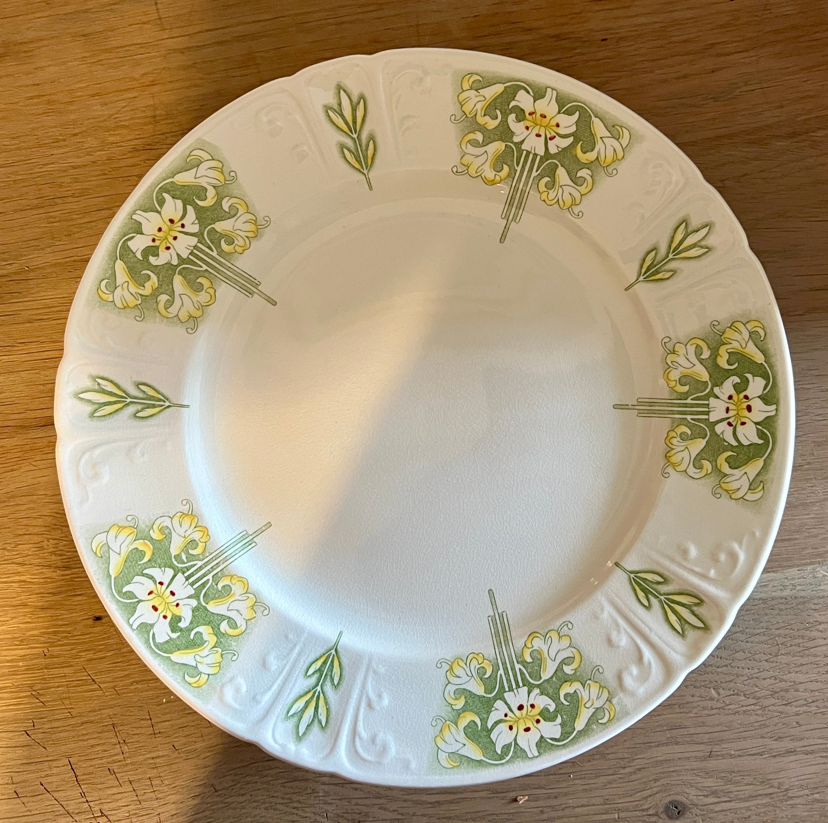 Tazza / Presenteerschaal - op lage voet - U&C Sarreguemines - décor LYS uitgevoerd in groen met gele kleur - Art Nouveau