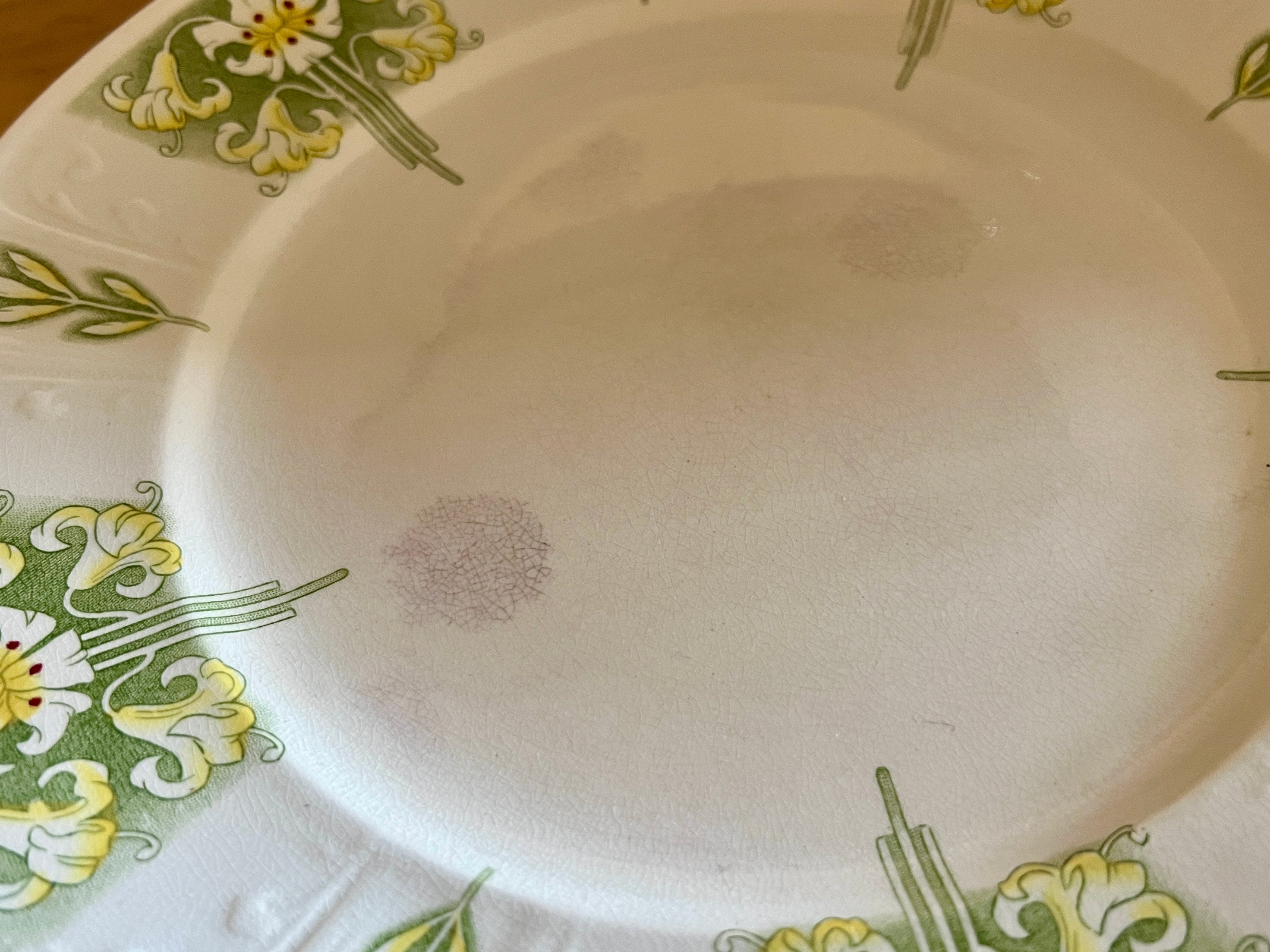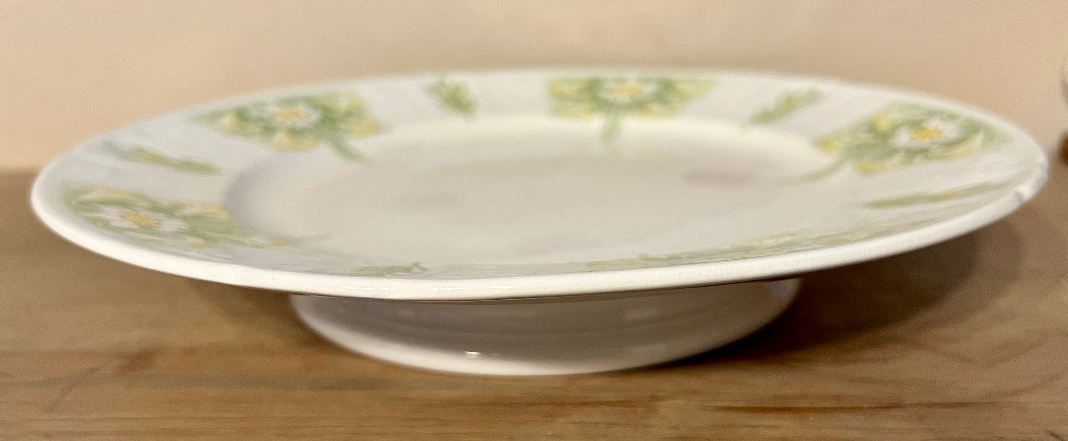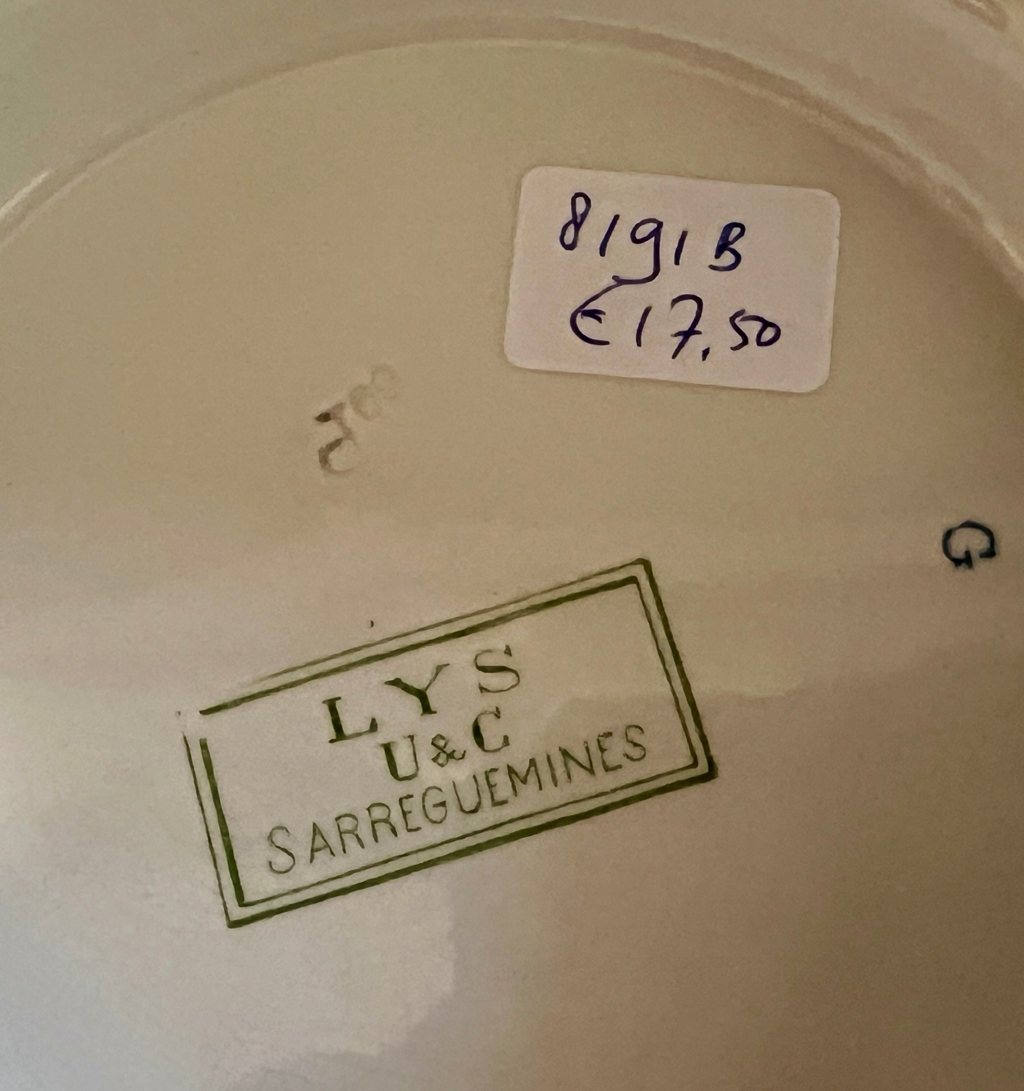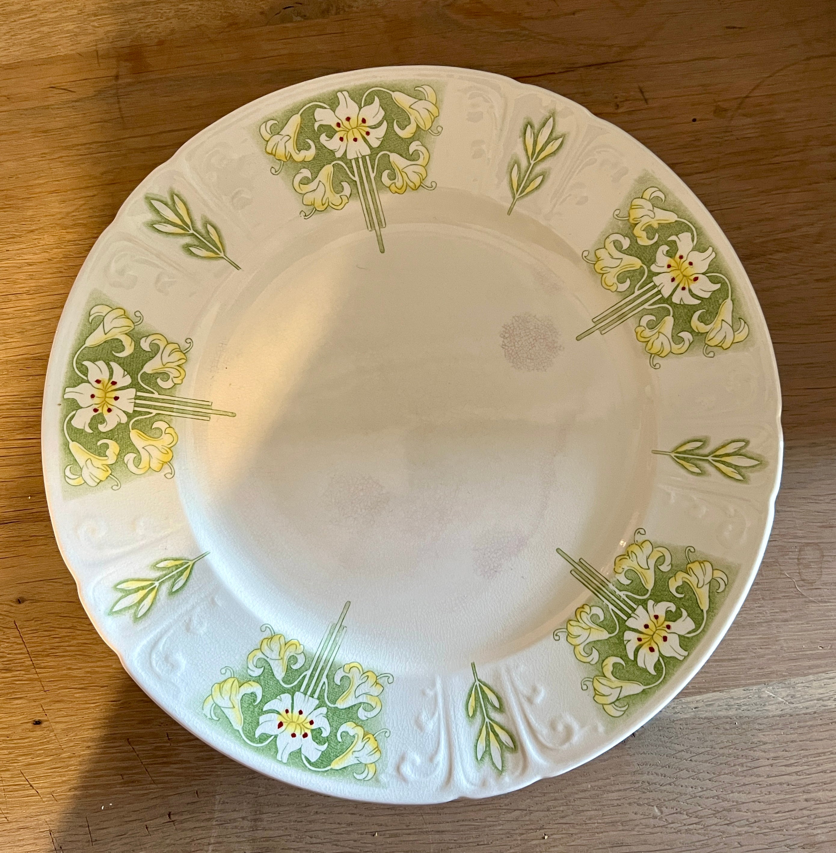 Tazza / Presenteerschaal - op lage voet - U&C Sarreguemines - décor LYS uitgevoerd in groen met gele kleur - Art Nouveau