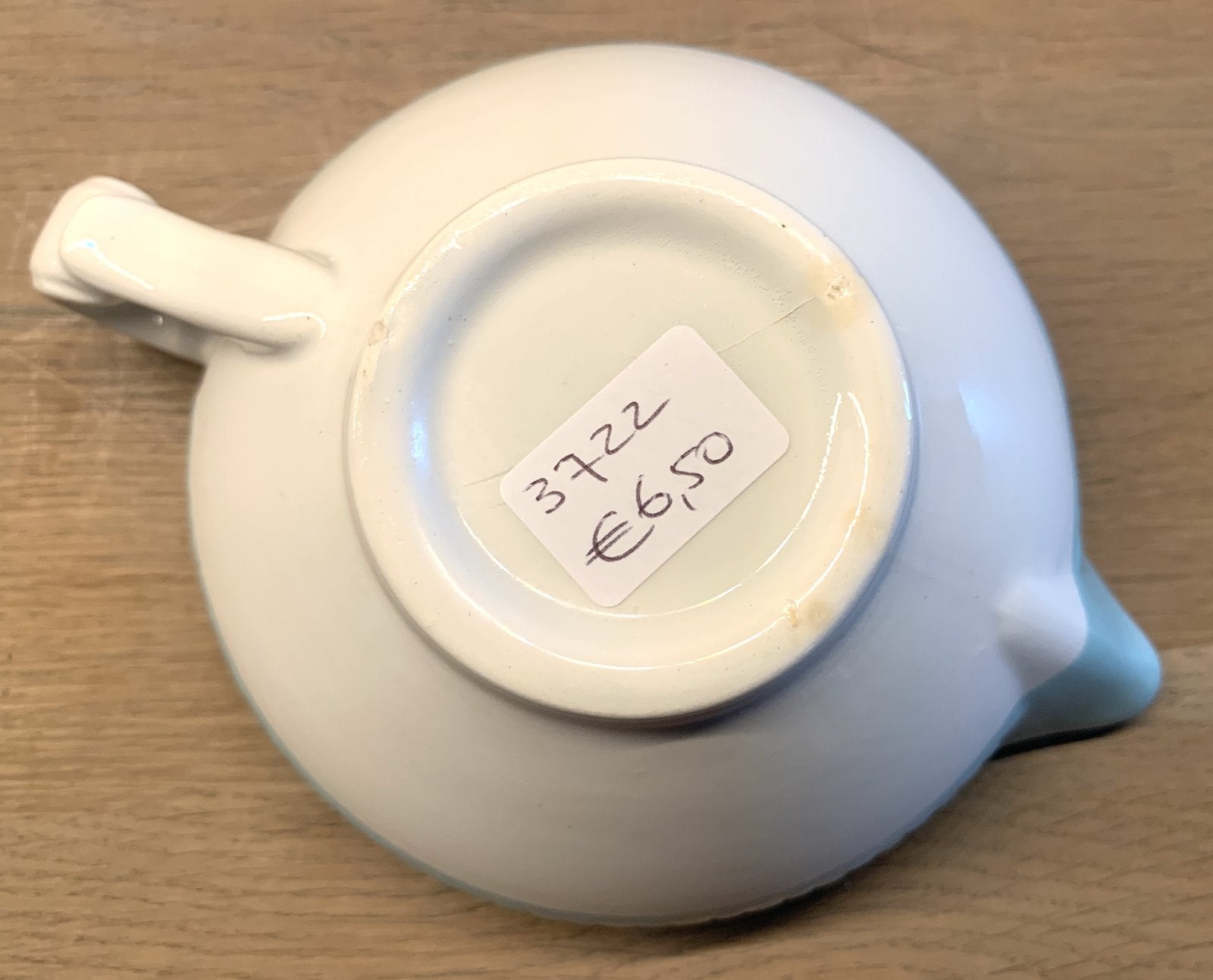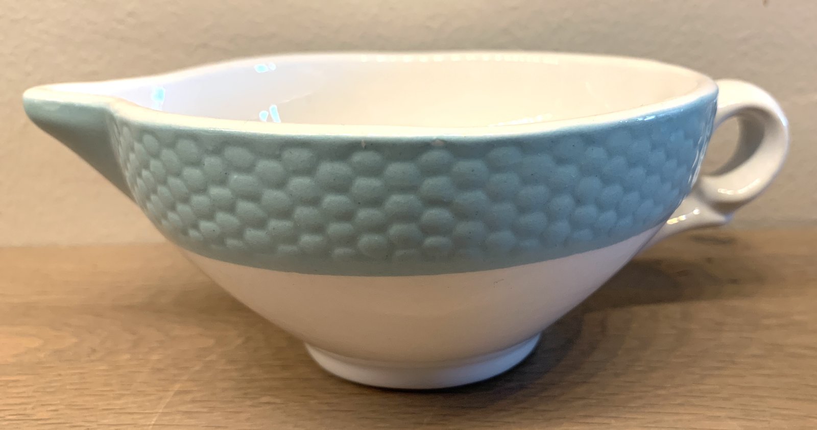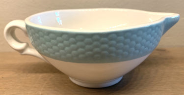 Juskom / Sauciére - ongemerkt (waarschijnlijk Frans) - azuurblauw met een soort bijenkorfreliëf.