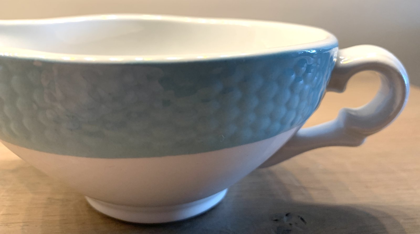 Juskom / Sauciére - ongemerkt (waarschijnlijk Frans) - azuurblauw met een soort bijenkorfreliëf