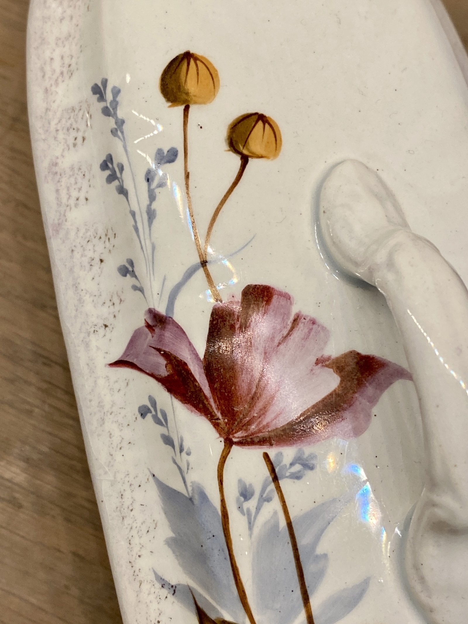 Kammenbakje / borstelbakje - met twee luchtgaten - ongemerkt - met handgeschilderde bloemen in herfstkleuren