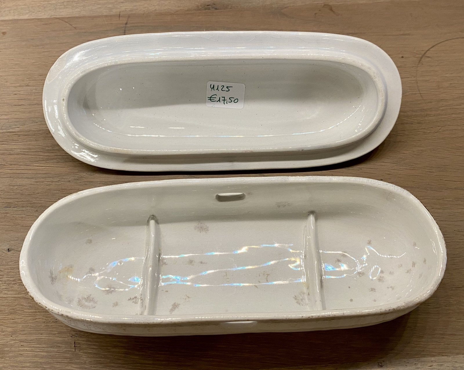 In goede staat met grijzige vlekjes aan de binnenkant van de bak.