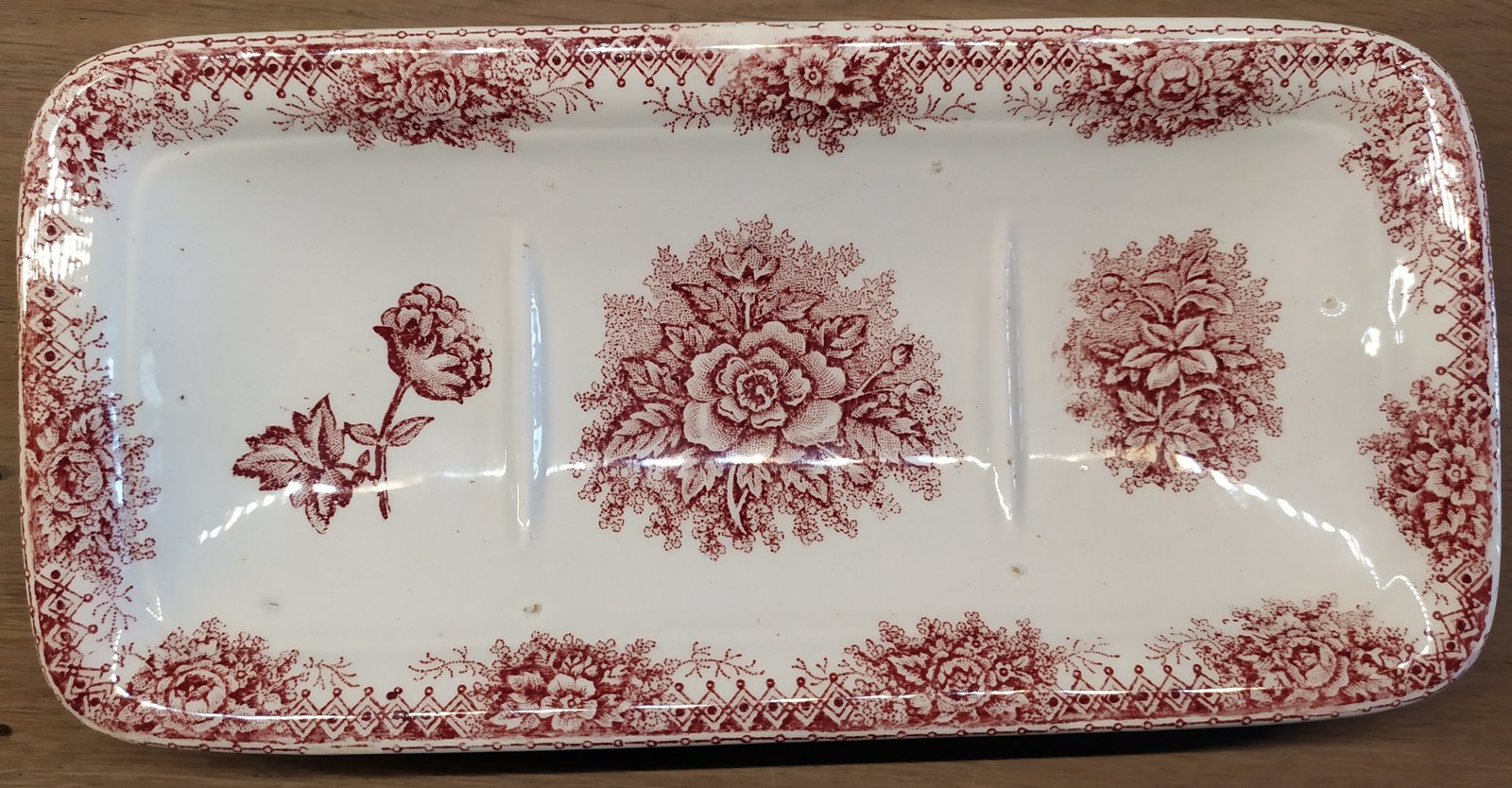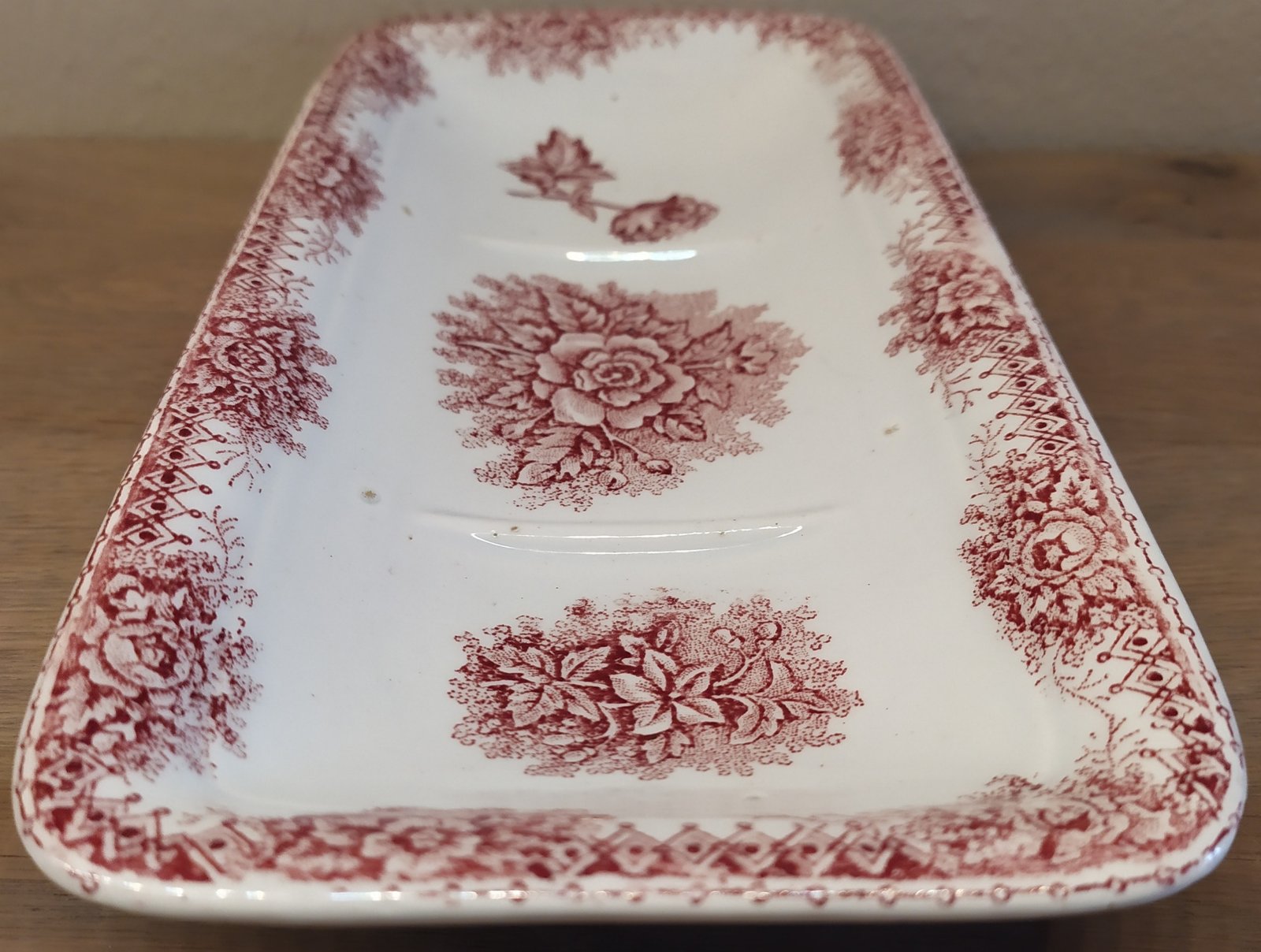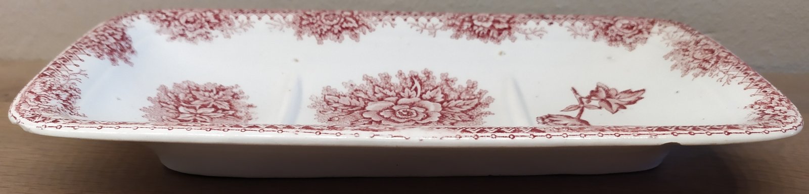 Kammenbakje - ongemerkt - rood transferdecor van bloemen.