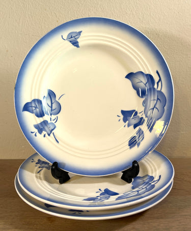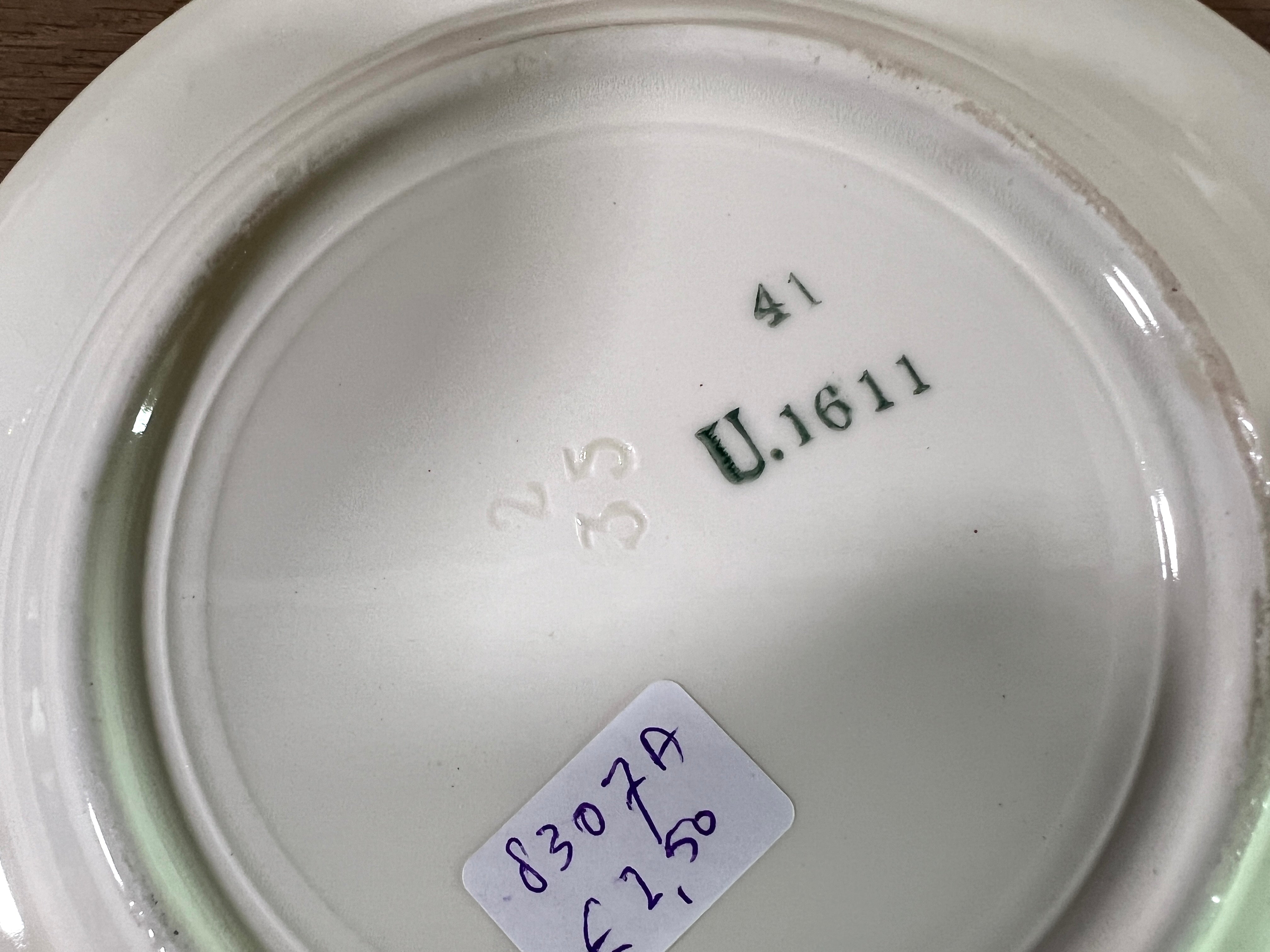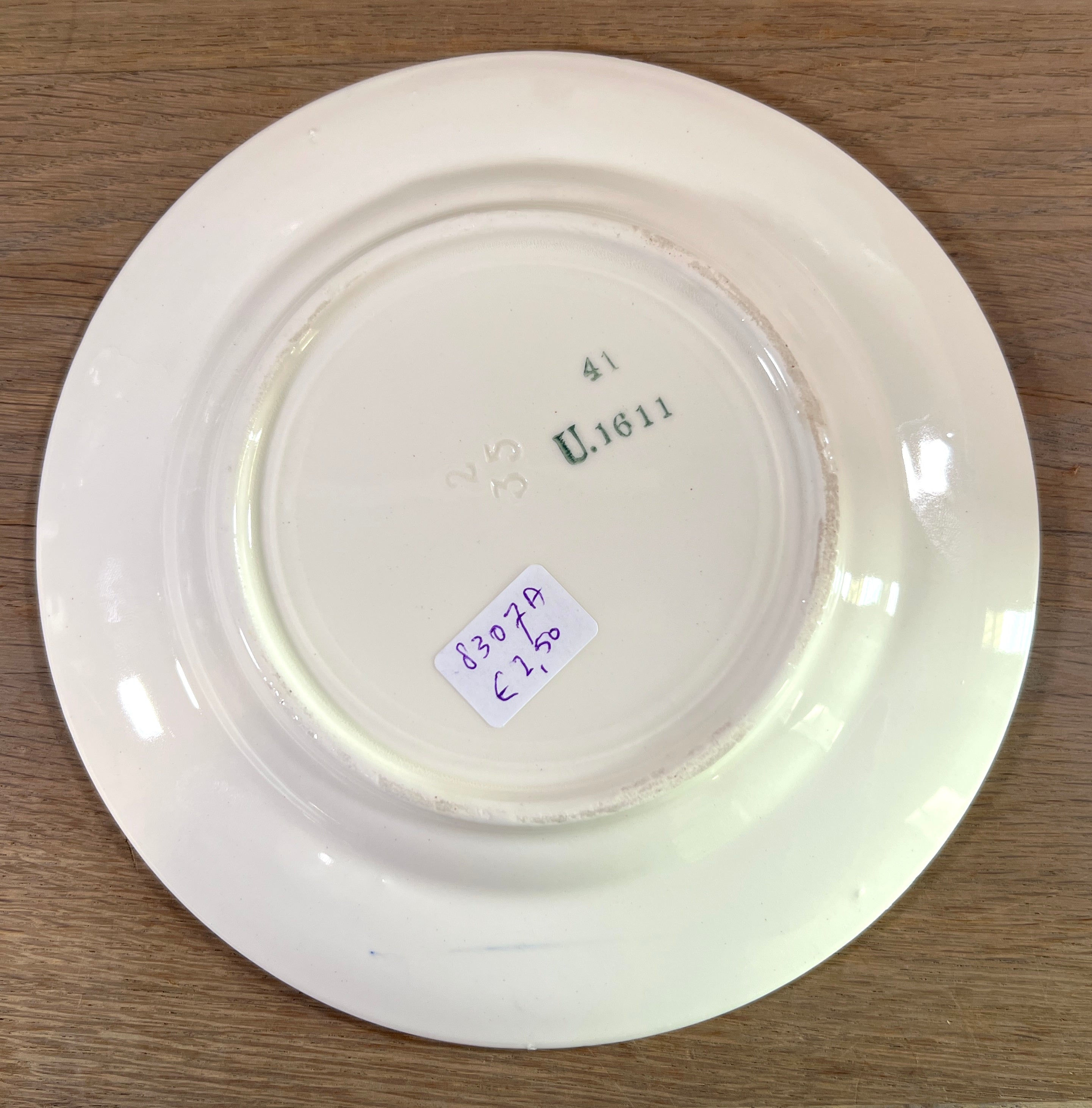 Ontbijtbord / Dessertbord - ongemerkt (alleen nummers) - décor in blauw met bladeren en bloemen