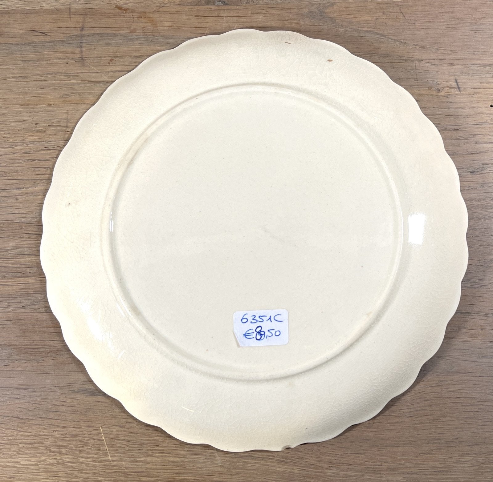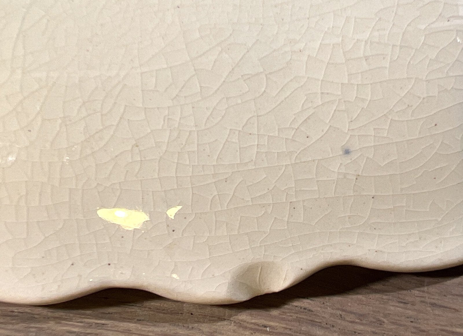 In goede, gave, staat met voornamelijk ouderdomscraquelé, soms wat bruinige vlekken en een geglazuurde bakfout aan de rand.