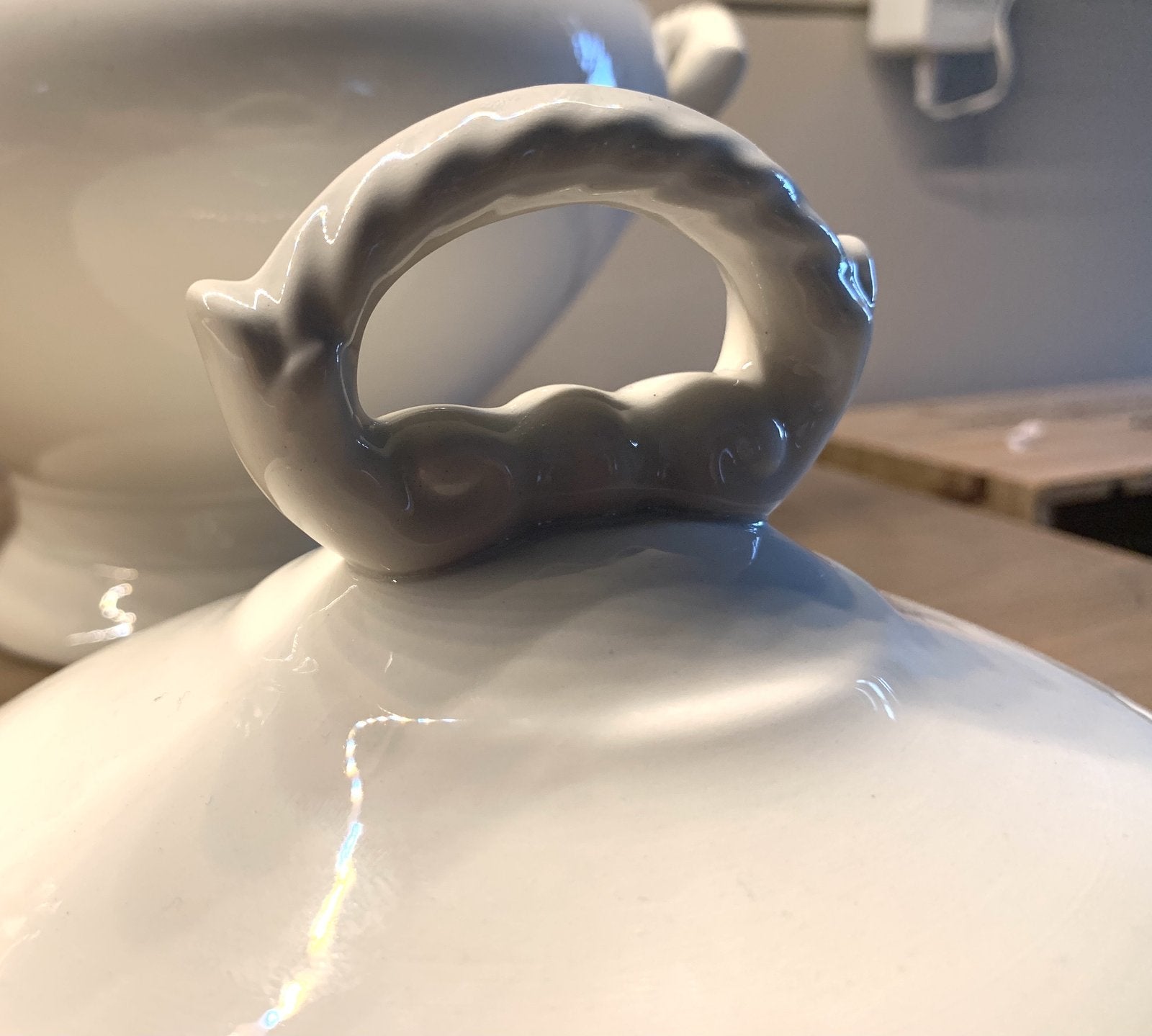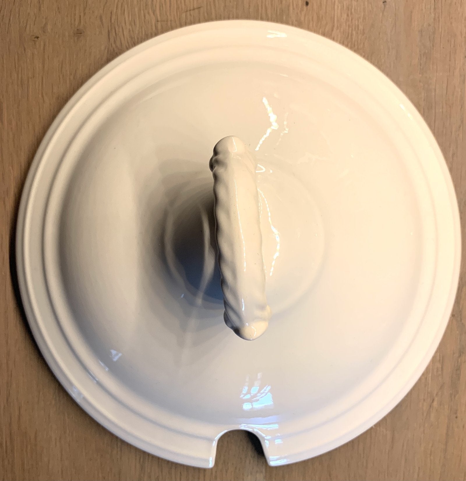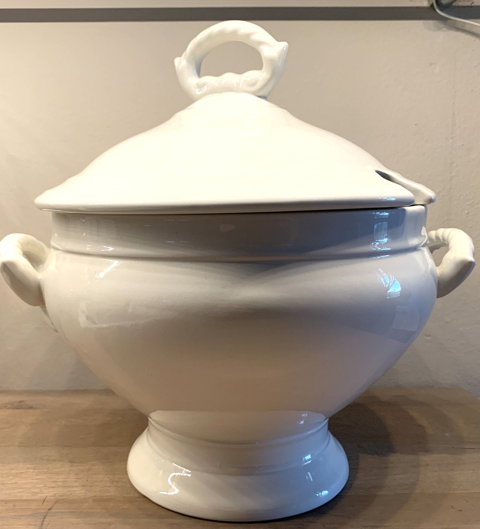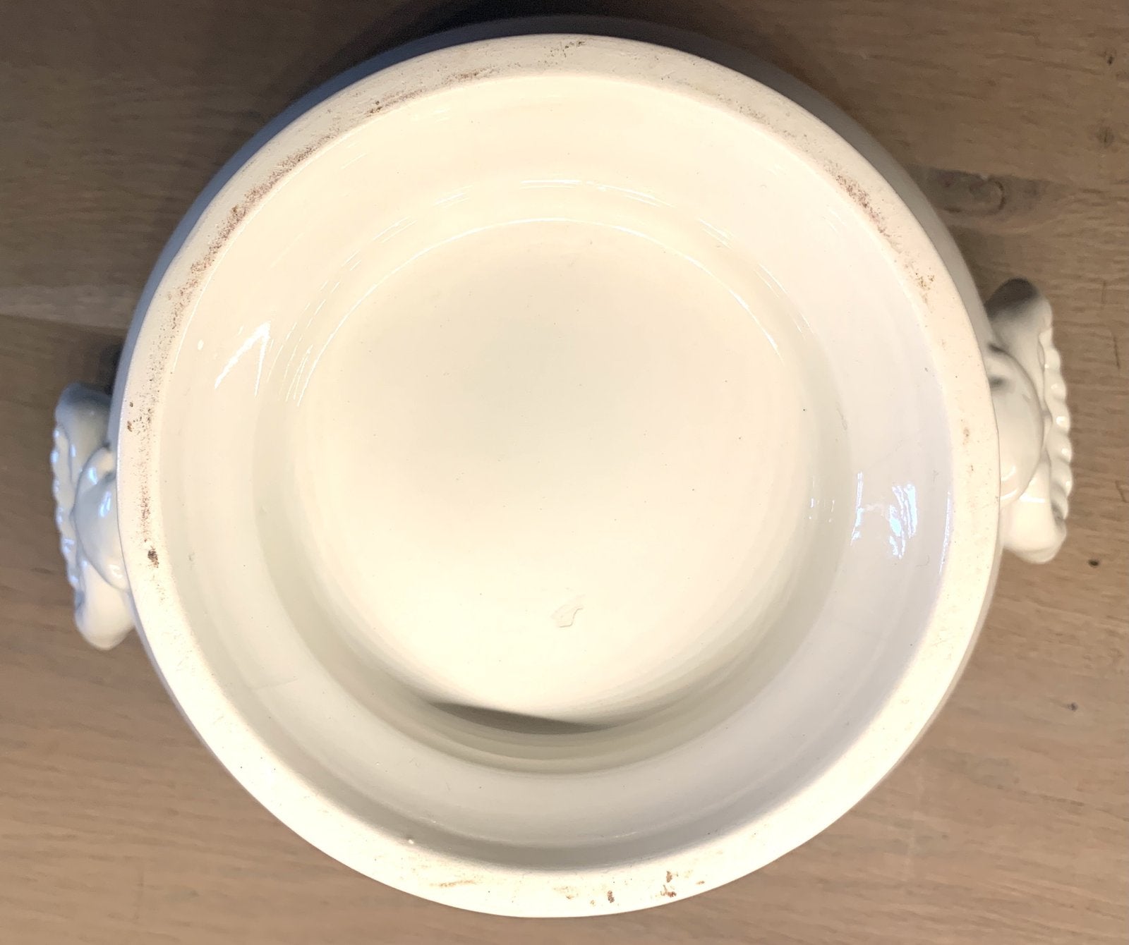 Dia. 22,5 cm., hoogte zonder deksel 17 cm.
