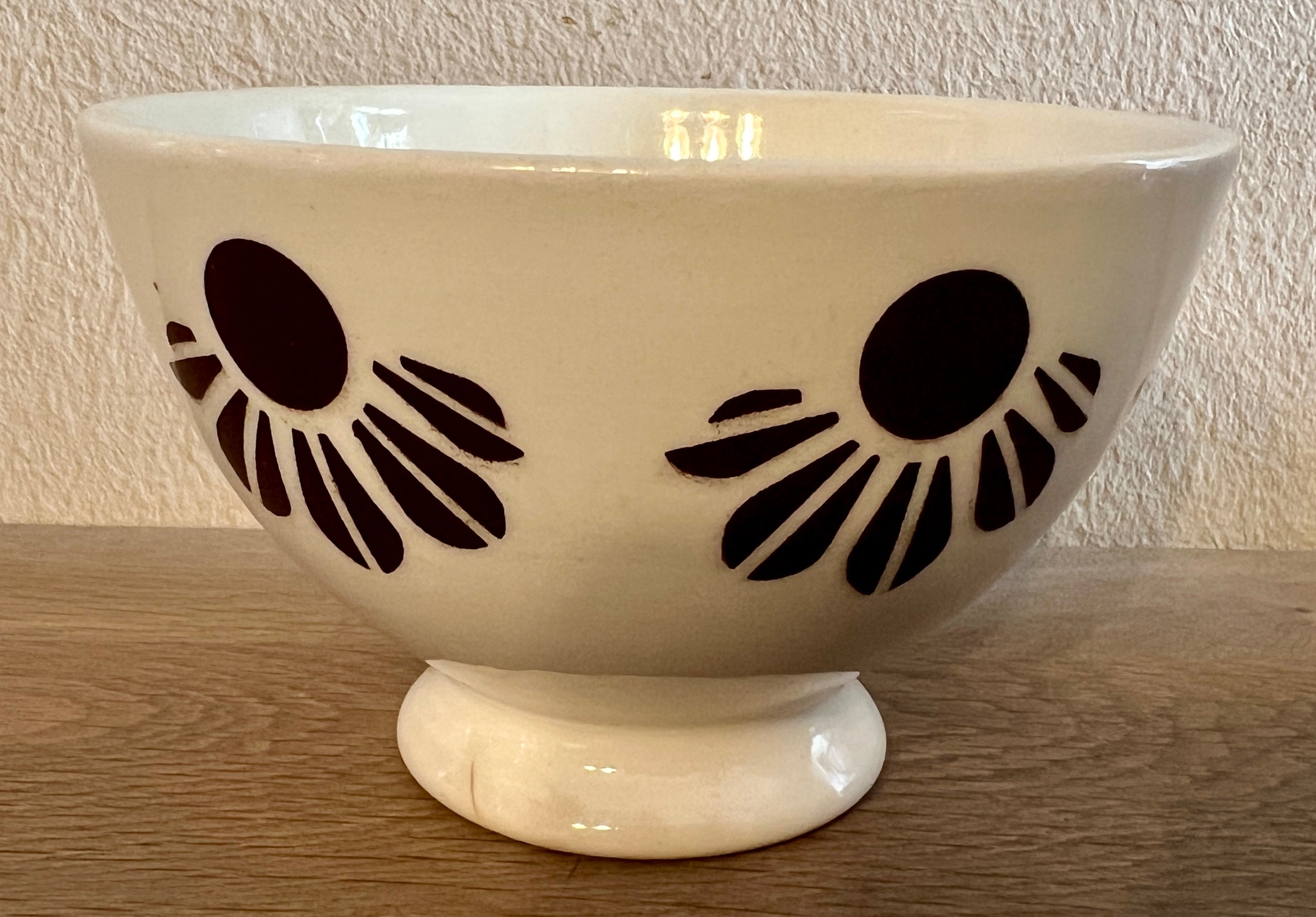 Spoelkom / Vingerkom - ongemerkt maar Boch - décor met een zon en zonnestralen uitgevoerd in bruin