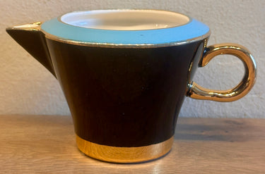 Melkkan - ongemerkt - uitgevoerd in zwart en azuurblauw met goudgekleurde biesjes