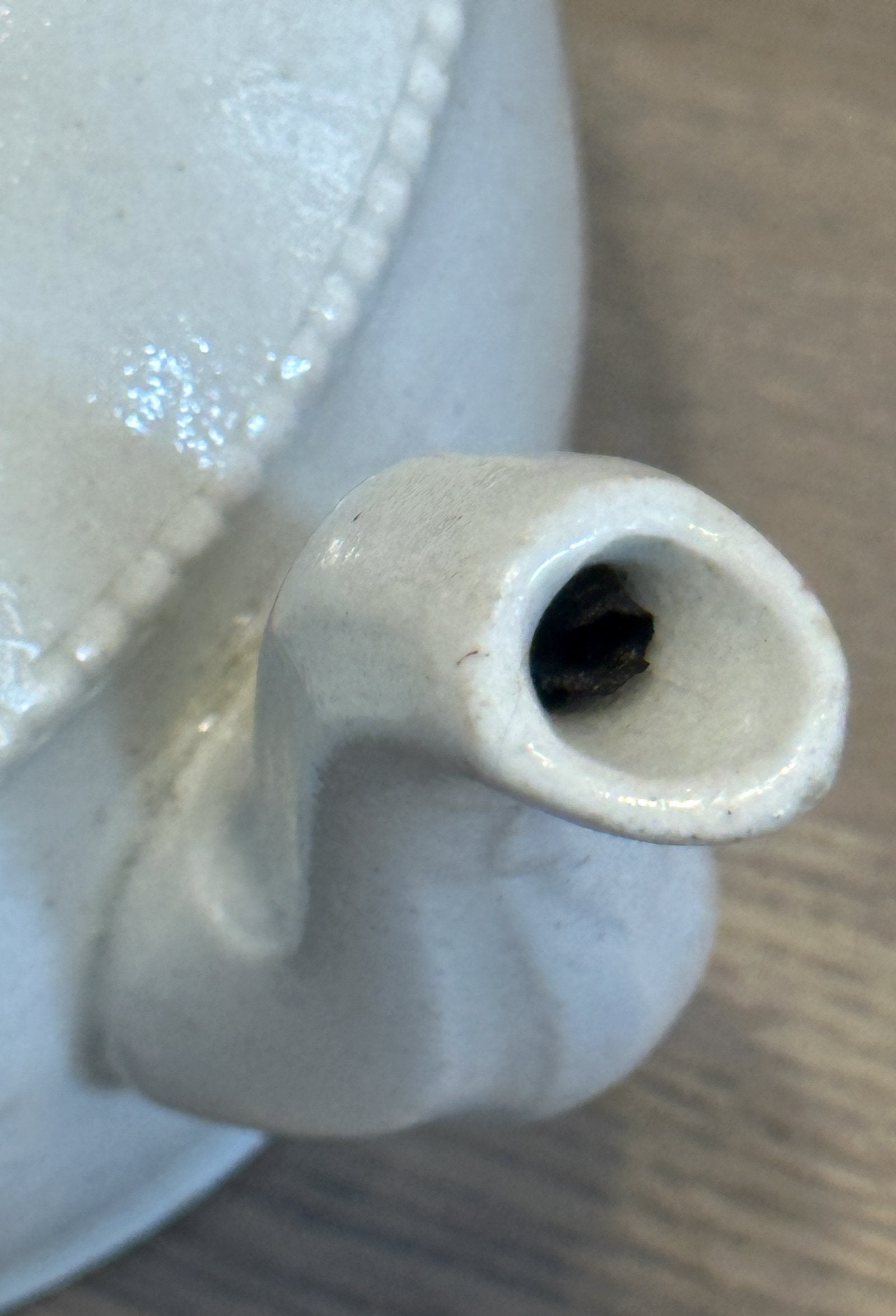 Theepotje - klein model - onleesbaar gemerkt - uitgevoerd in ruw aardewerk