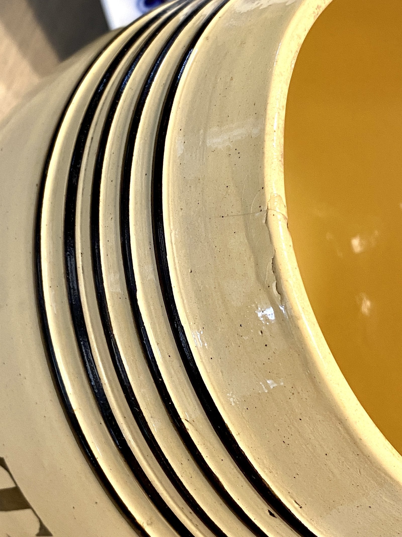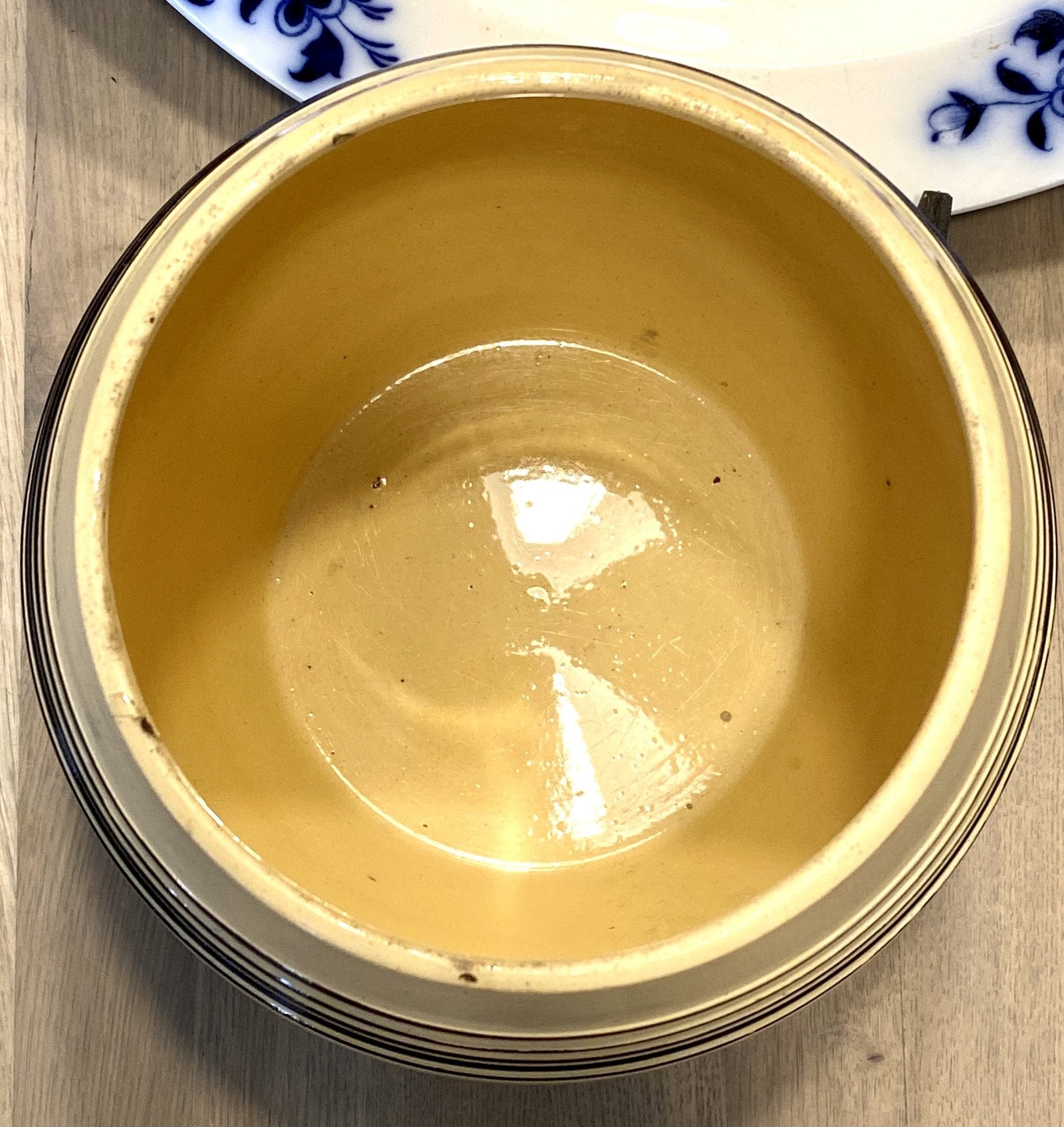 Vooraadpot - groot - ongemerkt (Boch?) - met opschrift in zwart TABAC en zwarte ringen