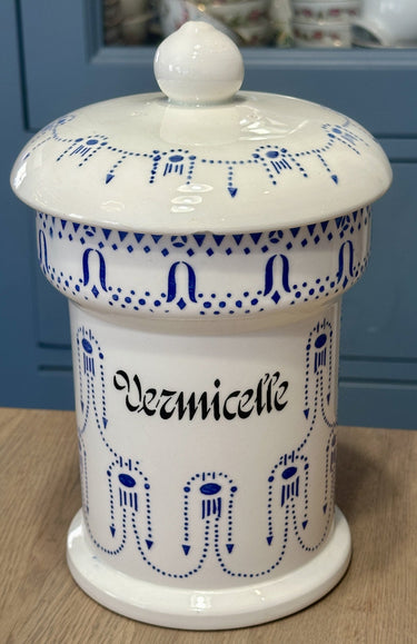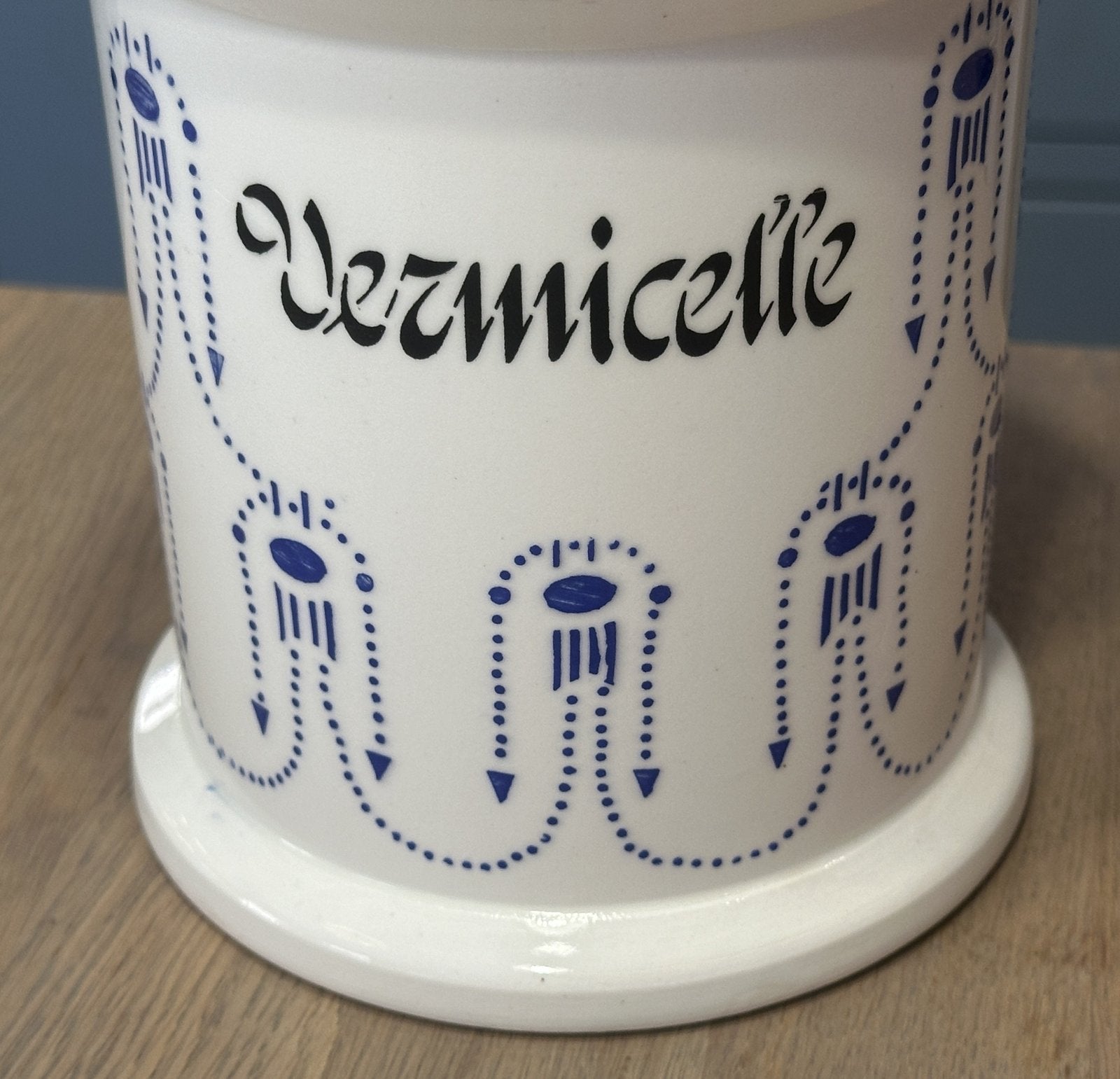 Voorraadpot - ongemerkt (Nimy?) - Art Deco décor uitgevoerd in blauw met opschrift VERMICELLE