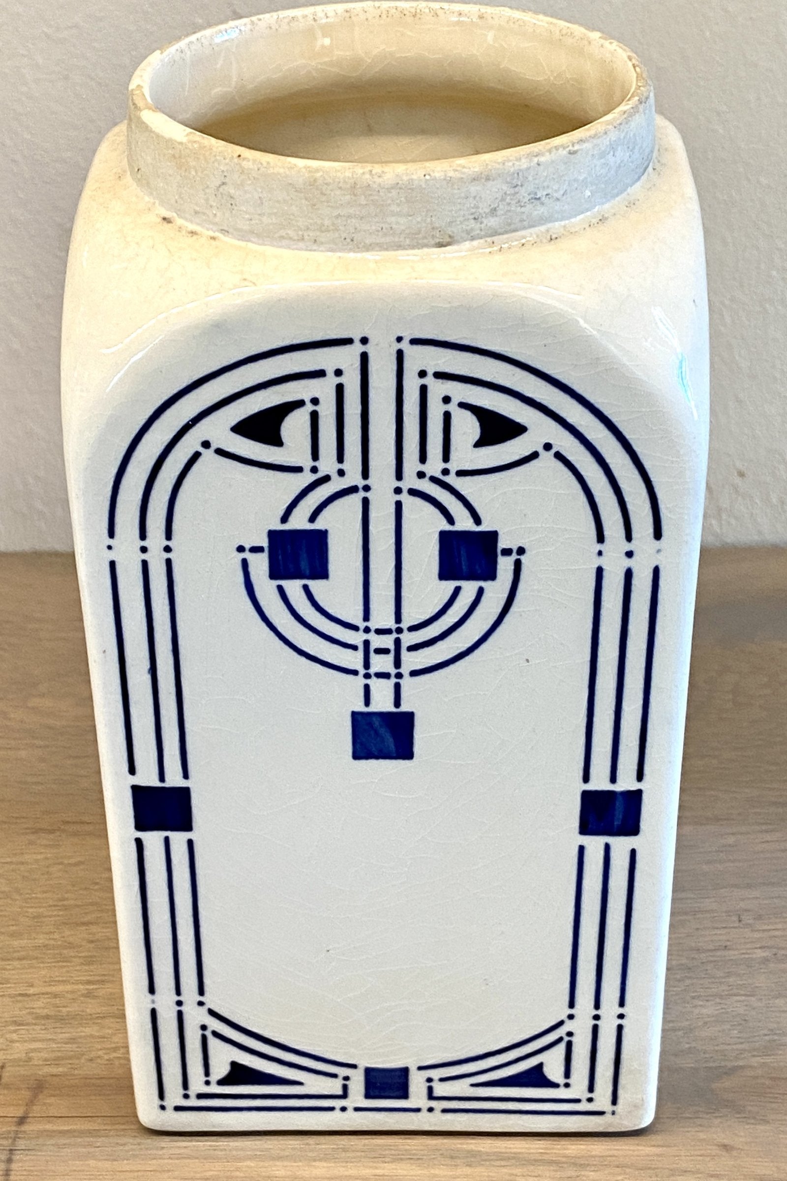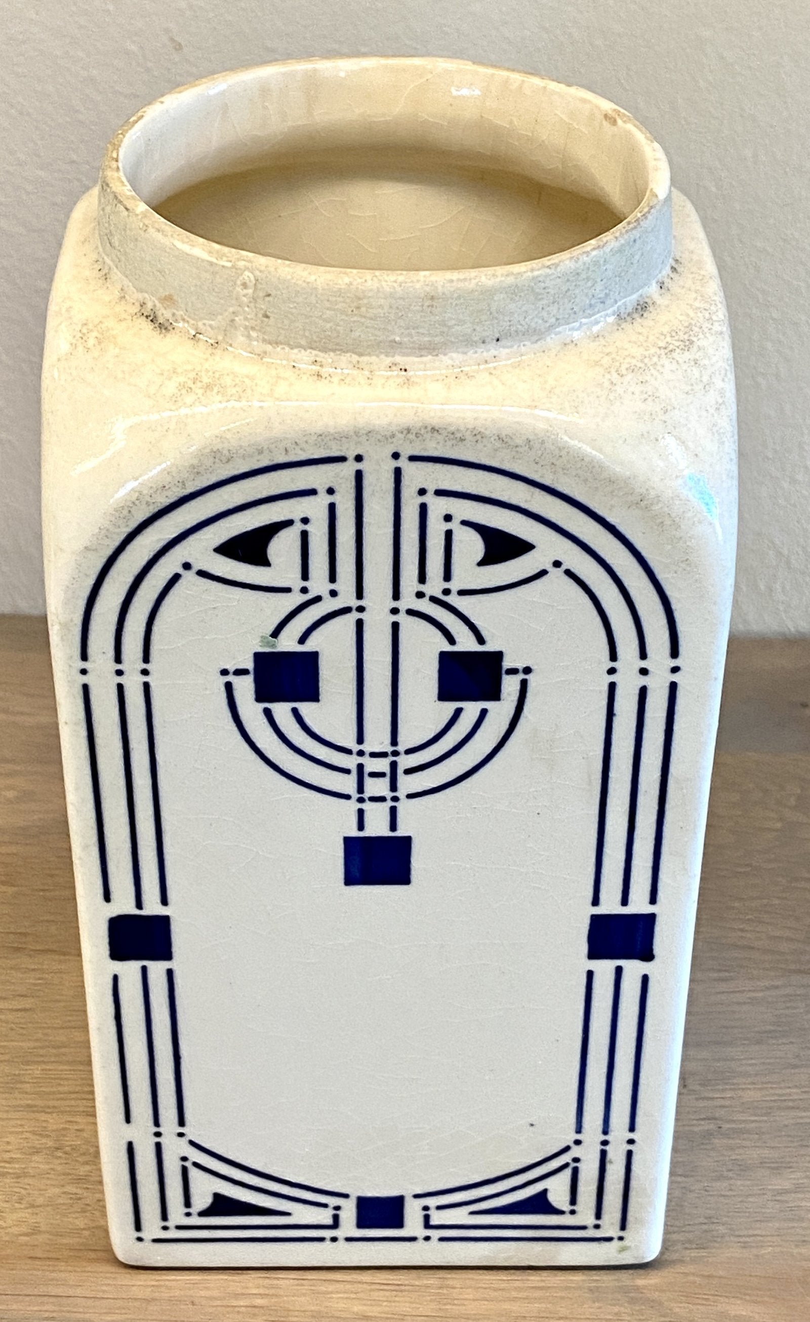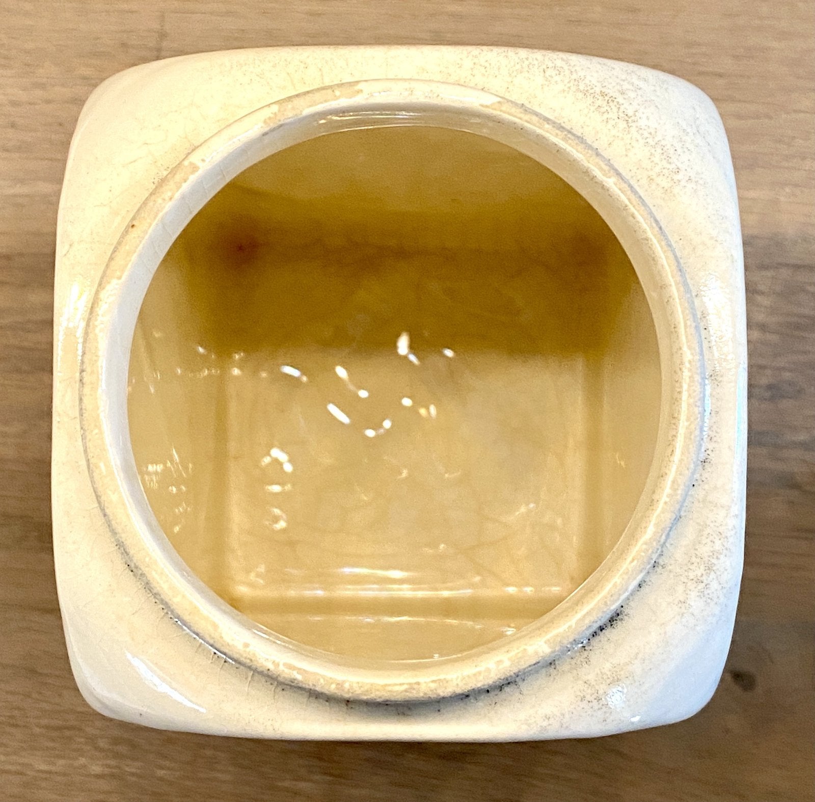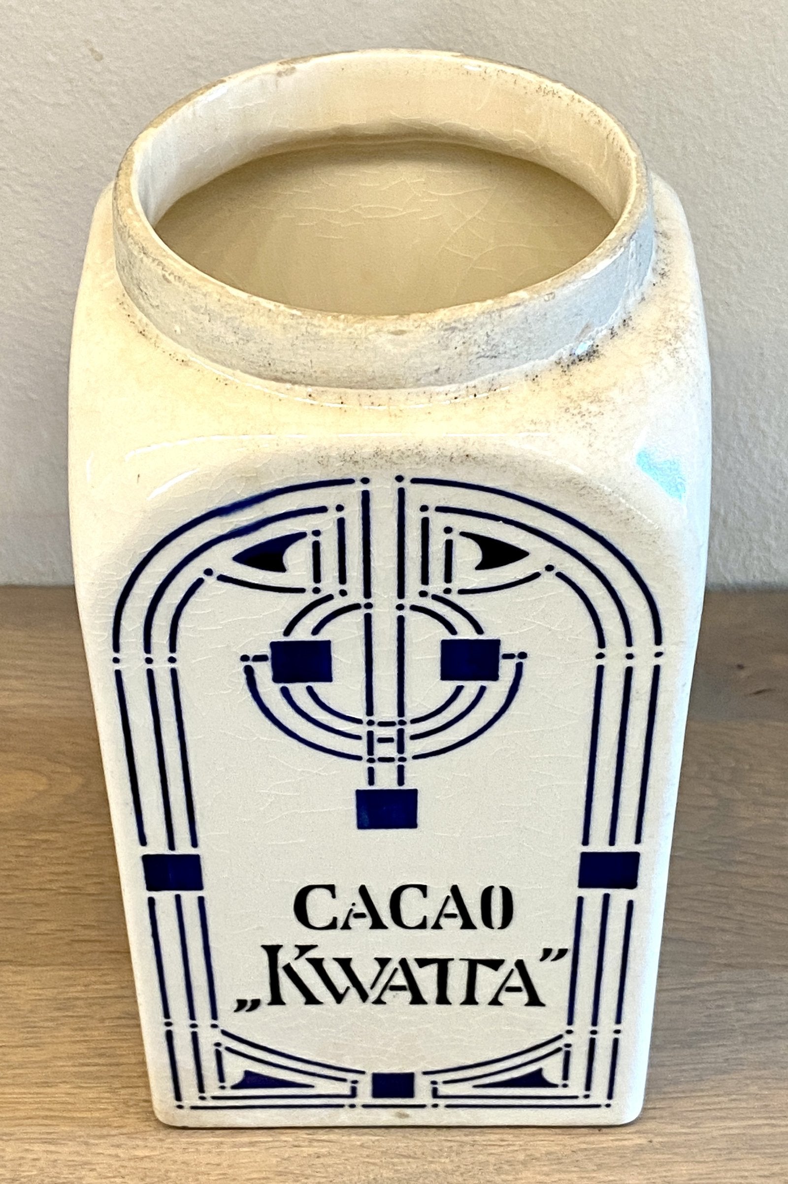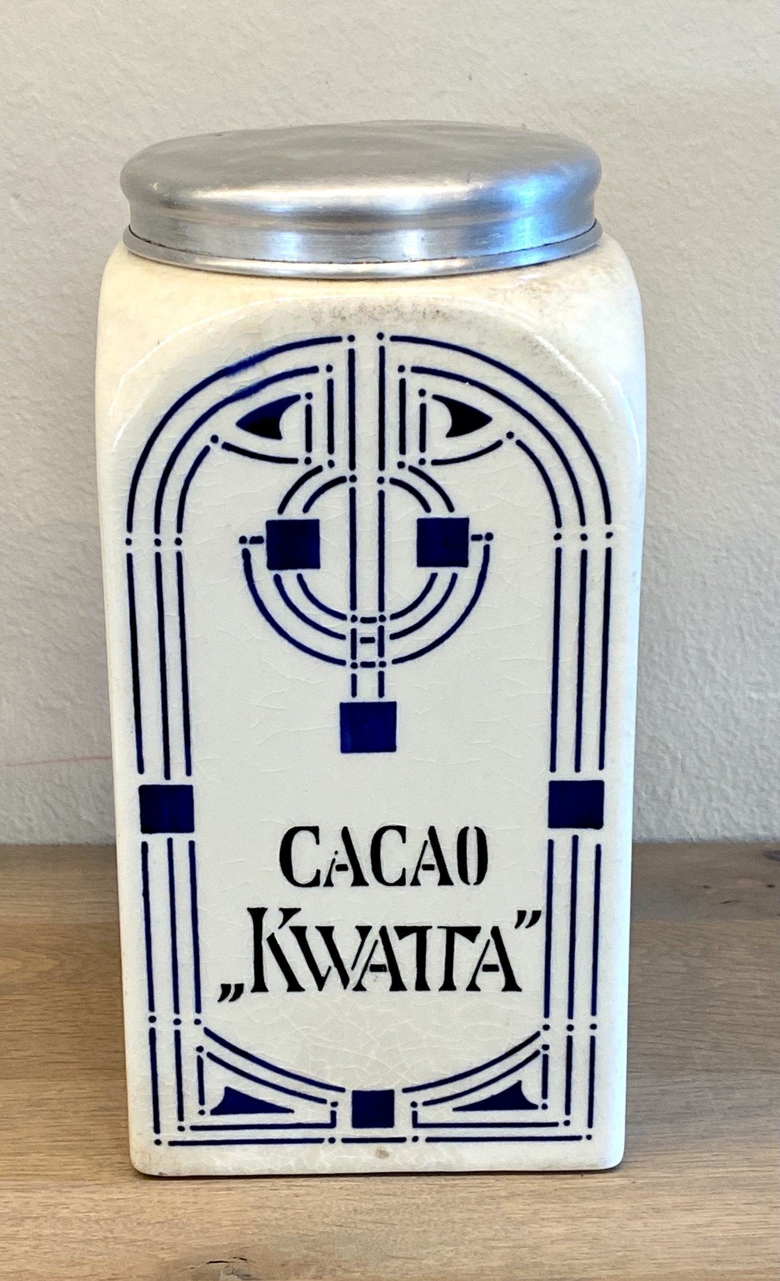 Voorraadpot / voorraadbus voor Cacao KWATTA - met het originele aluminium deksel (geblutst) - alleen gemerkt met nummer 772 - Art Deco motief / décor.