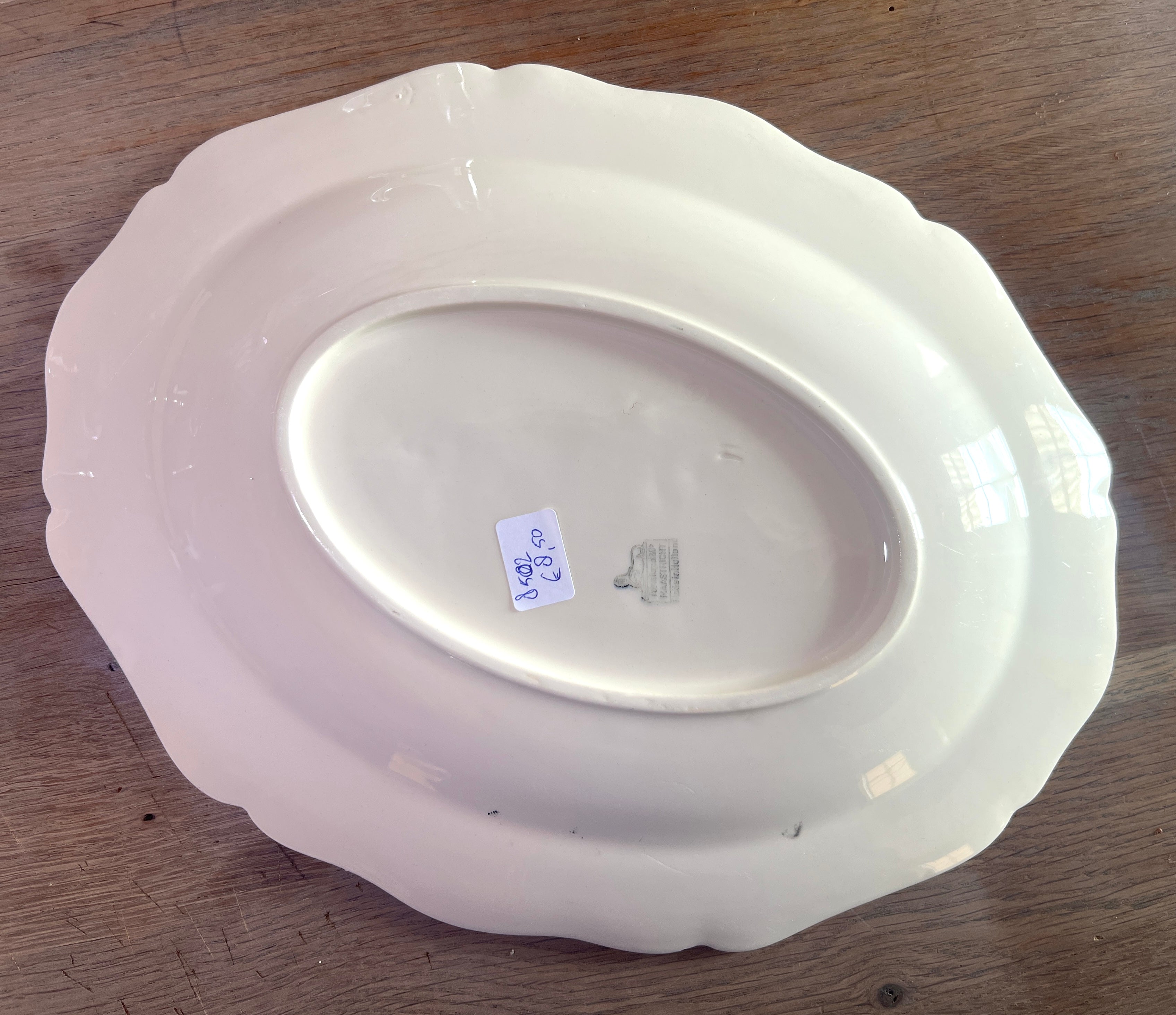 Schaal / Bord - ovaal, plat, model - Petrus Regout - uitvoering met rode versierselen uitgewerkt in gegolfde rand