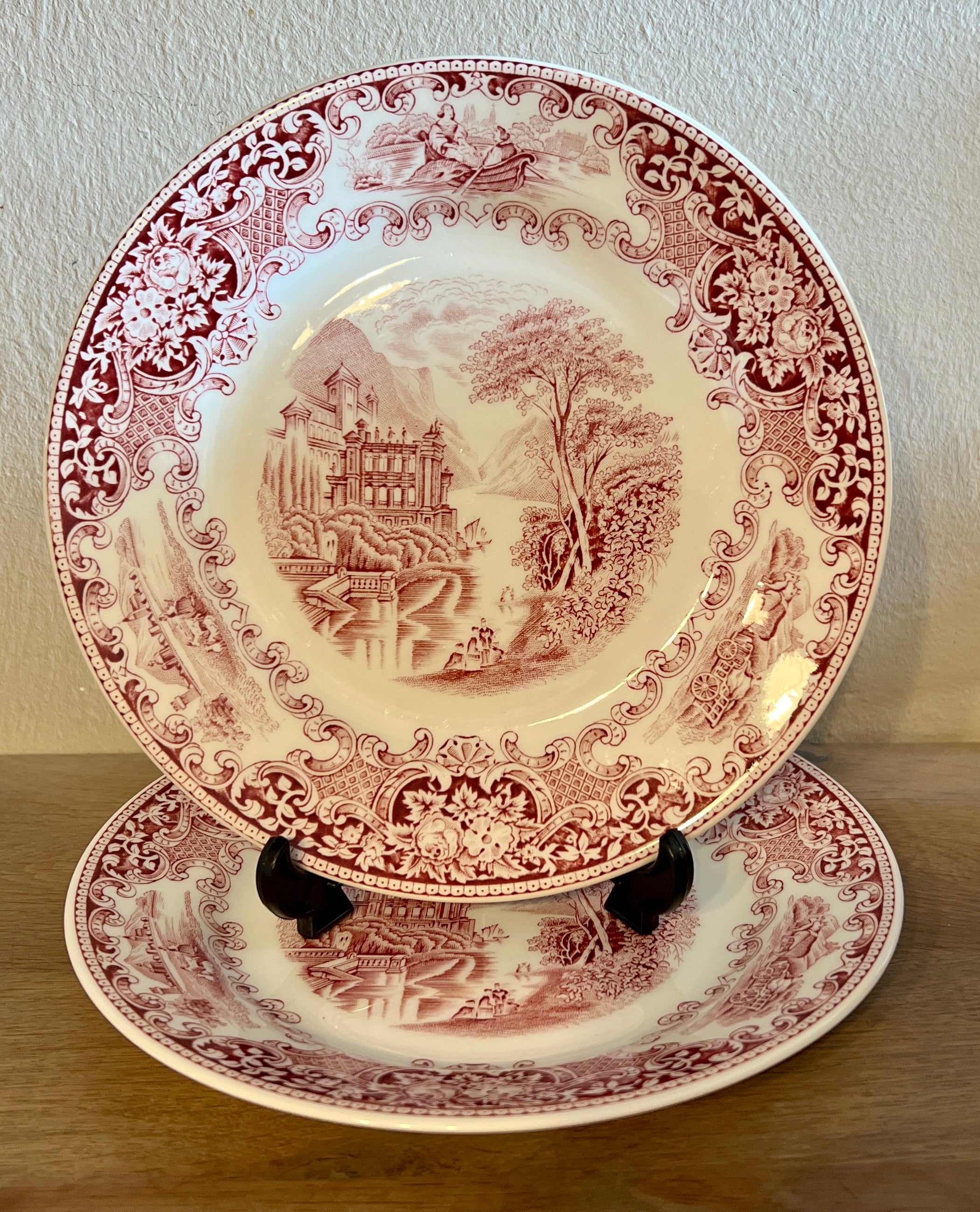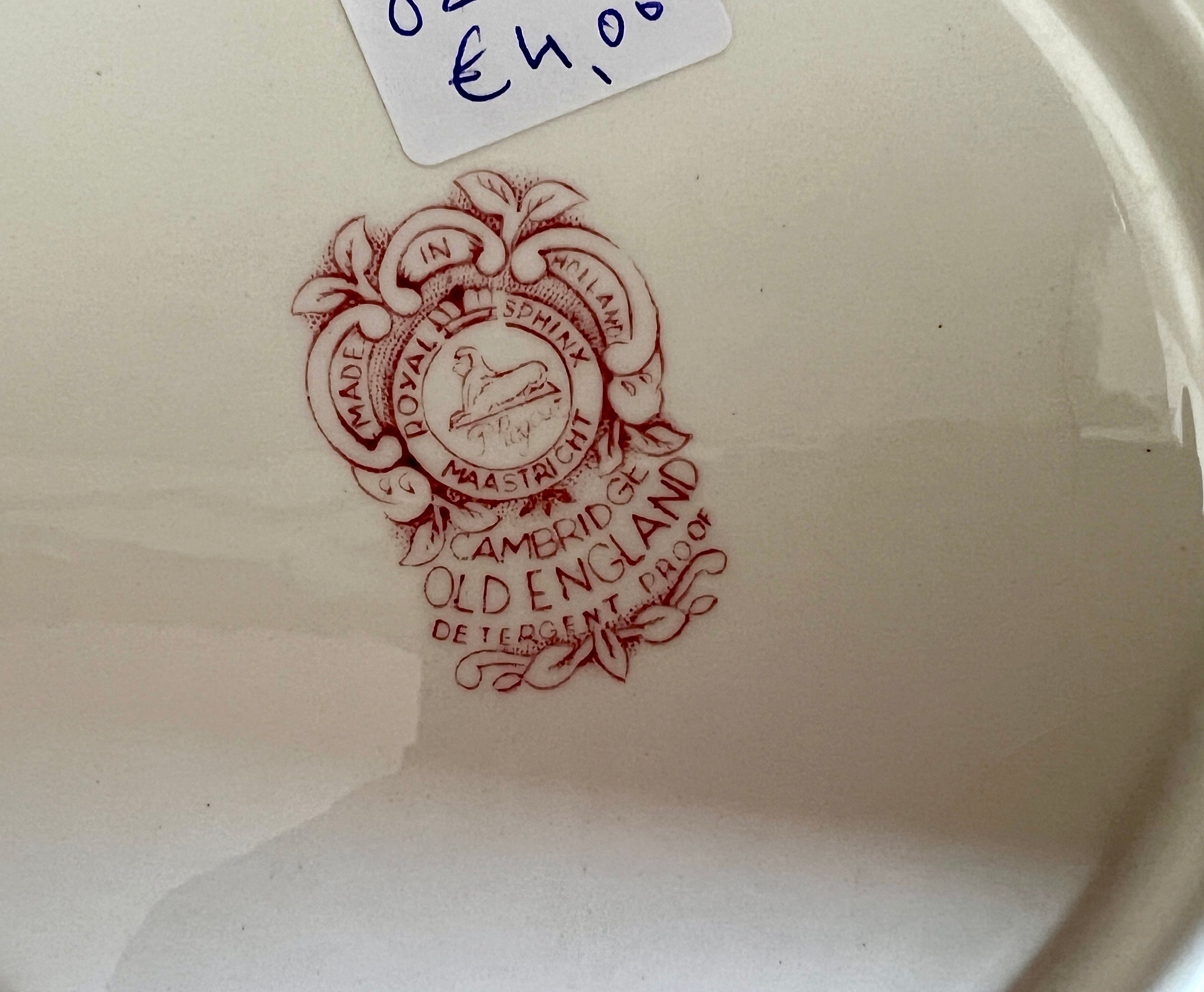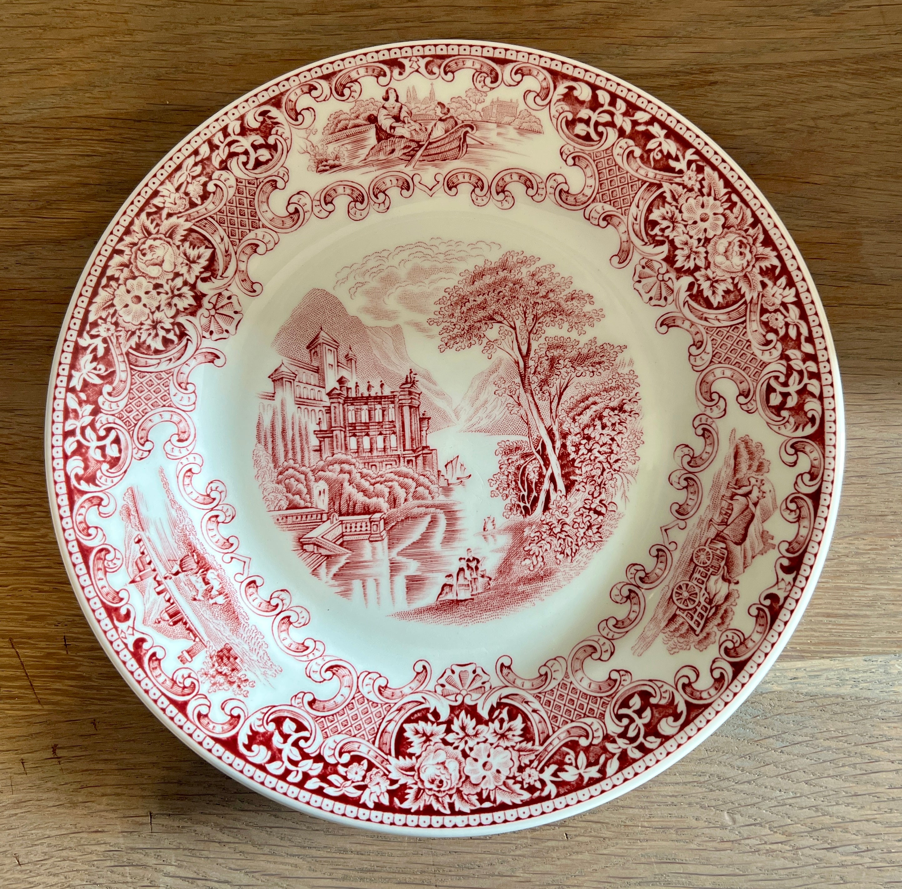 Ontbijtbord / Dessertbord - Royal Sphinx/P. Regout - décor OLD ENGLAND uitgevoerd in rood