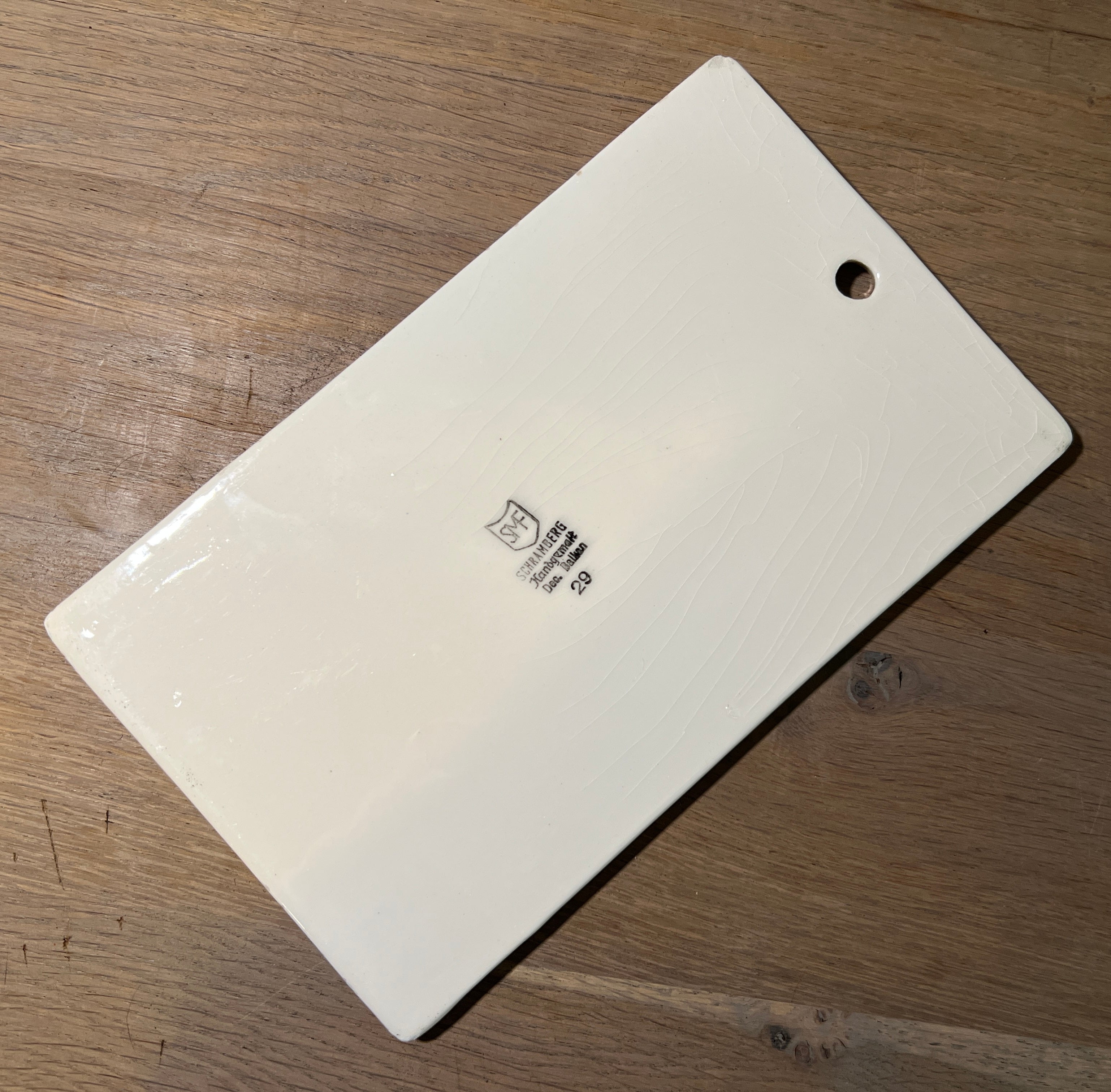 In redelijk tot goede staat met lichte craquelé, gebruikssporen, een chip in de rechter bovenhoek en wat ruw/flinters bij de rechter onderhoek