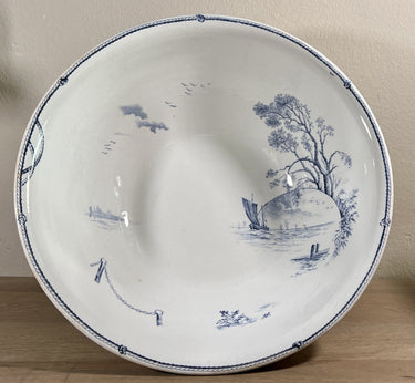 Kartoffelschüssel / Salatschüssel – tiefes Modell auf Fuß – Petrus Regout – MARINES-Dekor in Blau – datiert 1895.
