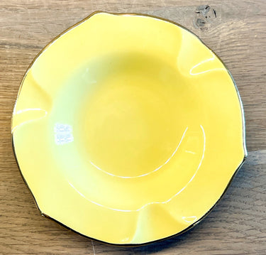 Aschenbecher - kleines Modell - Boch - Dekor in Gelb mit goldfarbenem Rand.