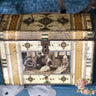 Dose mit schwarz-weißen Abbildungen von Kindern in Tracht.