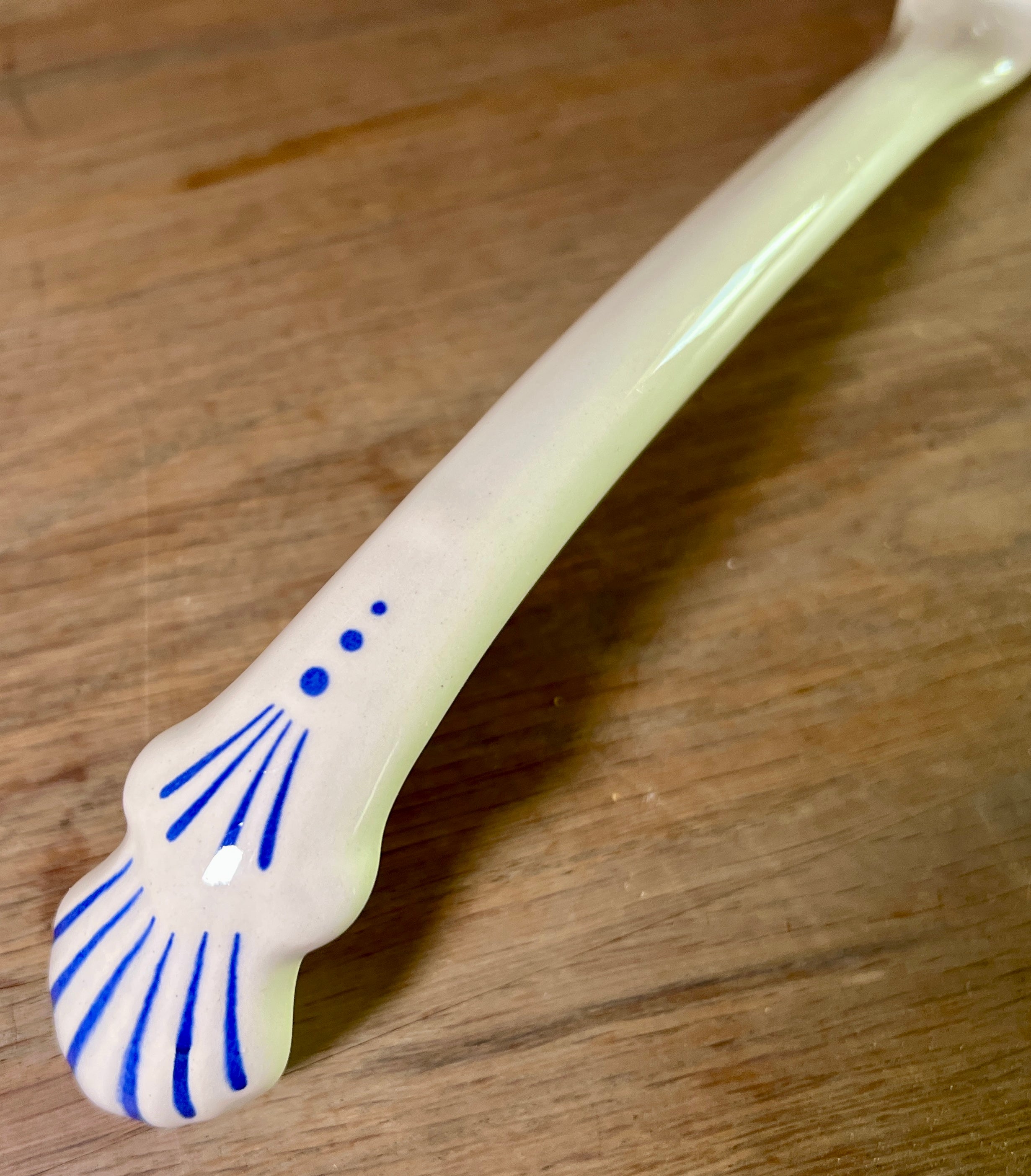 Totale lengte 30 cm. - schepdeel dia. 10 cm., hoogte 4,5 cm.