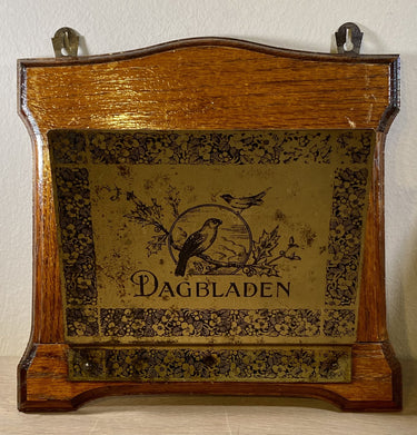 Zeitungsaufhänger / Tageszeitungsaufhänger - Messing auf Holz - Bild von Vögeln auf einem Stechpalmenzweig