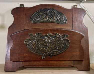 Zeitungshänger / Zeitschriftenhänger - aus Eichenholz mit Kupferbeschlägen mit Weinreben-Abbildung - 2 Aufhängeösen.