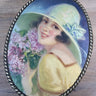 Schachtel - ovale Form - für Schokolade oder ähnliches? - Bild einer jungen Frau mit Hut und Blumen