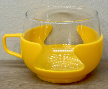 Teeglas in gelb gefärbtem Kunststoffhalter - ungemarkt - 1970er Jahre
