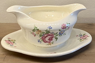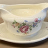 Sauciere cremeweiß – Mosa – Marke mit 5 Toren aus den 40er Jahren – Dekor 8449 aus rosa Rose mit buntem Blumenbouquet.