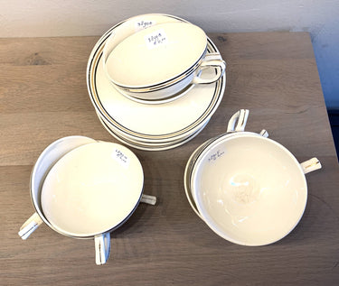 Tasse und Untertasse creme mit schwarzem Streifendekor - Nimy - Art Deco